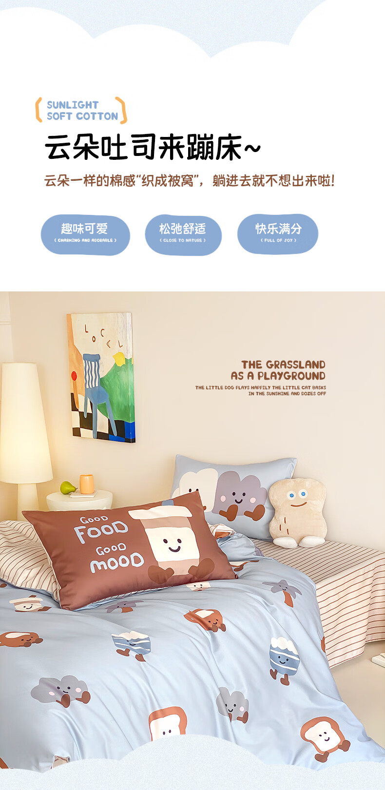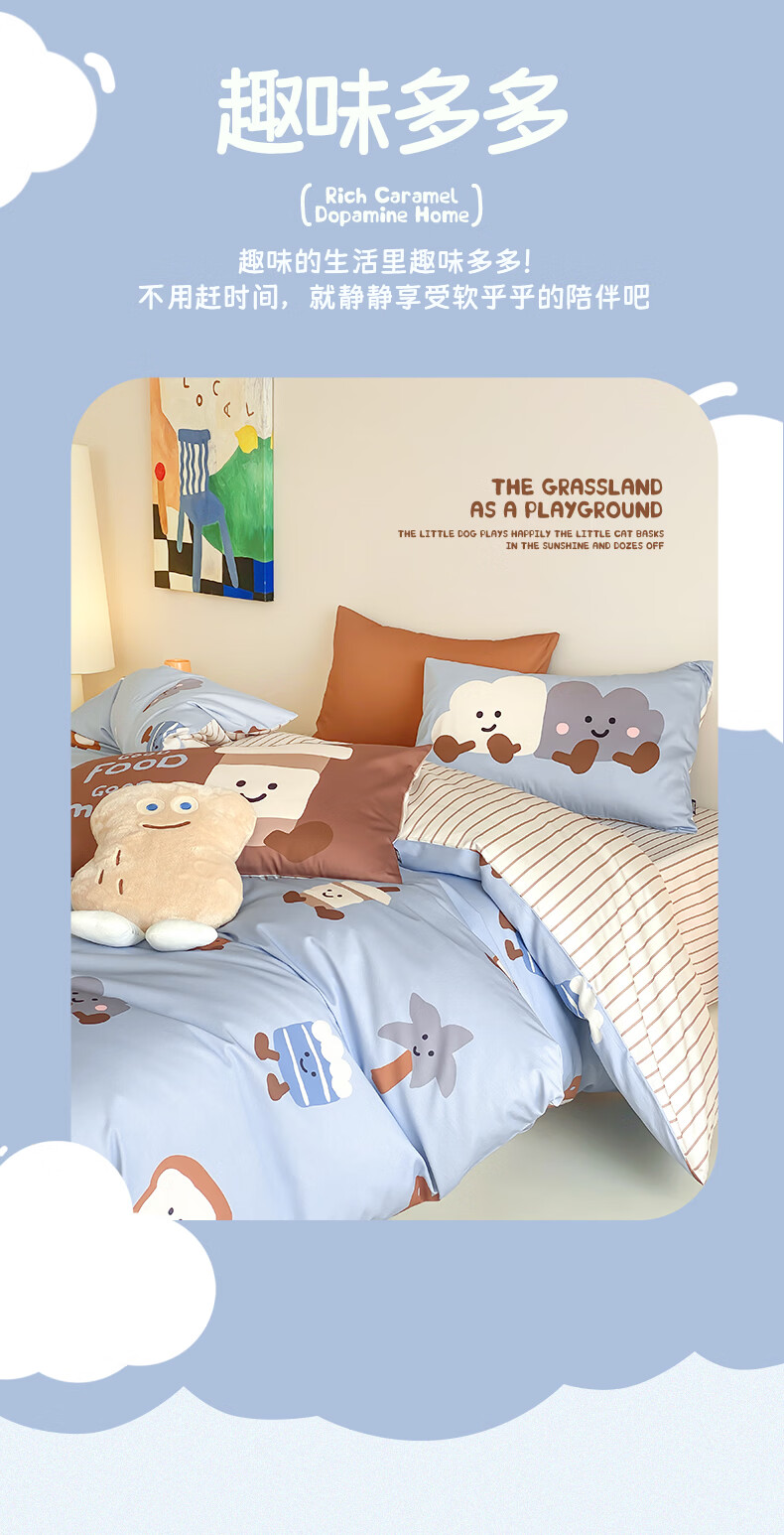 多喜爱家纺纯棉四件套 A类全棉床单被罩床上用品套件1.8米床229*230cm