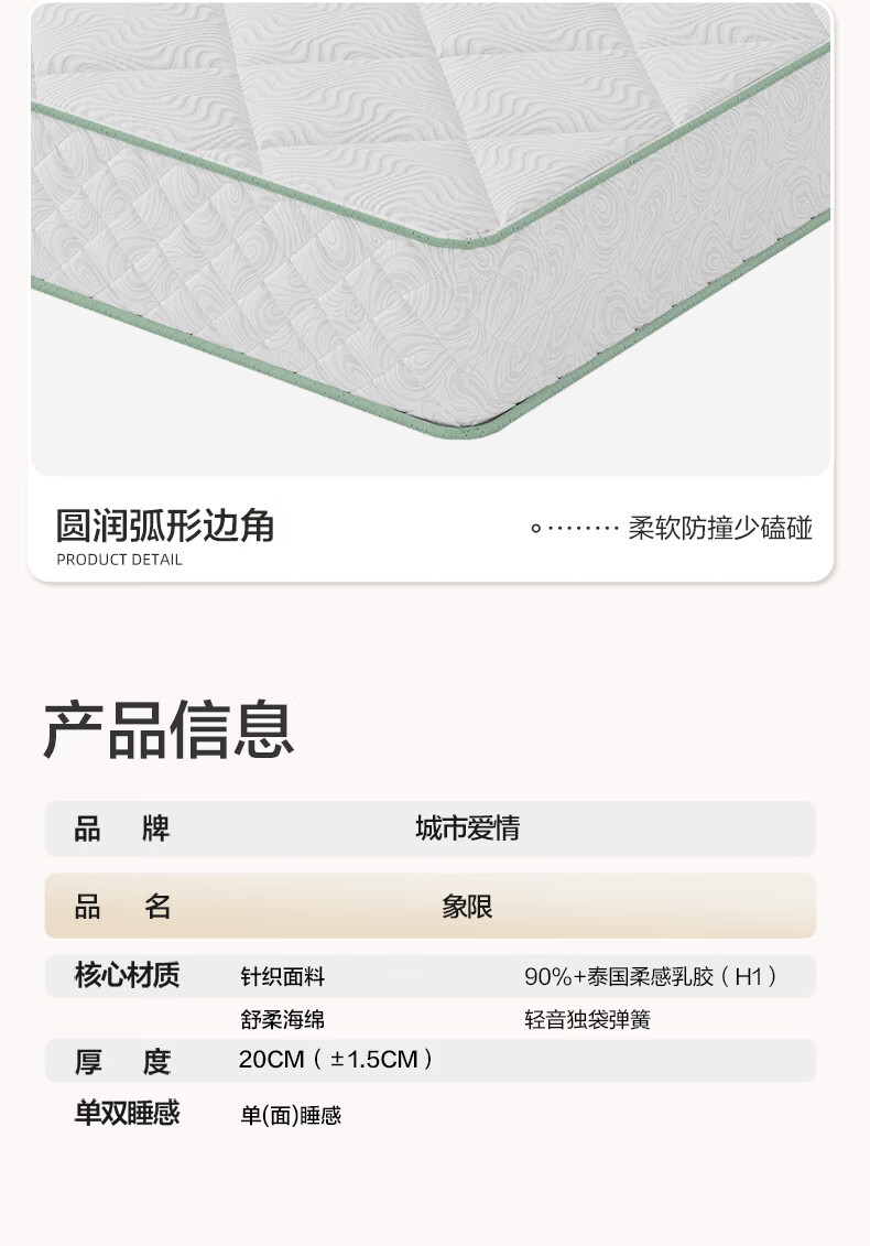 城市爱情喜临门乳胶床垫 独袋弹簧家用卧室席梦思床垫子【不可延迟发货】 1.8*2米