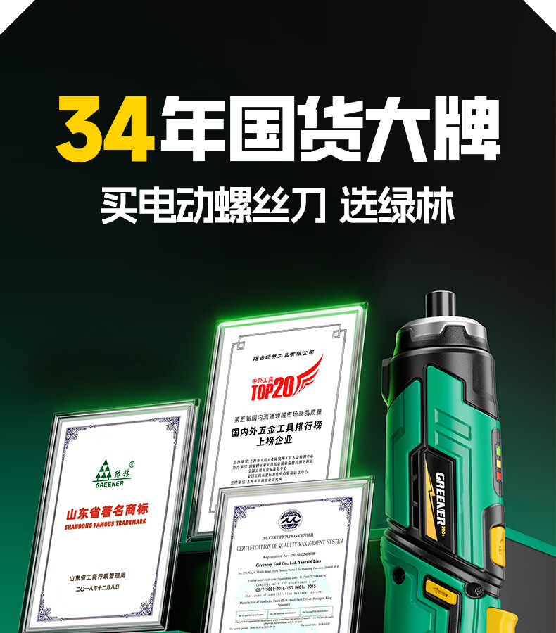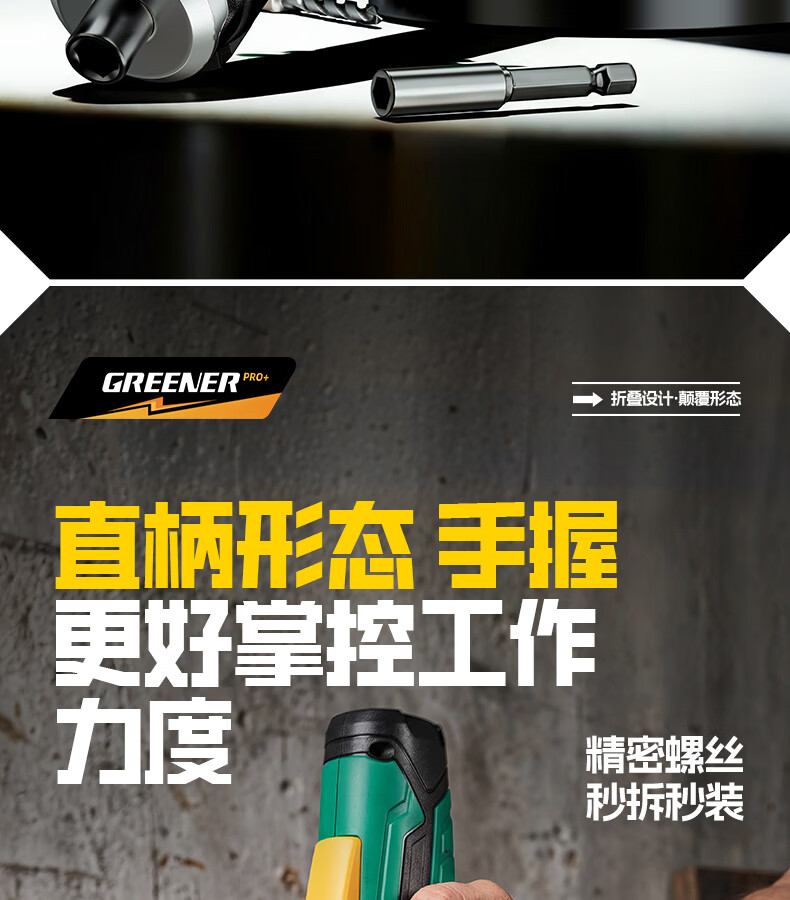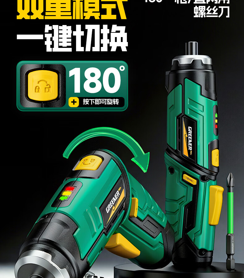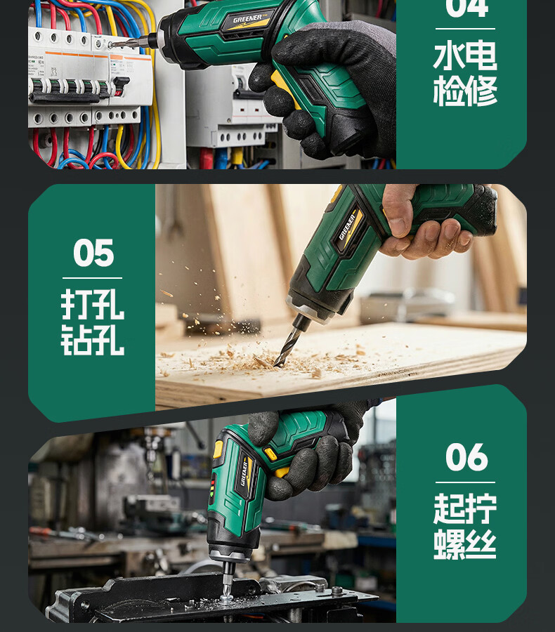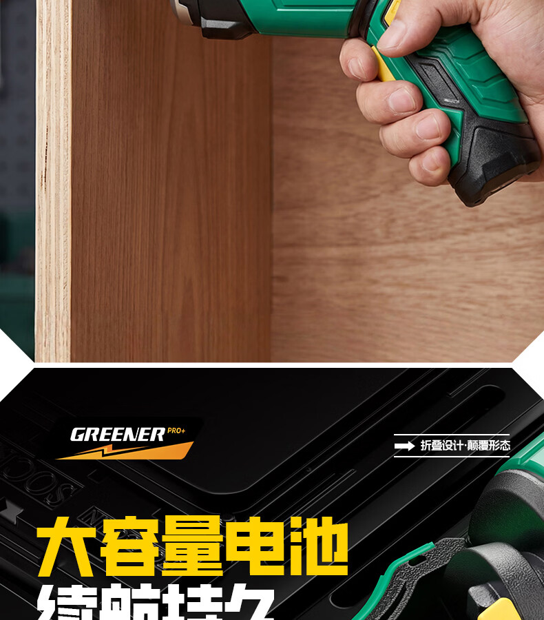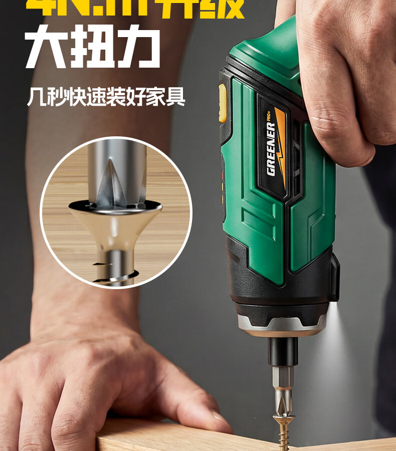 绿林(GREENER)绿林新型电动螺丝刀套装充电式家用小型电钻起子机多功能拧螺丝枪 【强扭力&长续航】绿闪电螺丝刀