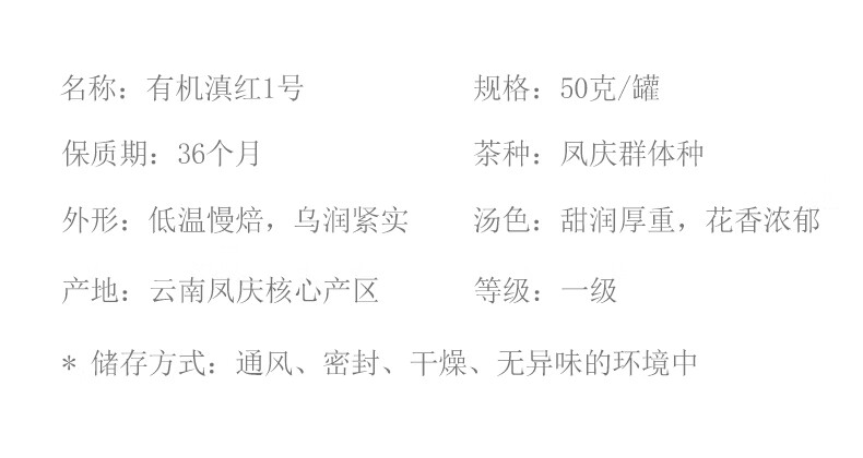凤宁号红茶有机滇红1号滇红茶云南凤庆有机滇红茶蜜香型口粮茶叶自己喝 单罐装50g