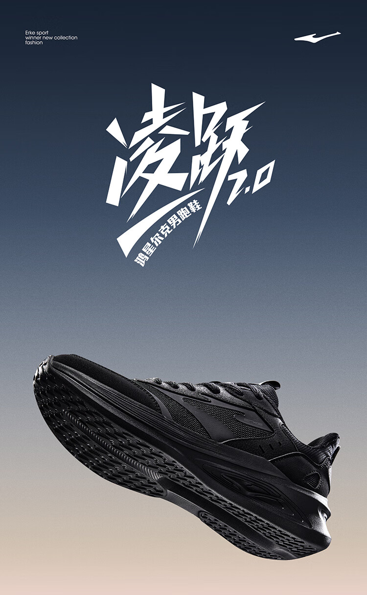 鸿星尔克男鞋凌跃2跑鞋秋冬季新款软底减震跑步鞋保暖轻便黑色运动鞋子男 【热卖推荐款】正黑 42