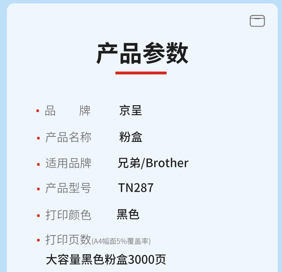 京呈TN287粉盒大容量黑色适用兄弟HL-3160CDW粉盒HL3190CDW打印机墨粉盒DCP-9030CDN墨盒MFC-9150CDN MFC-9350CDW