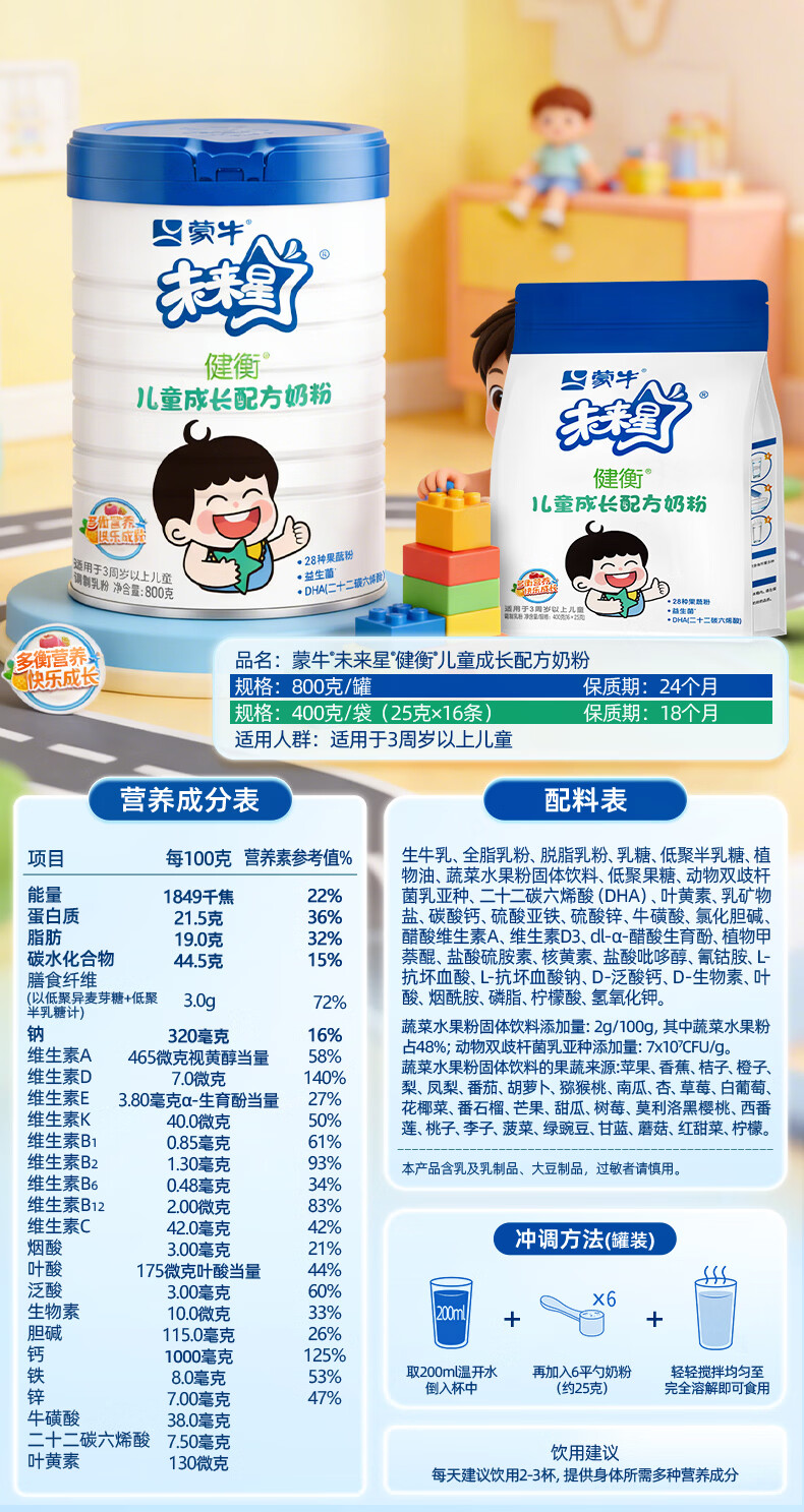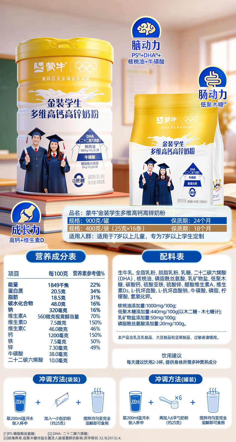 蒙牛慧聪明DHA学生奶粉助力青少年儿童成长高个子增强营养正品补官方 蒙牛DHA脑黄金*2袋【32条+送2条免费喝】