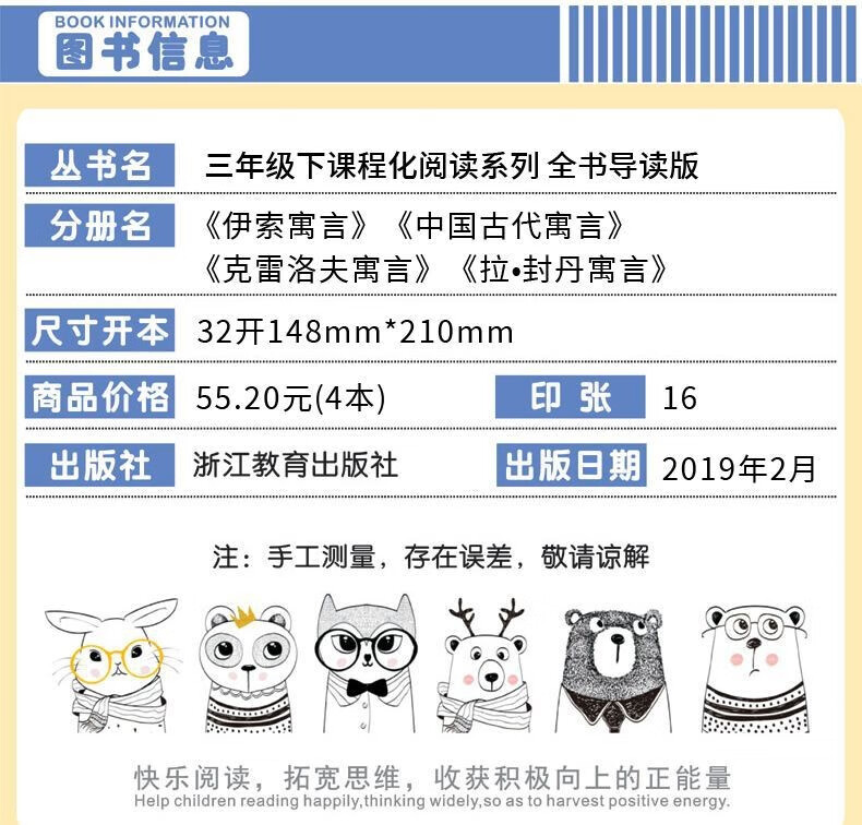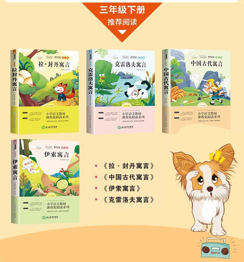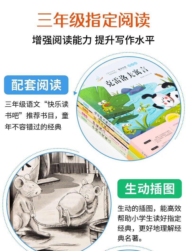 4册 中国古代寓言故事读书吧三年级下册课外书伊索克雷洛夫寓言 全套4册快乐读书吧三年级下