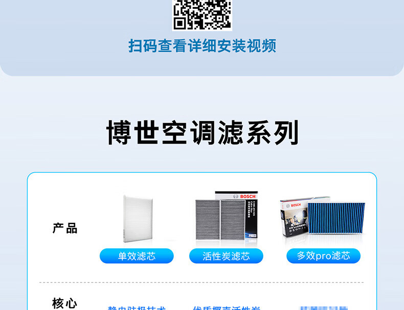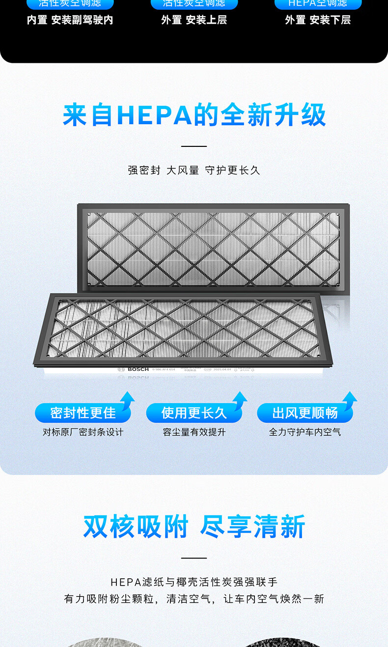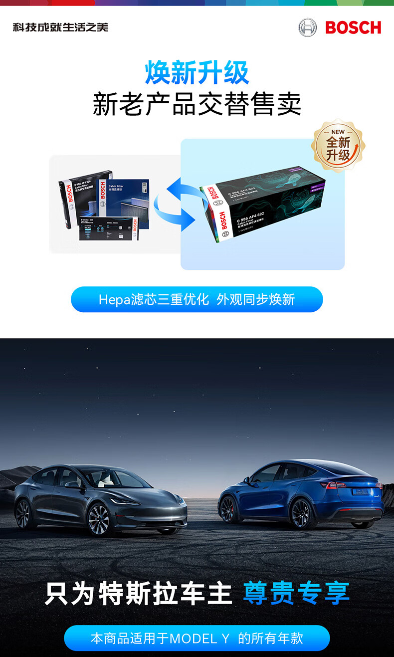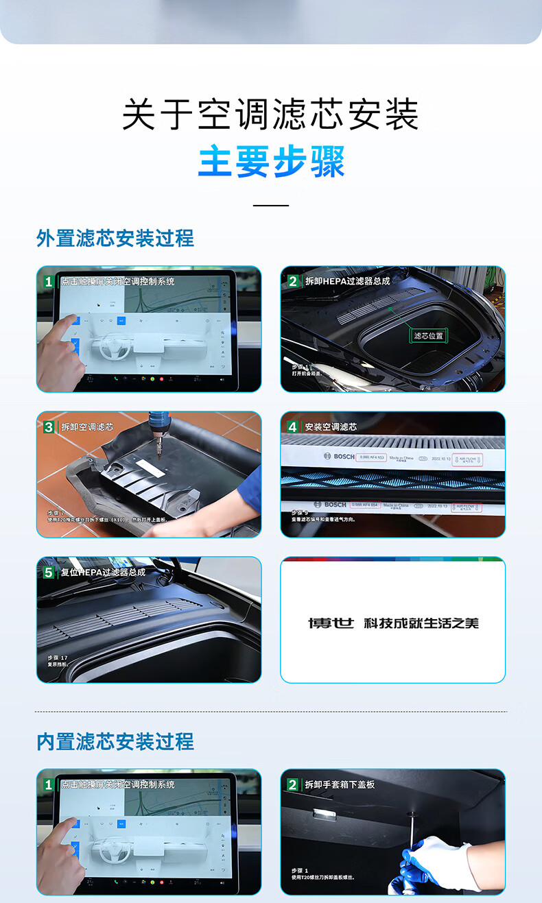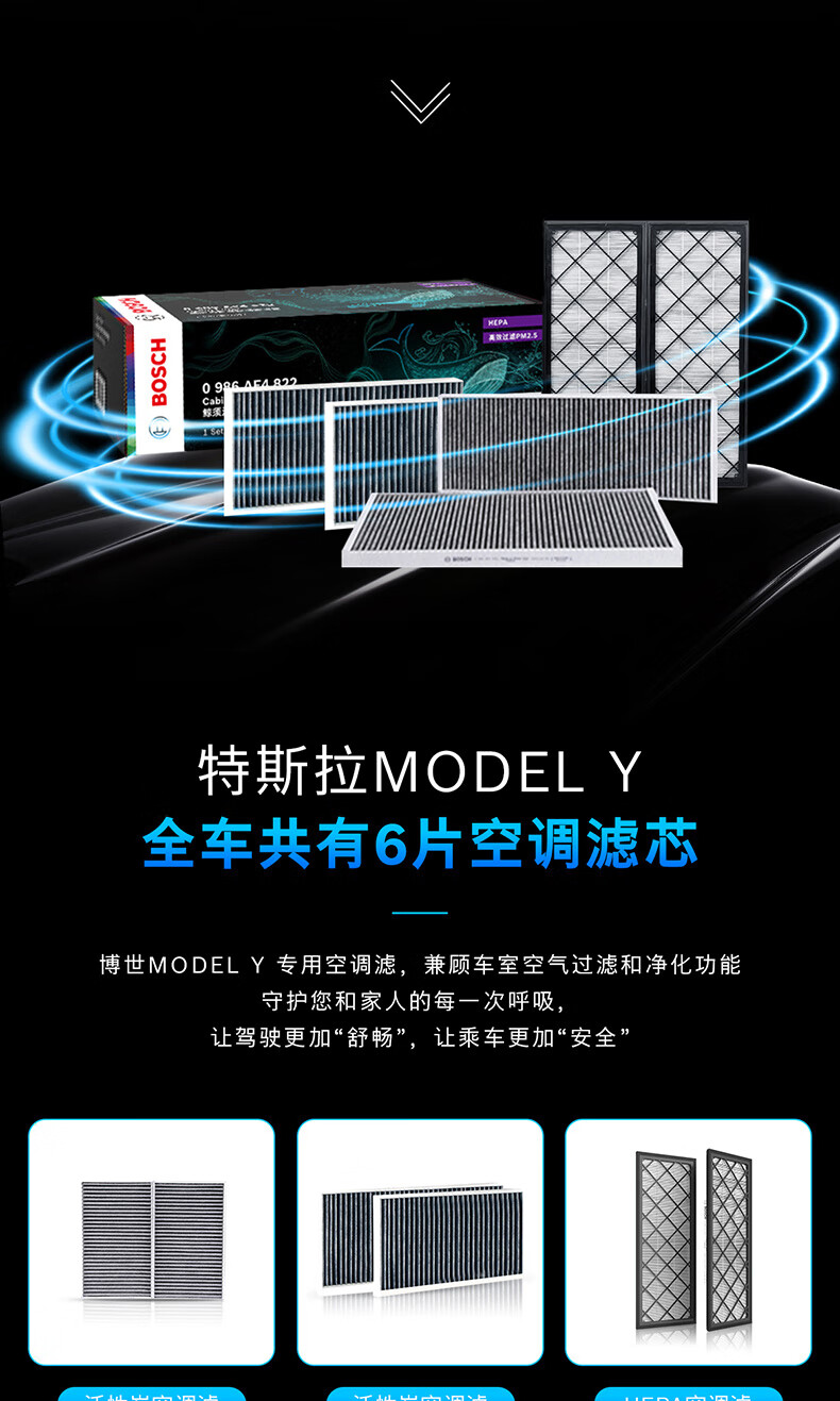 博世(BOSCH)空调滤芯滤清器套装特斯拉毛豆Model Y内外置6片装(赠安装工具)