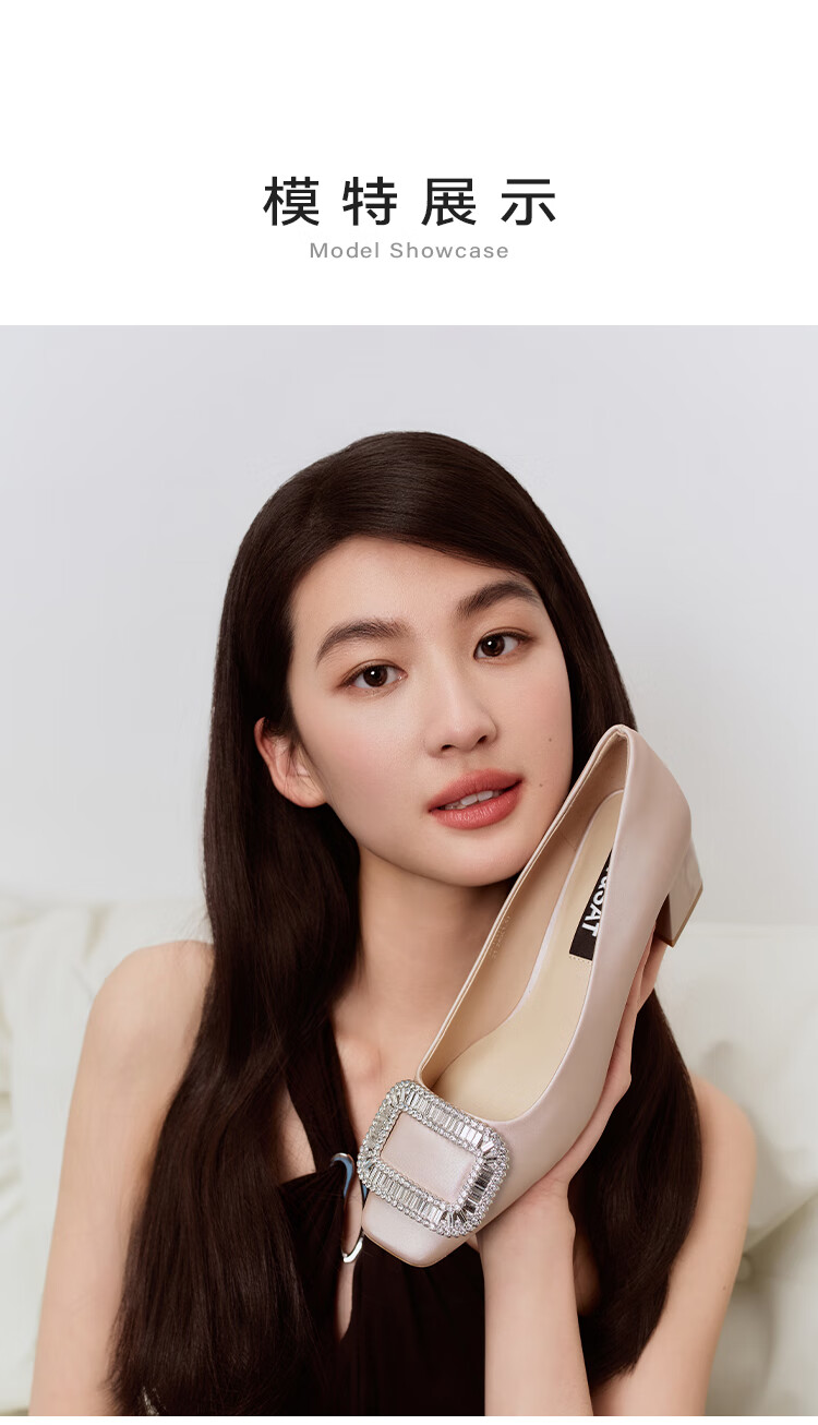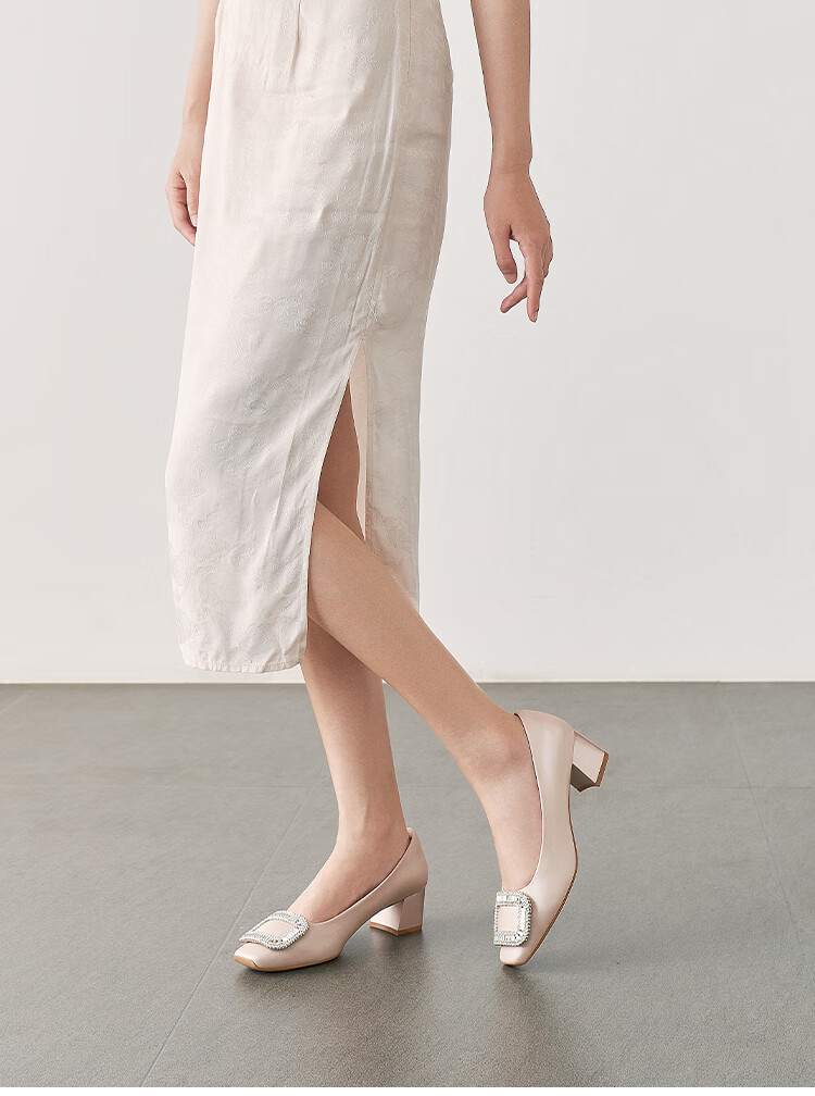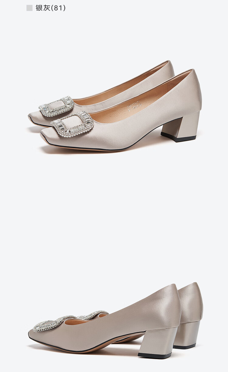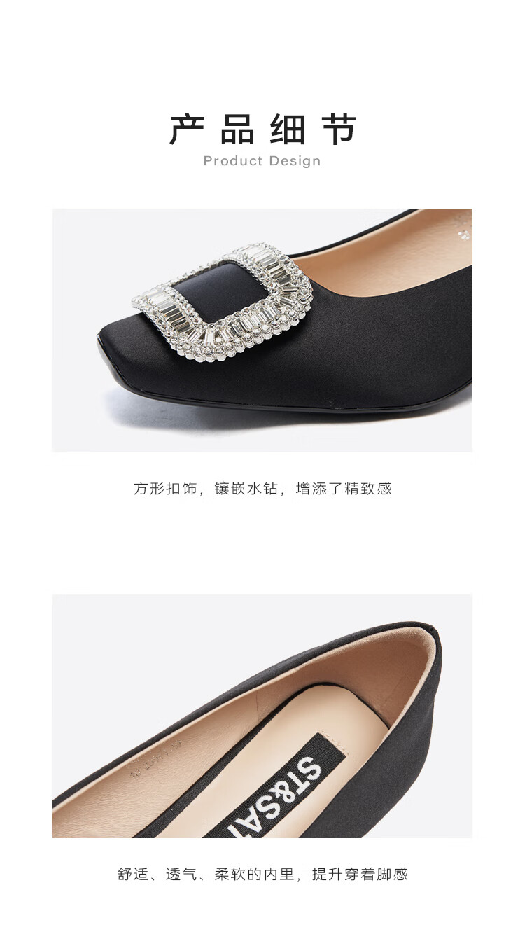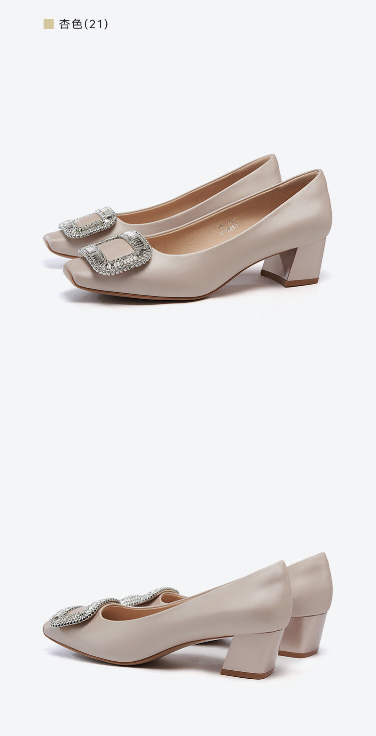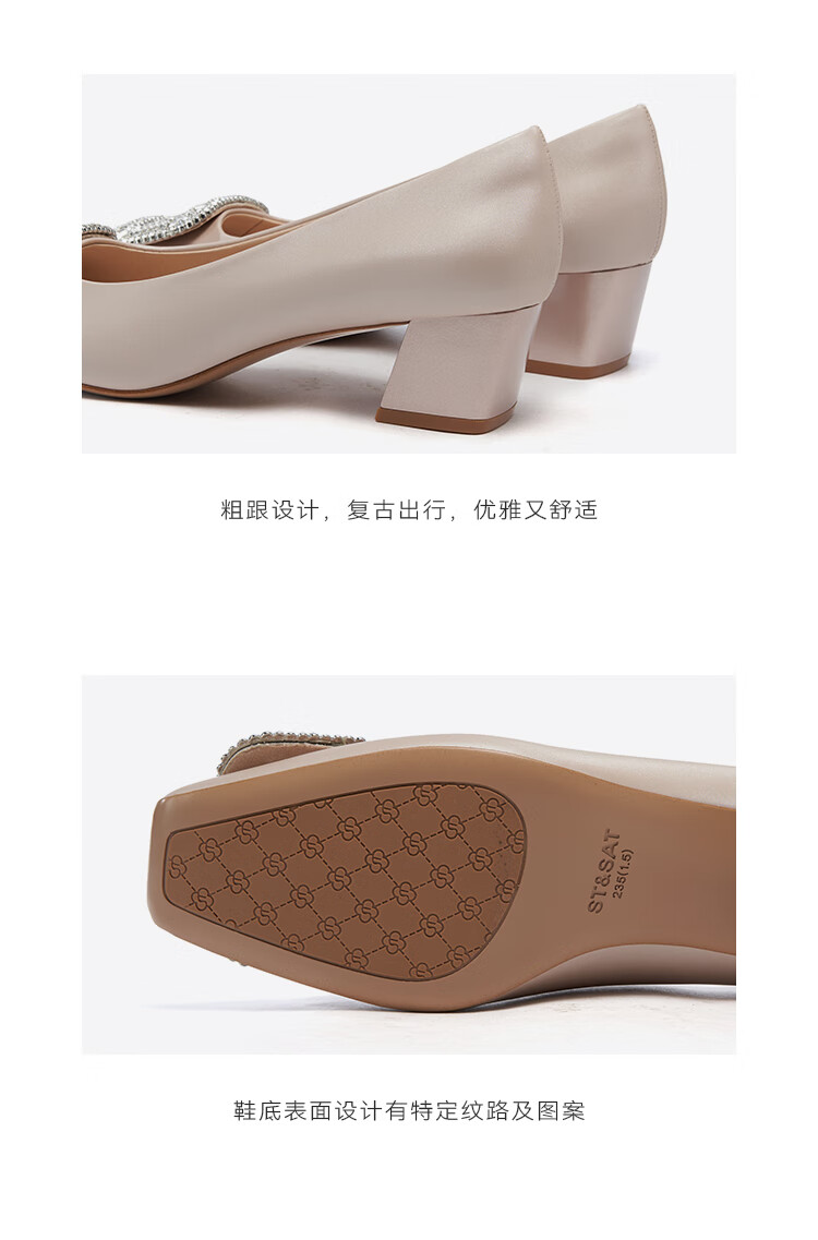 星期六(St&Sat)女鞋浅口优雅方头中粗跟通勤单鞋 杏色 37