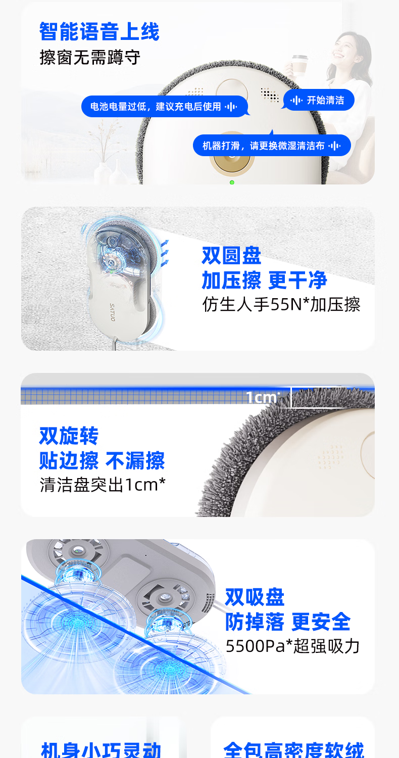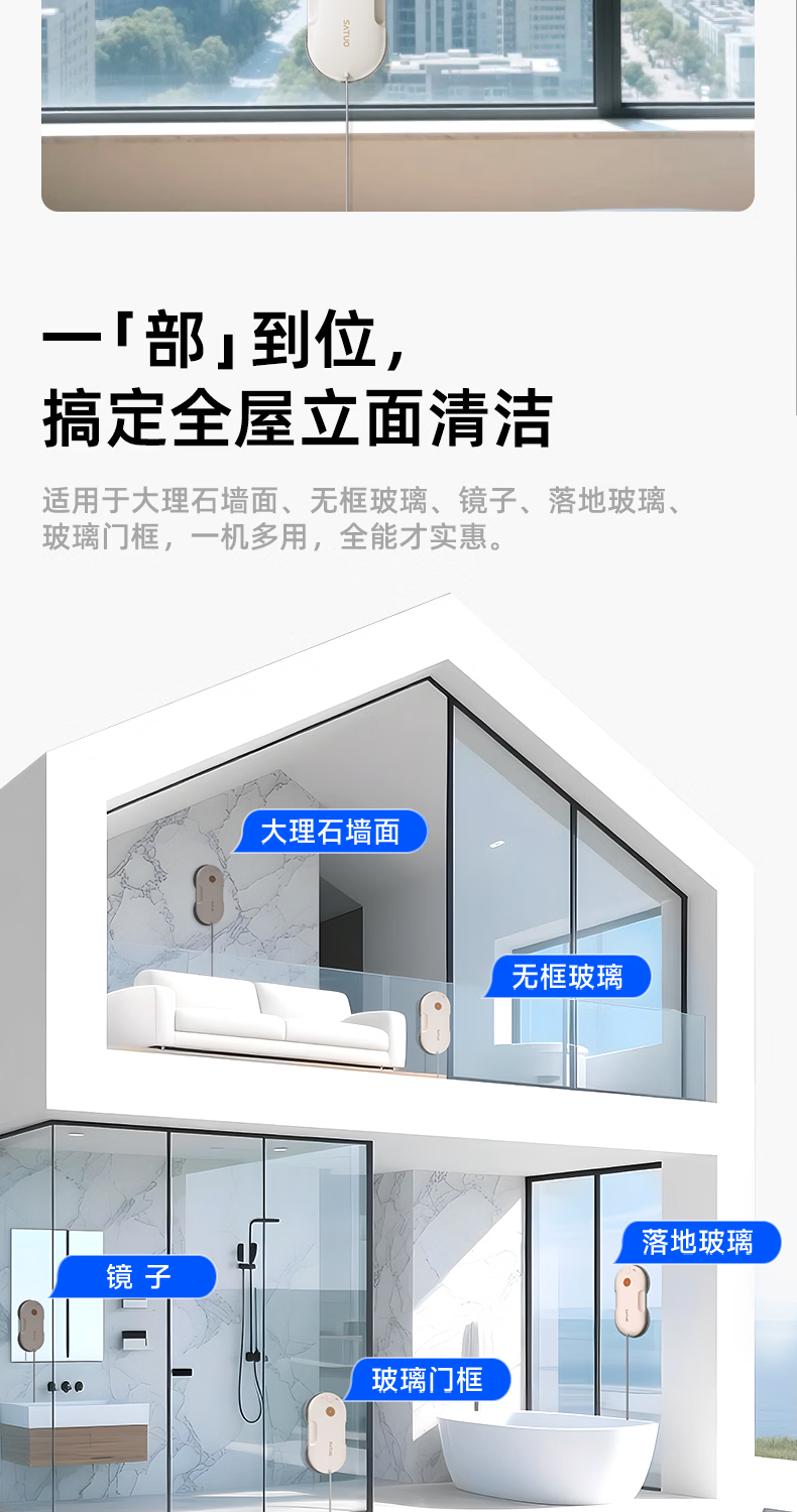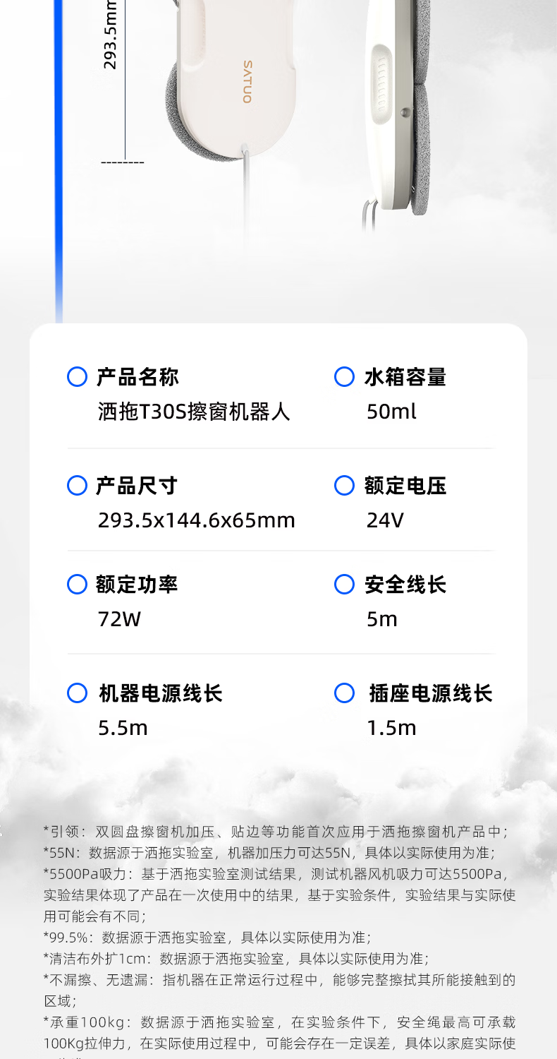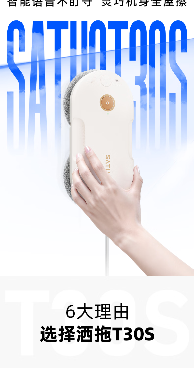 洒拖(SATUO)【京东独家首发】新品T30S擦窗机器人 家用智能喷水 超薄擦玻璃窗机器人 高层户外擦玻璃神器