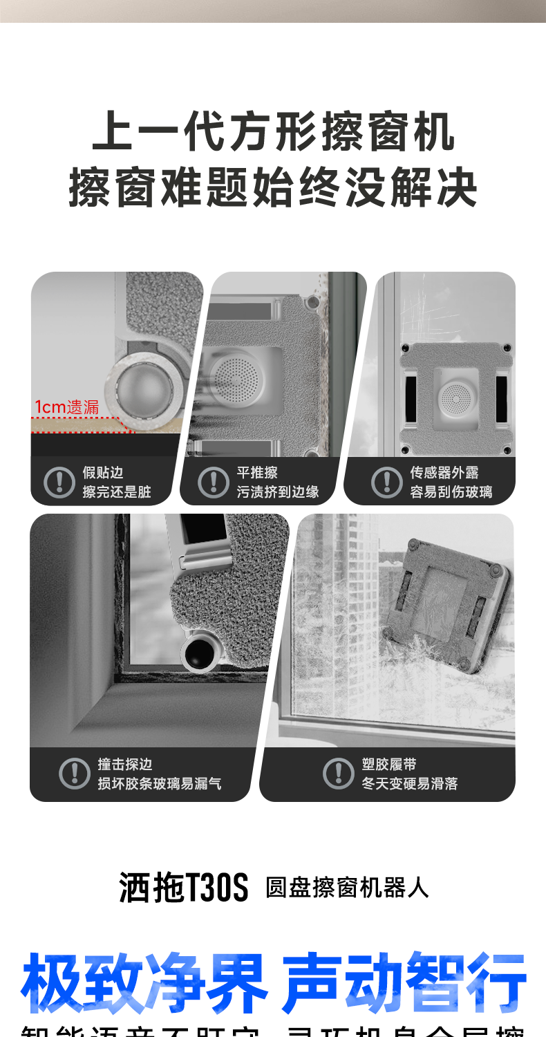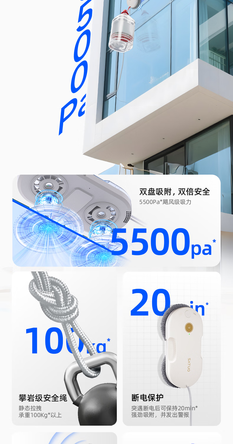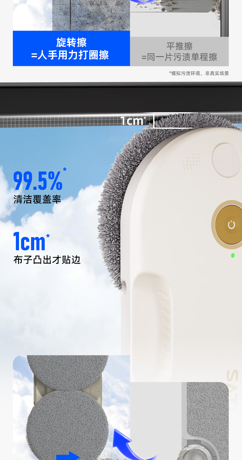 洒拖(SATUO)【京东独家首发】新品T30S擦窗机器人 家用智能喷水 超薄擦玻璃窗机器人 高层户外擦玻璃神器