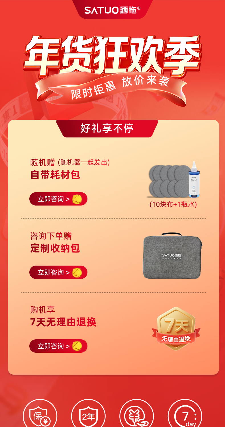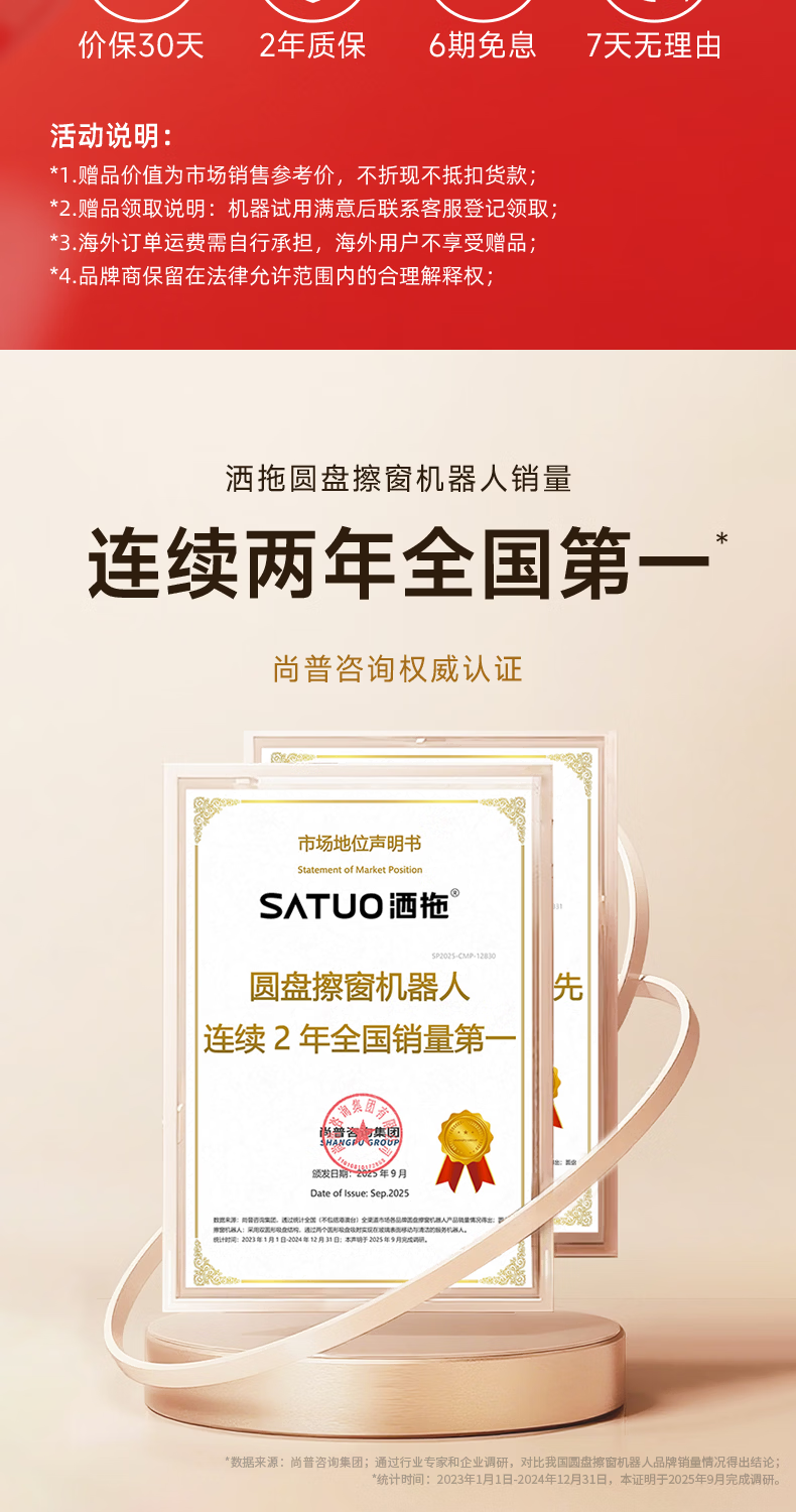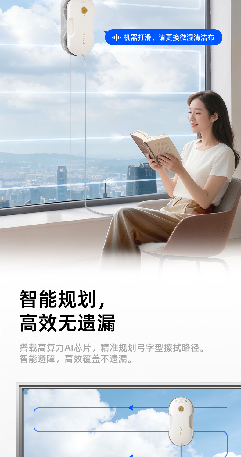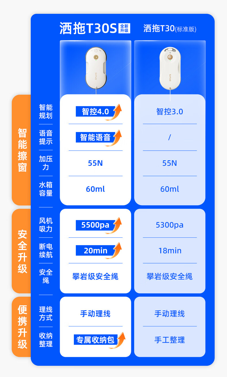 洒拖(SATUO)【京东独家首发】新品T30S擦窗机器人 家用智能喷水 超薄擦玻璃窗机器人 高层户外擦玻璃神器