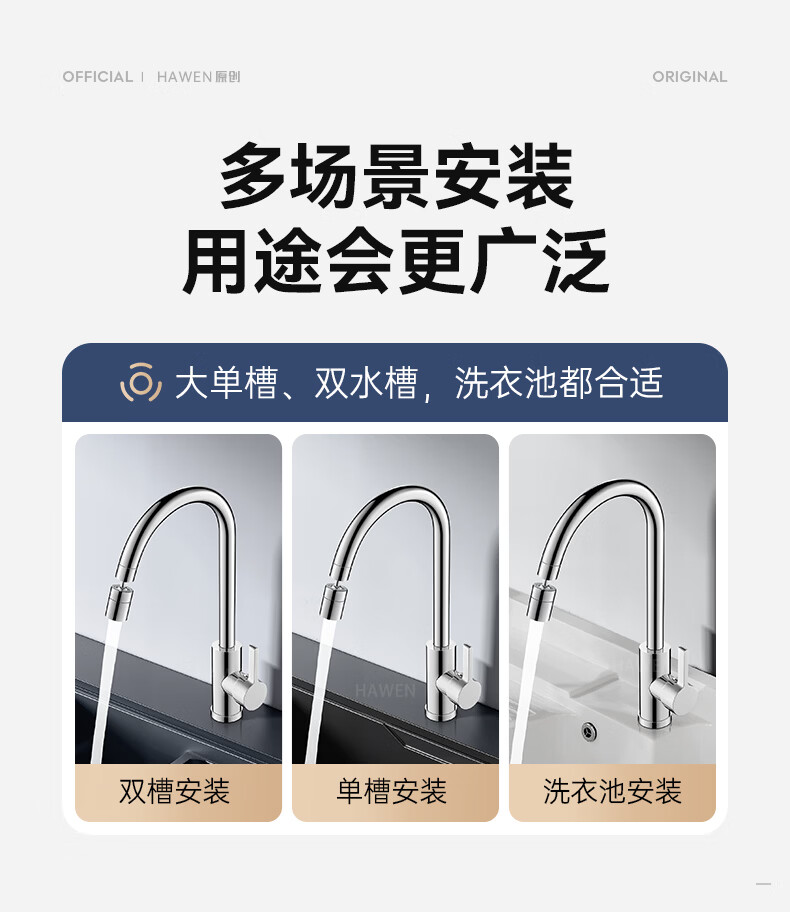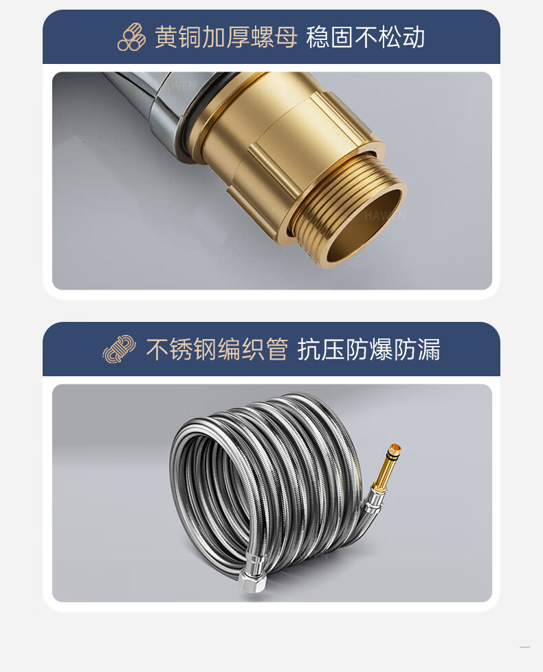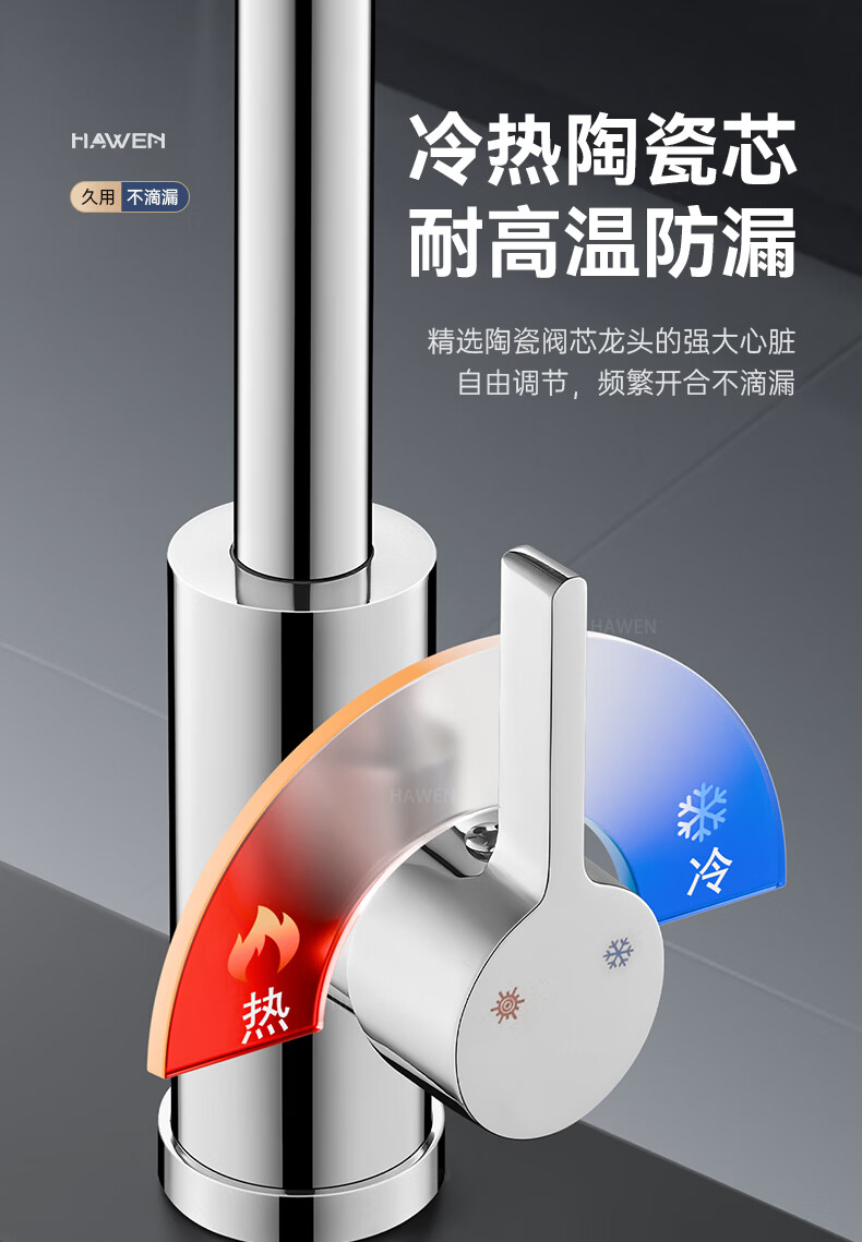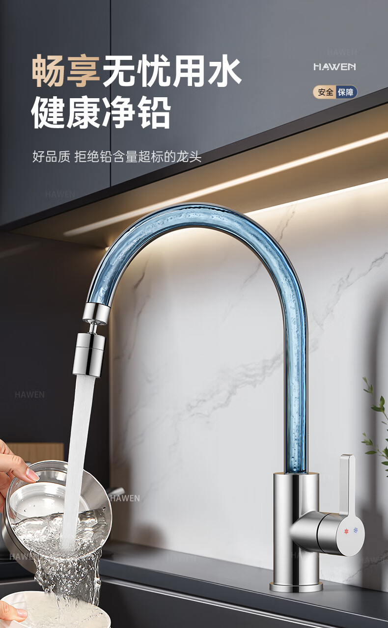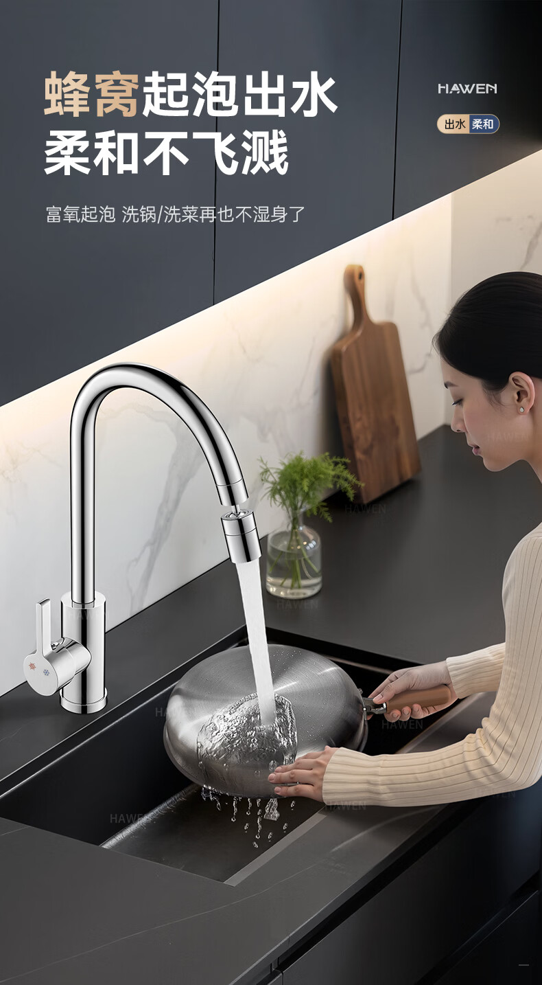 hawen【德国】厨房水龙头冷热双温二合一全铜万向旋转洗菜盆防溅水龙头 【电镀】两档增压防溅+自由万向旋转 精铜防腐防锈丨送冷热不锈钢进水管*2