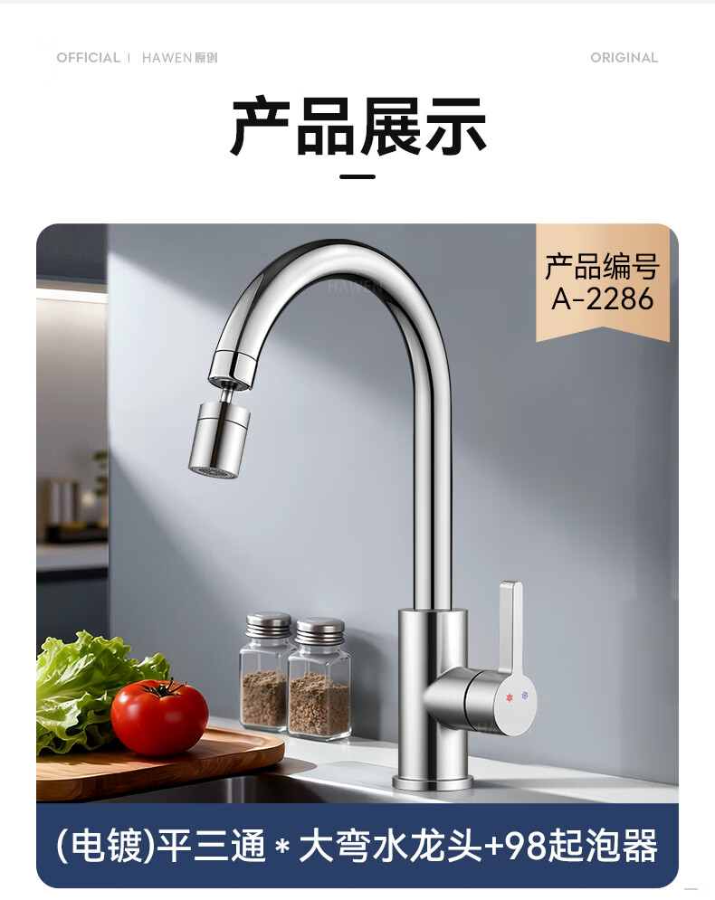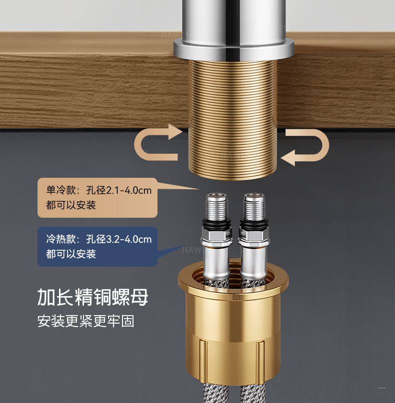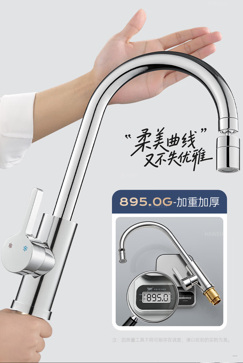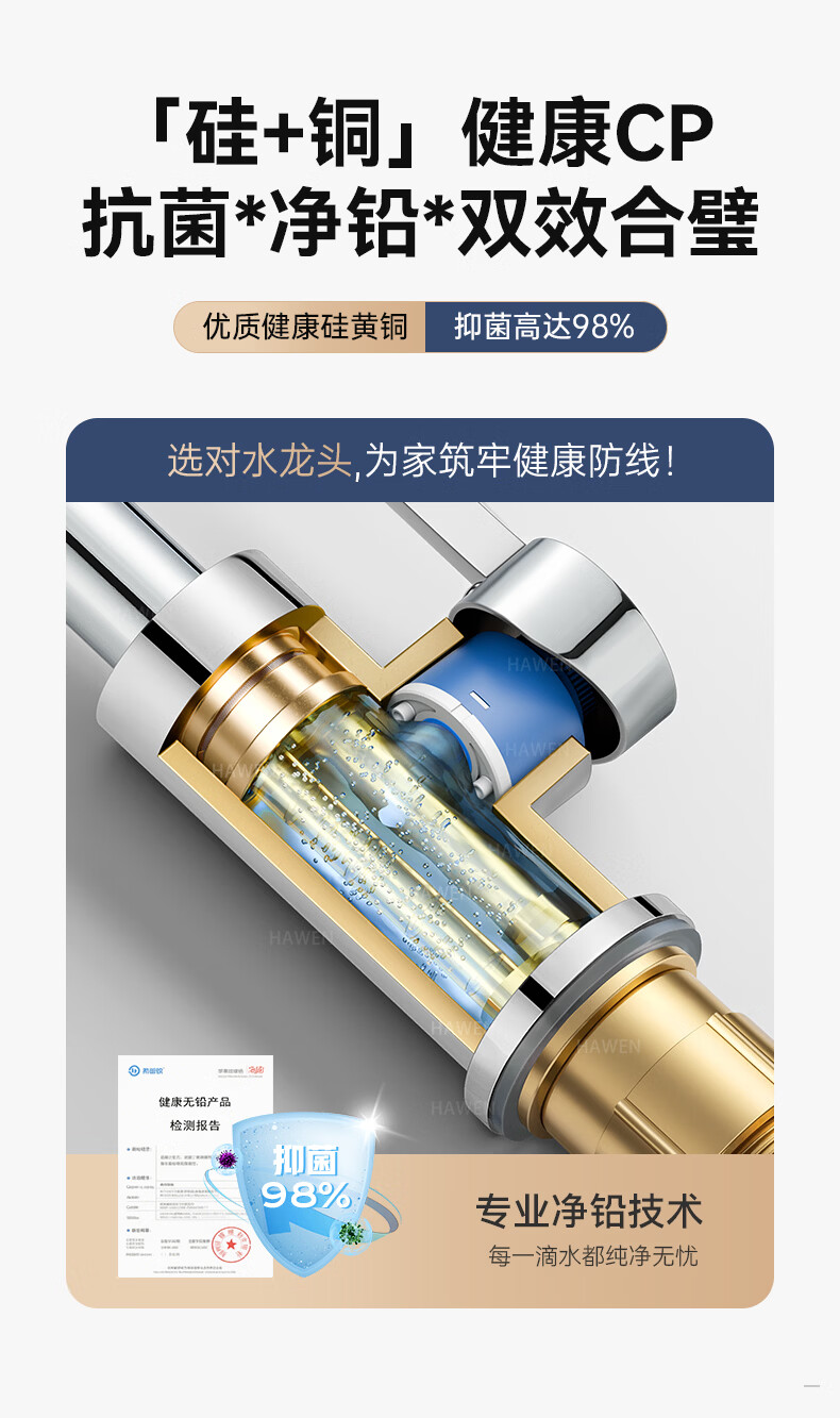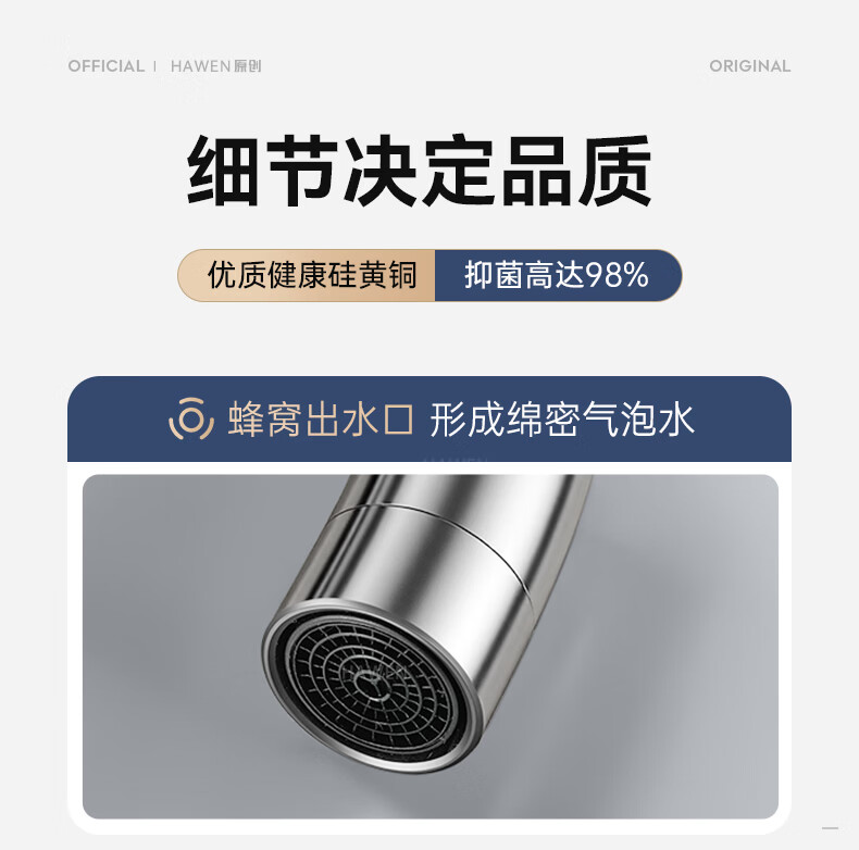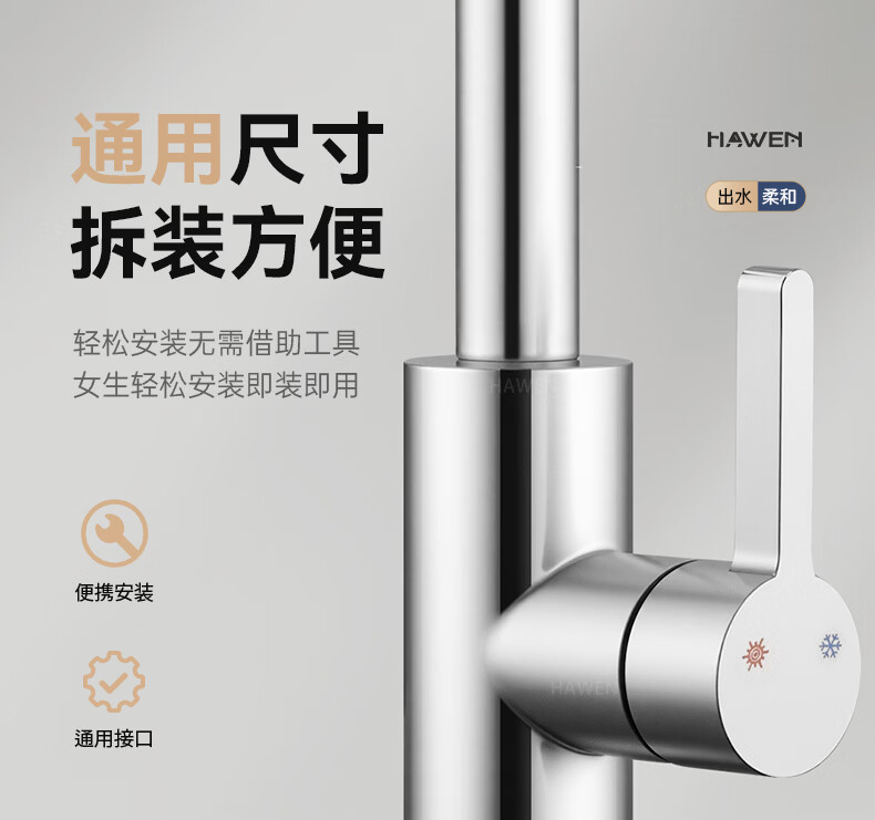 hawen【德国】厨房水龙头冷热双温二合一全铜万向旋转洗菜盆防溅水龙头 【电镀】两档增压防溅+自由万向旋转 精铜防腐防锈丨送冷热不锈钢进水管*2