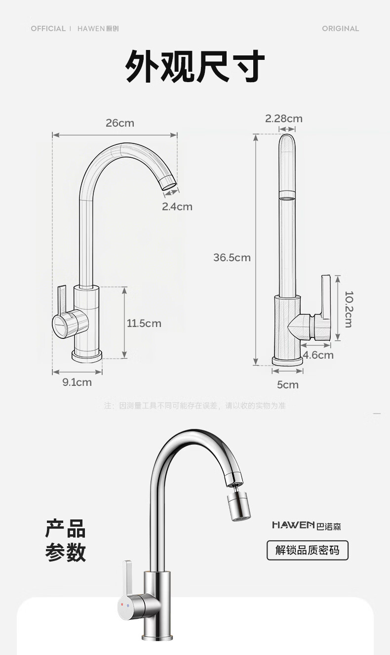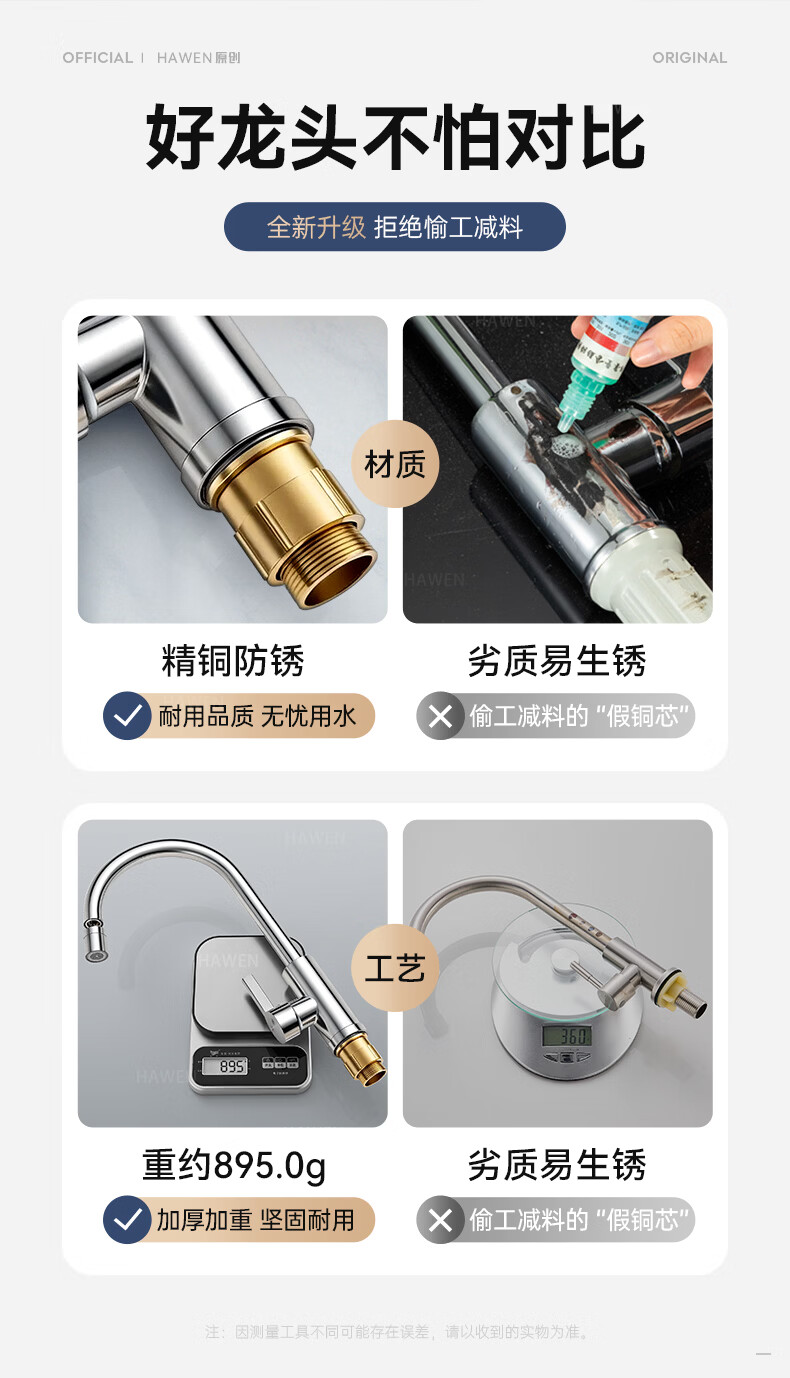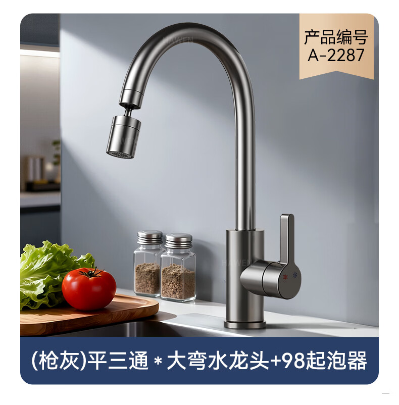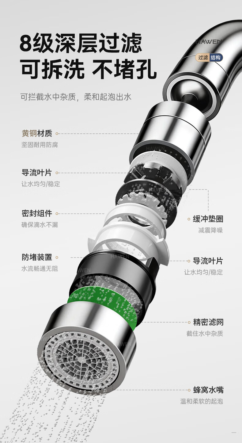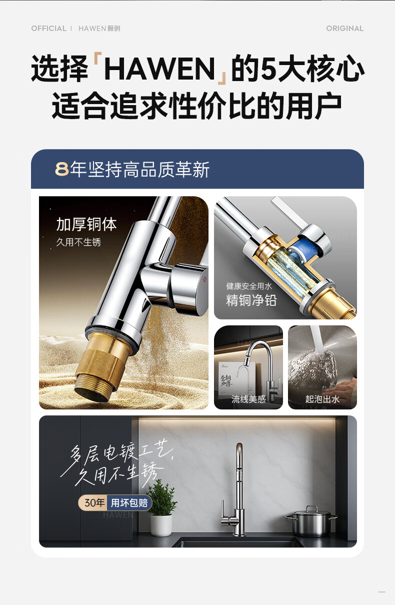 hawen【德国】厨房水龙头冷热双温二合一全铜万向旋转洗菜盆防溅水龙头 【电镀】两档增压防溅+自由万向旋转 精铜防腐防锈丨送冷热不锈钢进水管*2