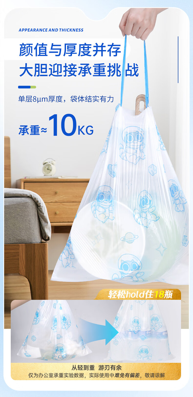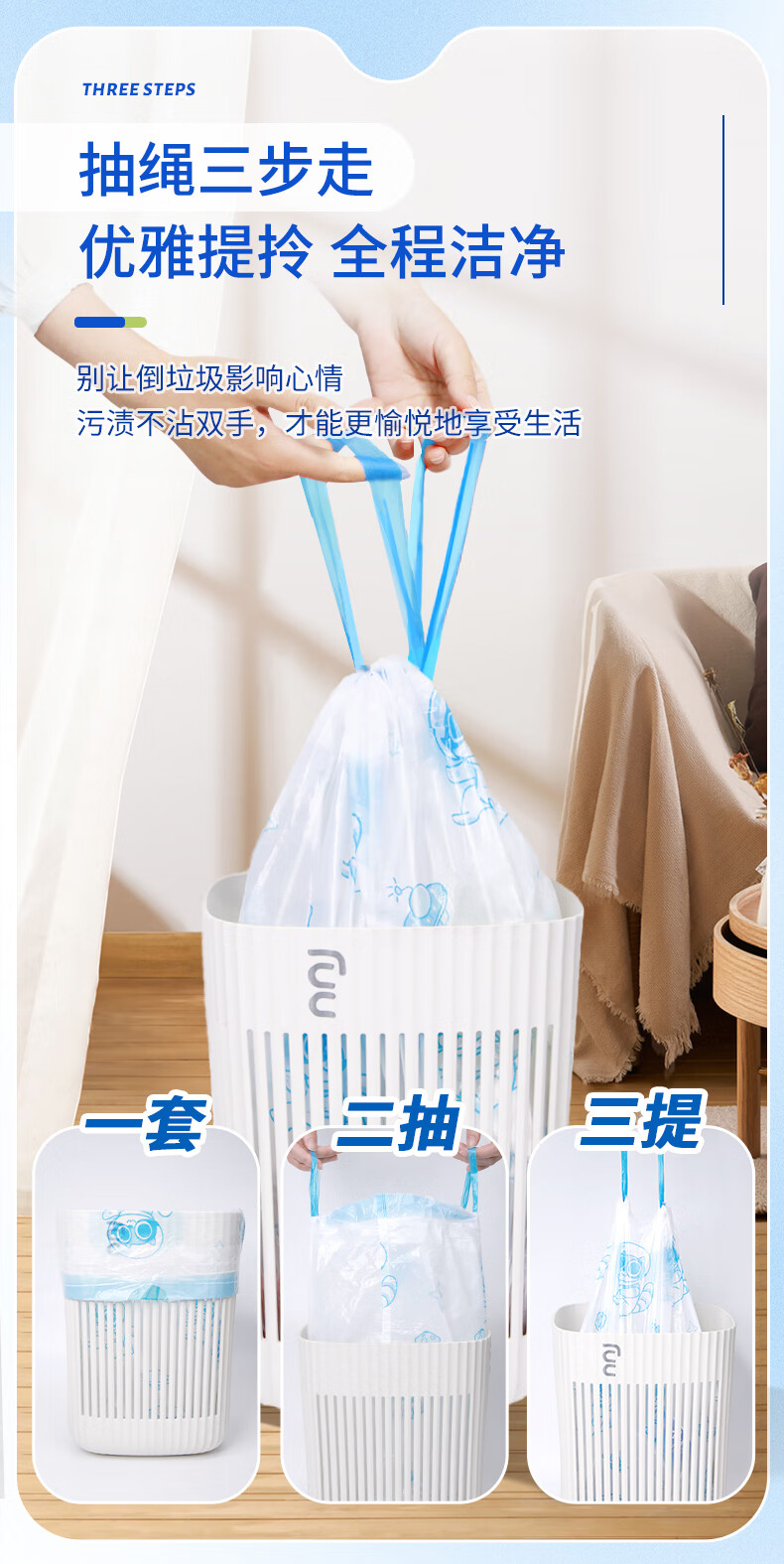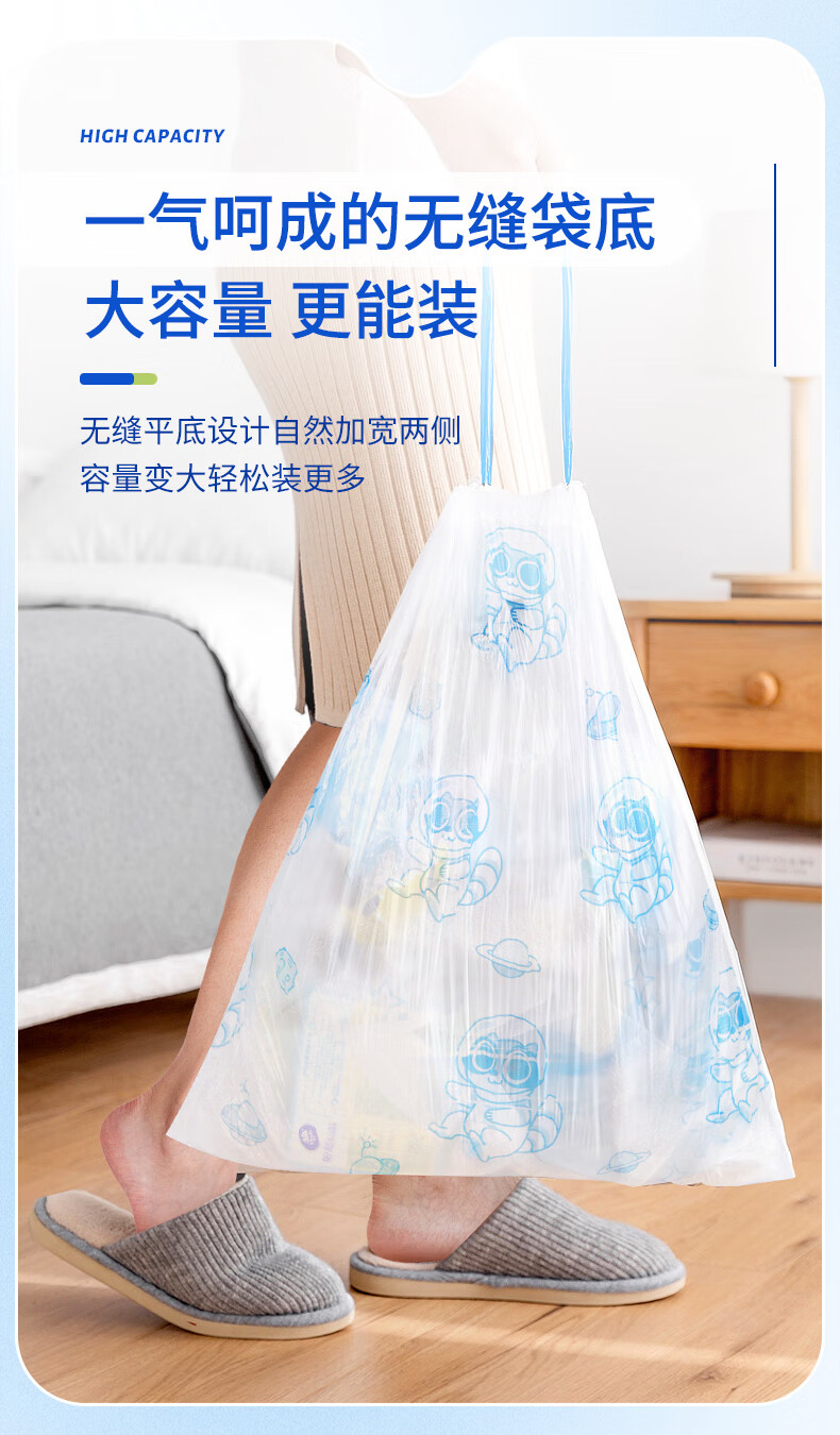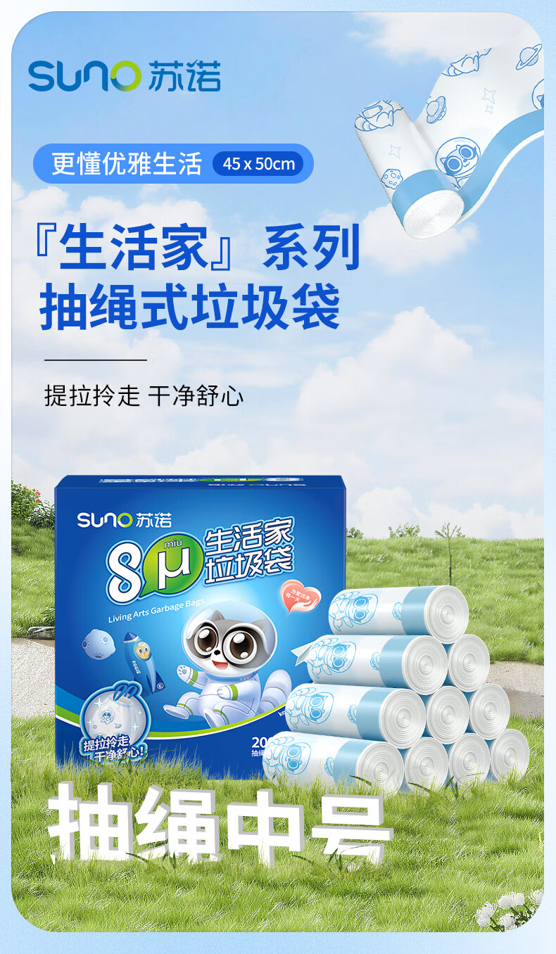 苏诺抽绳式垃圾袋印花45*50cm*200只单面0.8丝全新料防刺破家用办公