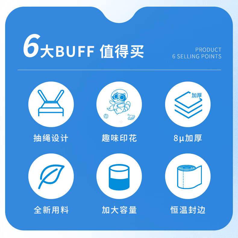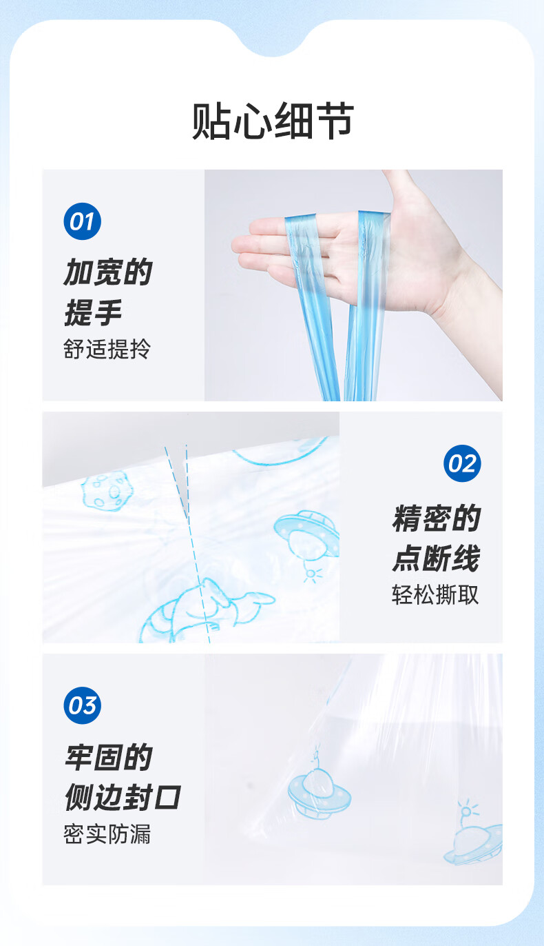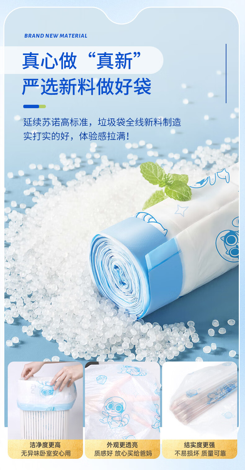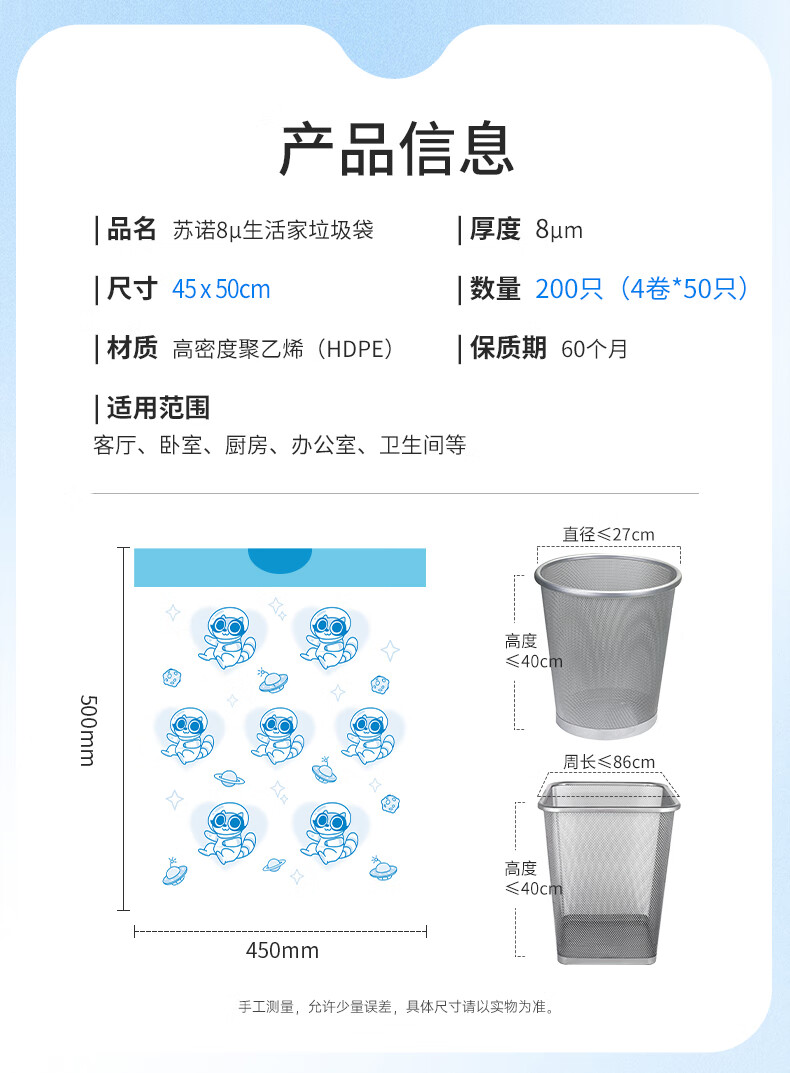 苏诺抽绳式垃圾袋印花45*50cm*200只单面0.8丝全新料防刺破家用办公