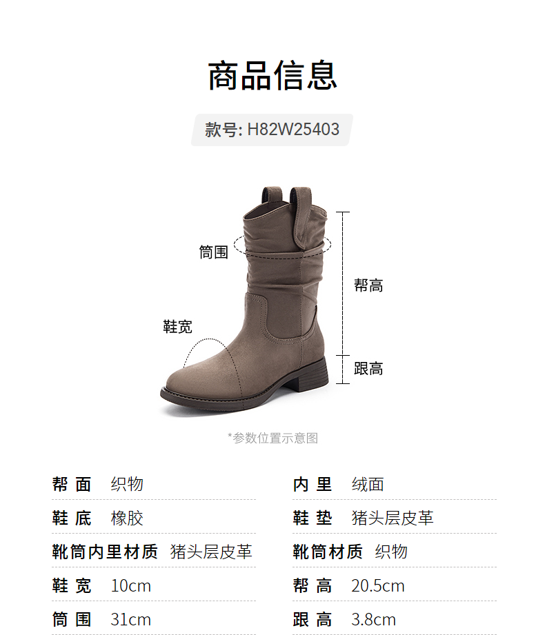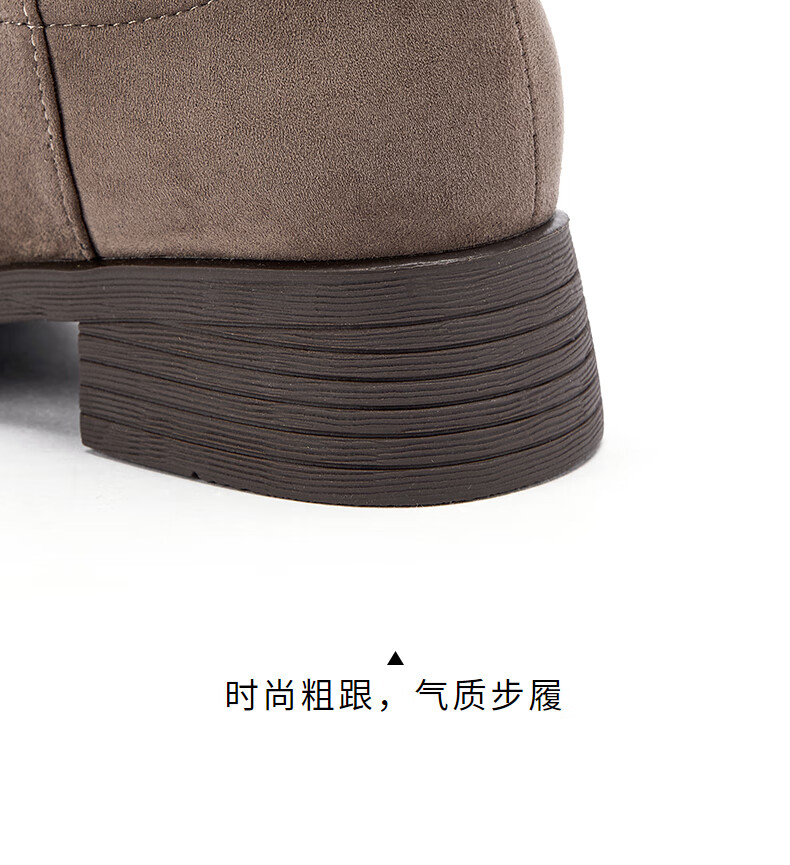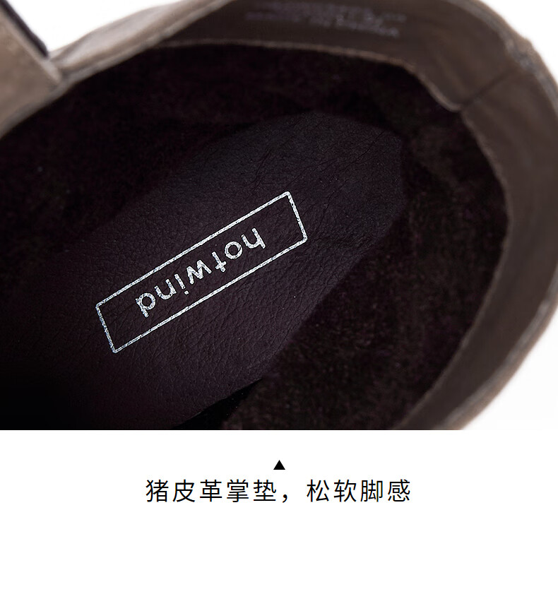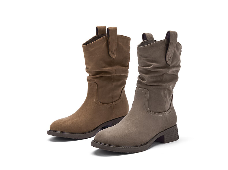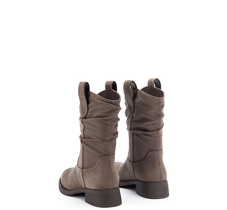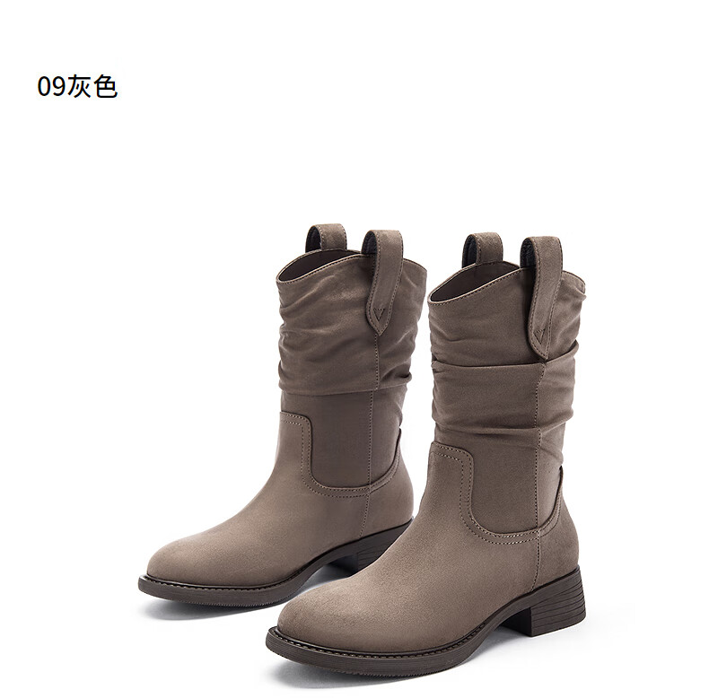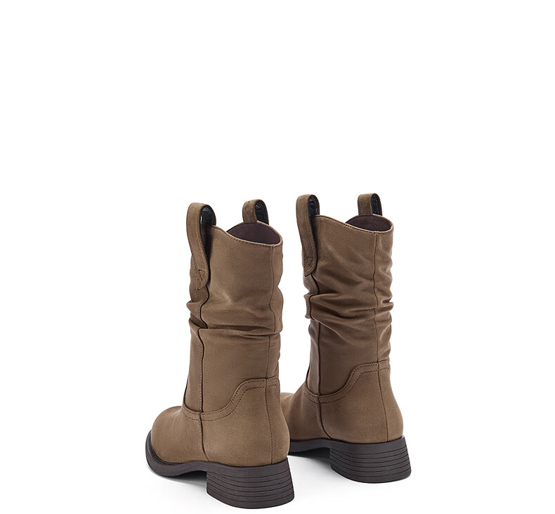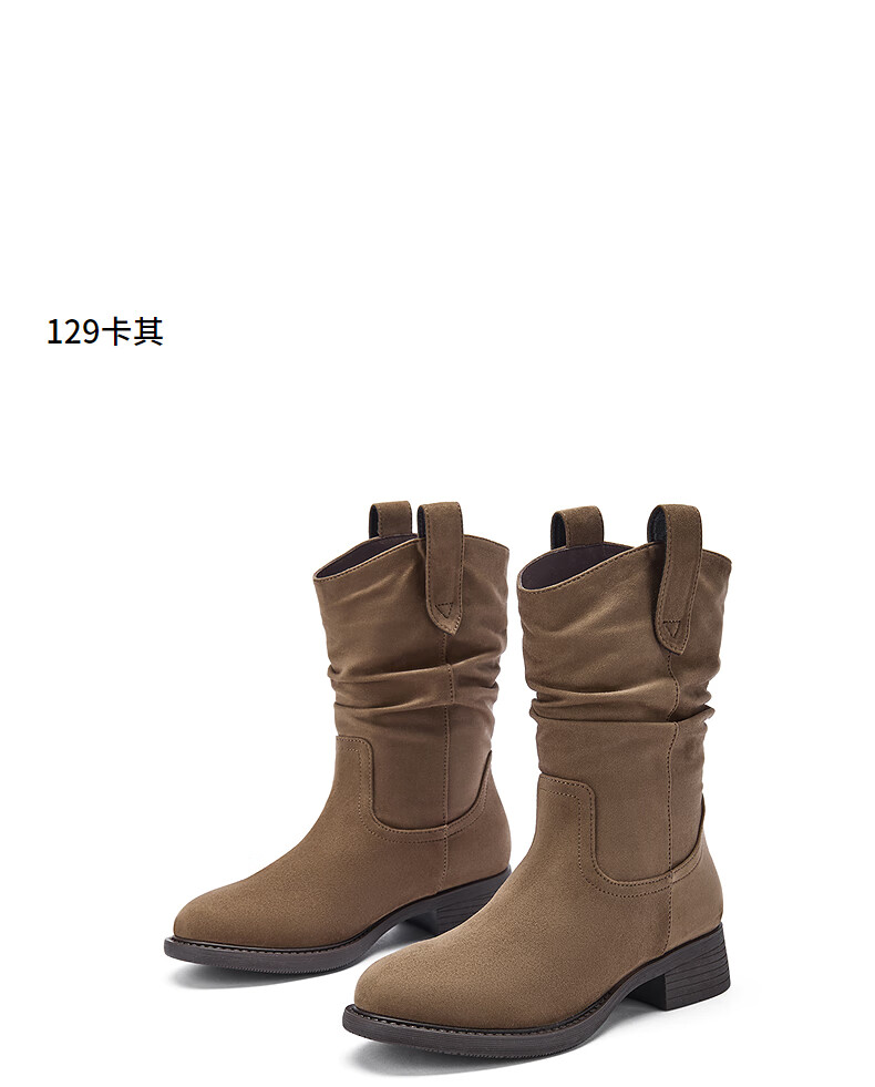热风女西部靴2025年冬季新款女士休闲百搭粗跟时装靴显瘦堆堆靴短靴子 129卡其 38