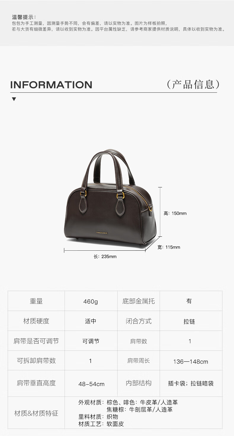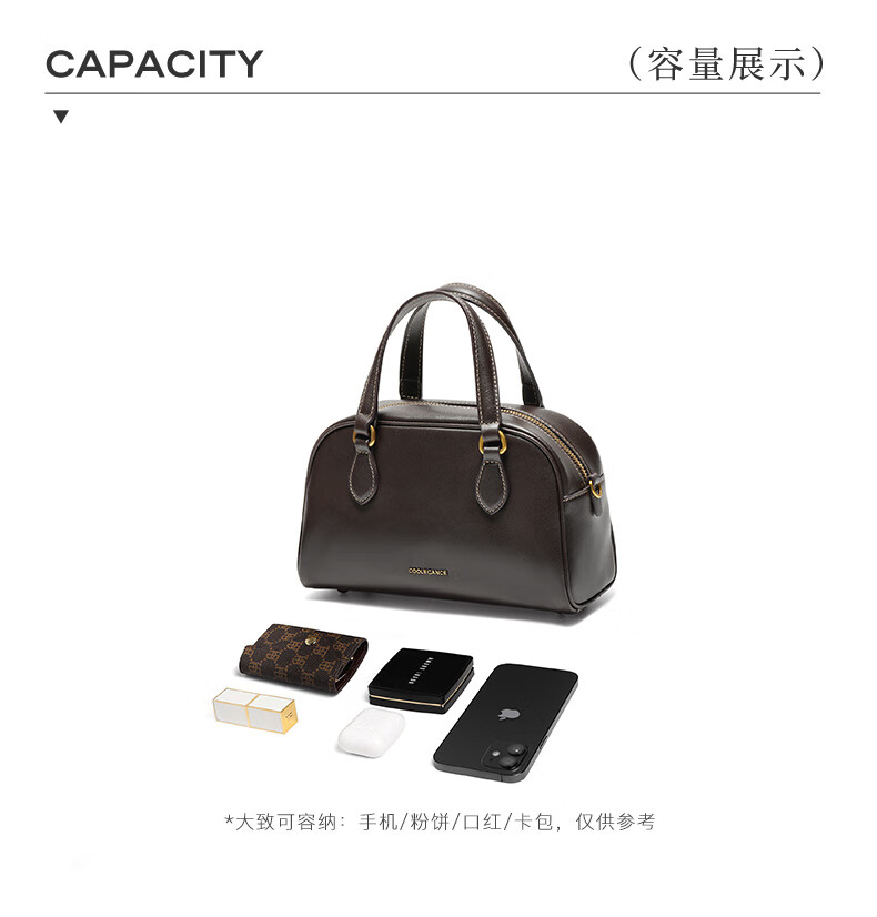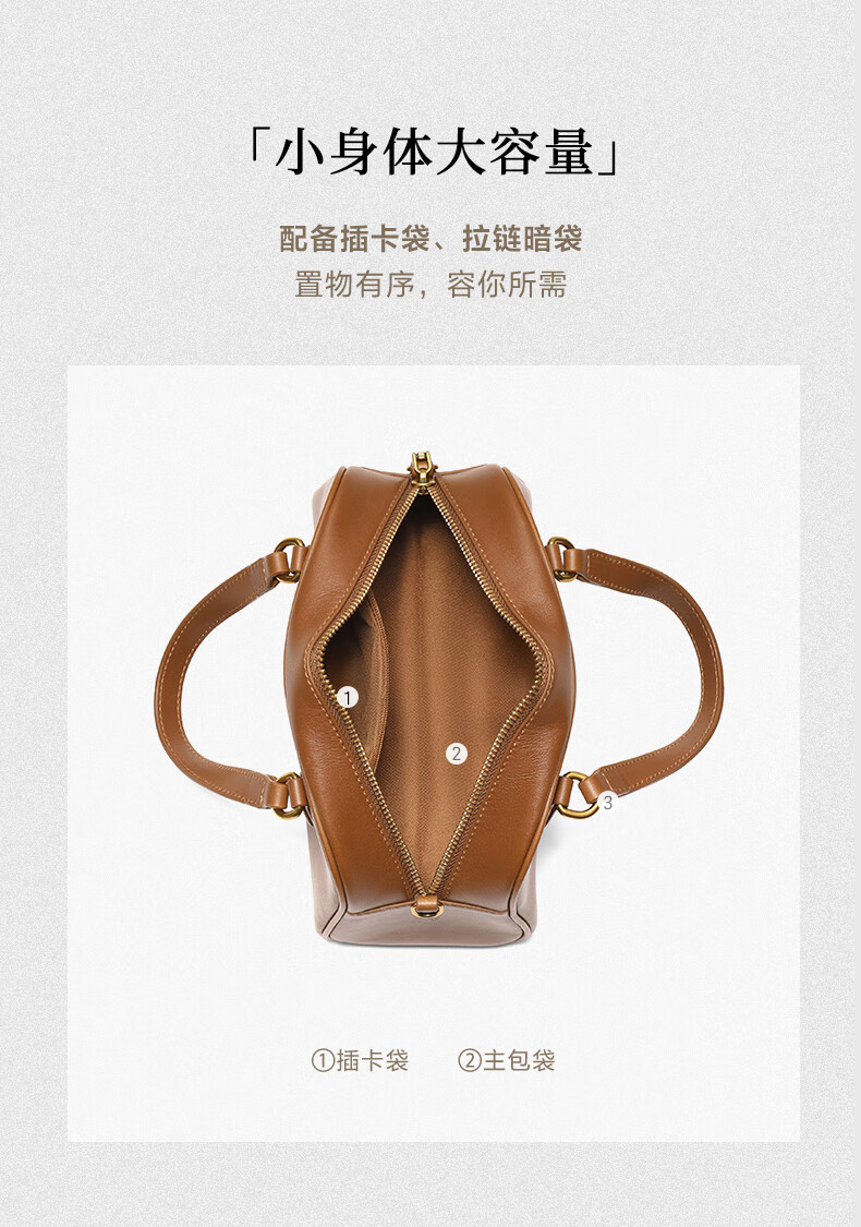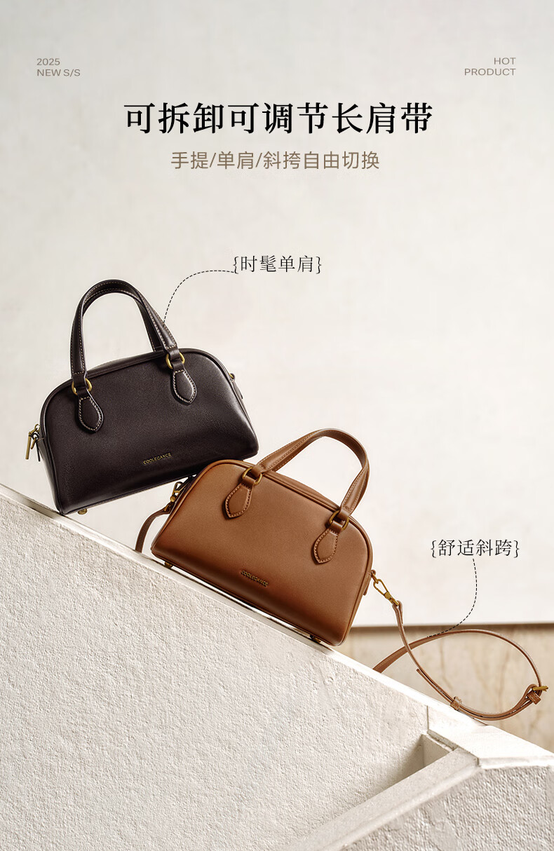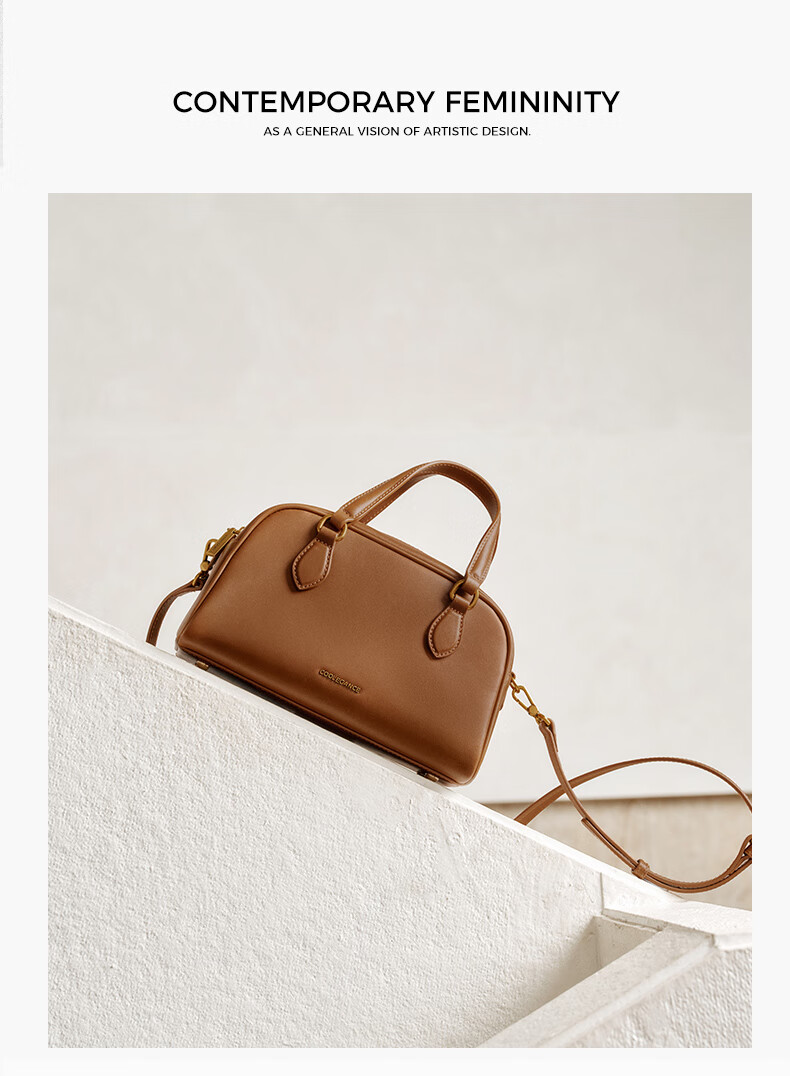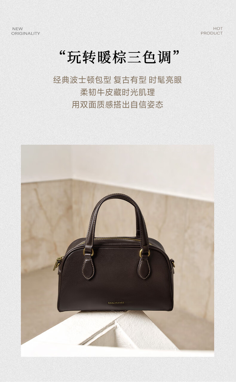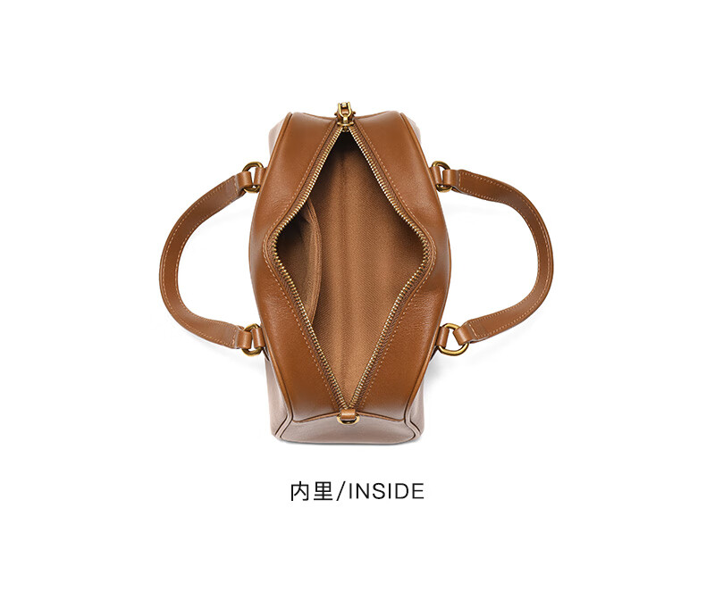 百丽包包女25商场同款头层牛皮美拉德风单肩斜挎波士顿包BL861DX5 棕色【牛皮款】 F