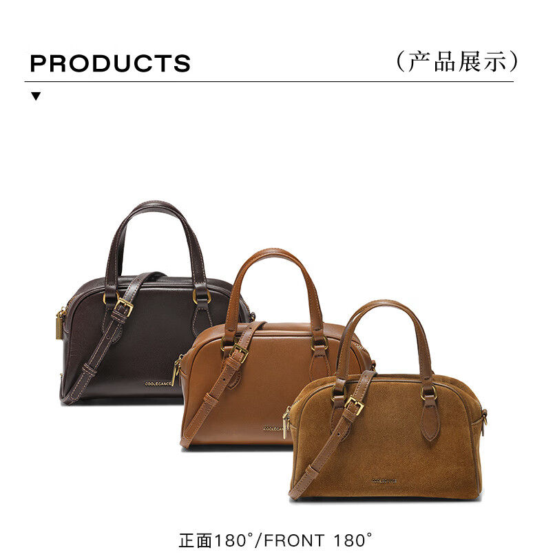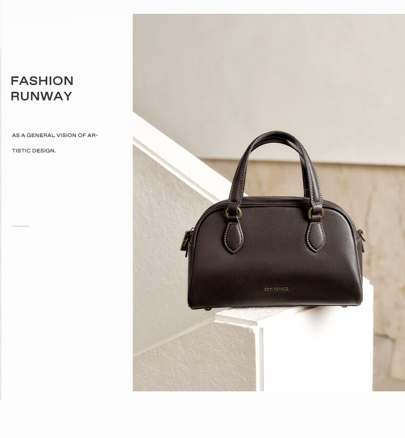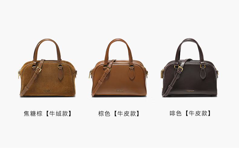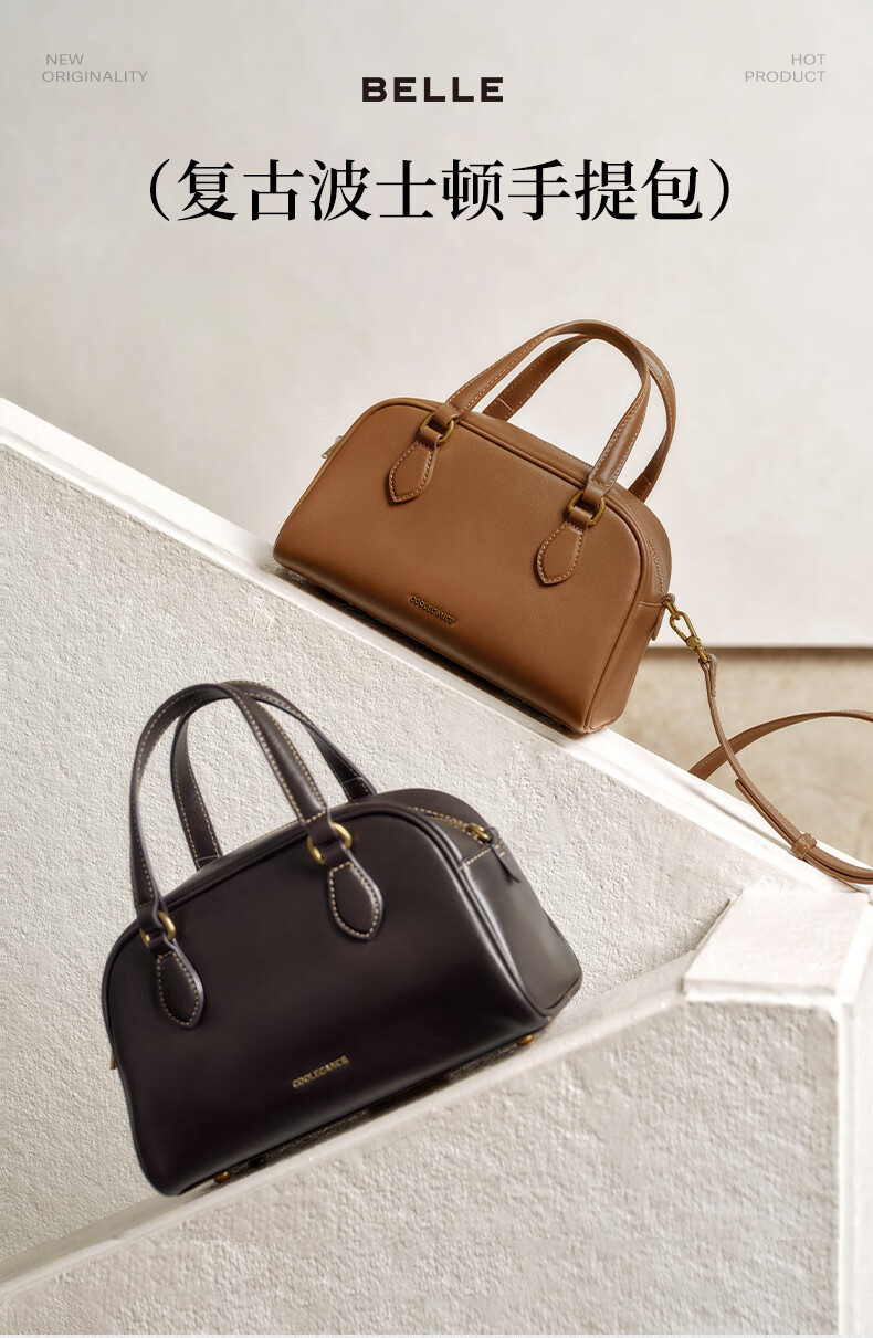 百思图2025冬季新款波士顿包时尚复古通勤女手提包JA135DX5 棕色 F