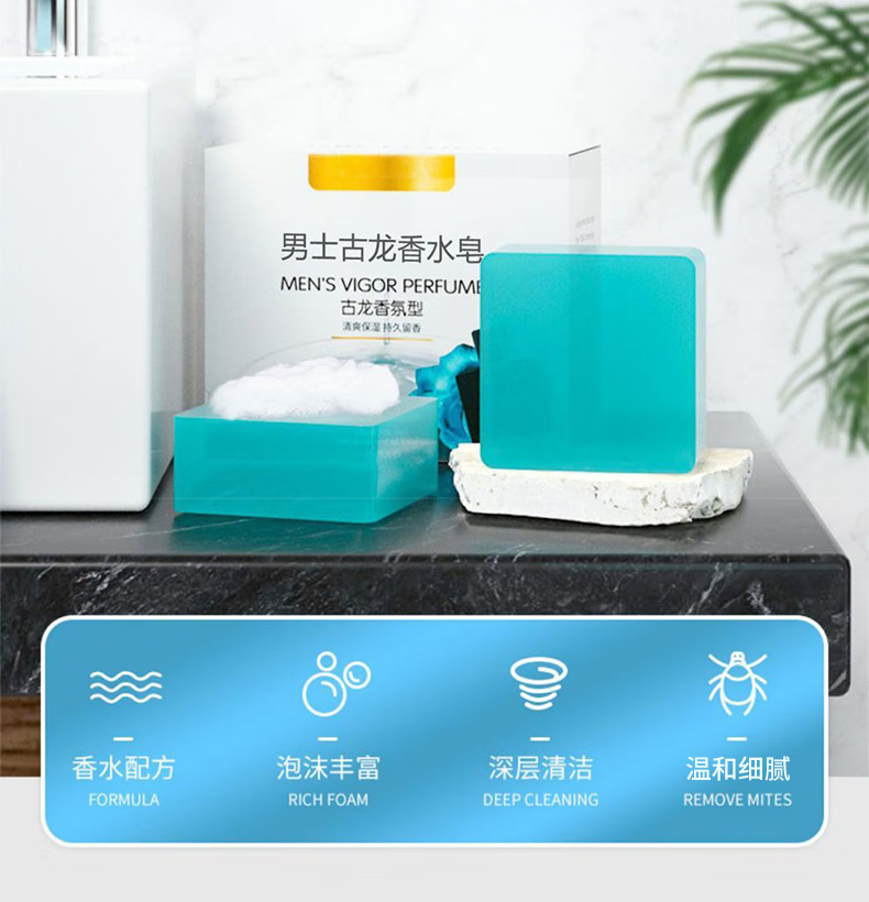 激雪古龙香皂男士精油皂香氛沐浴洗脸皂清爽留香水泡沫洗澡皂 古龙香水精油皂*3盒