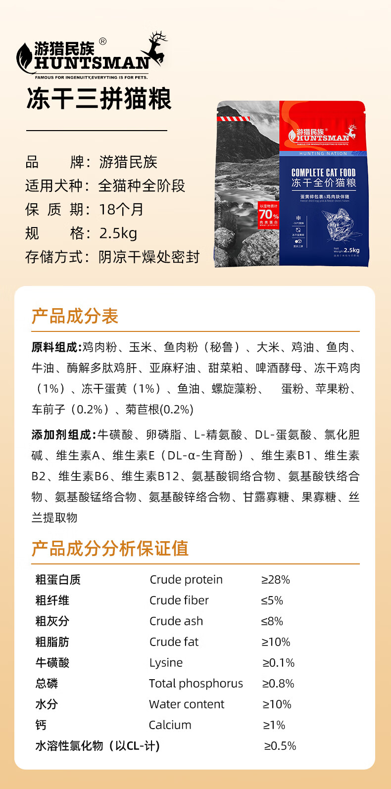 游猎民族冻干猫粮全价成猫幼猫全期通用粮 2.5kg