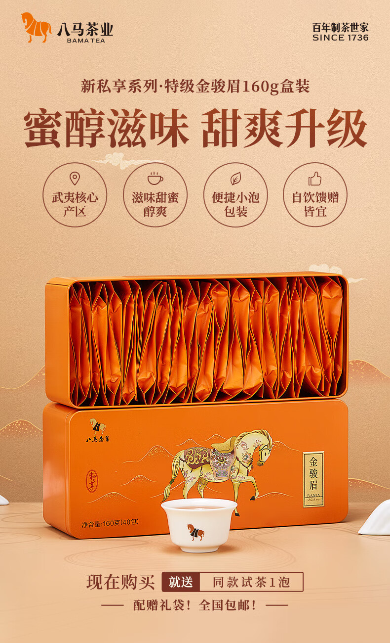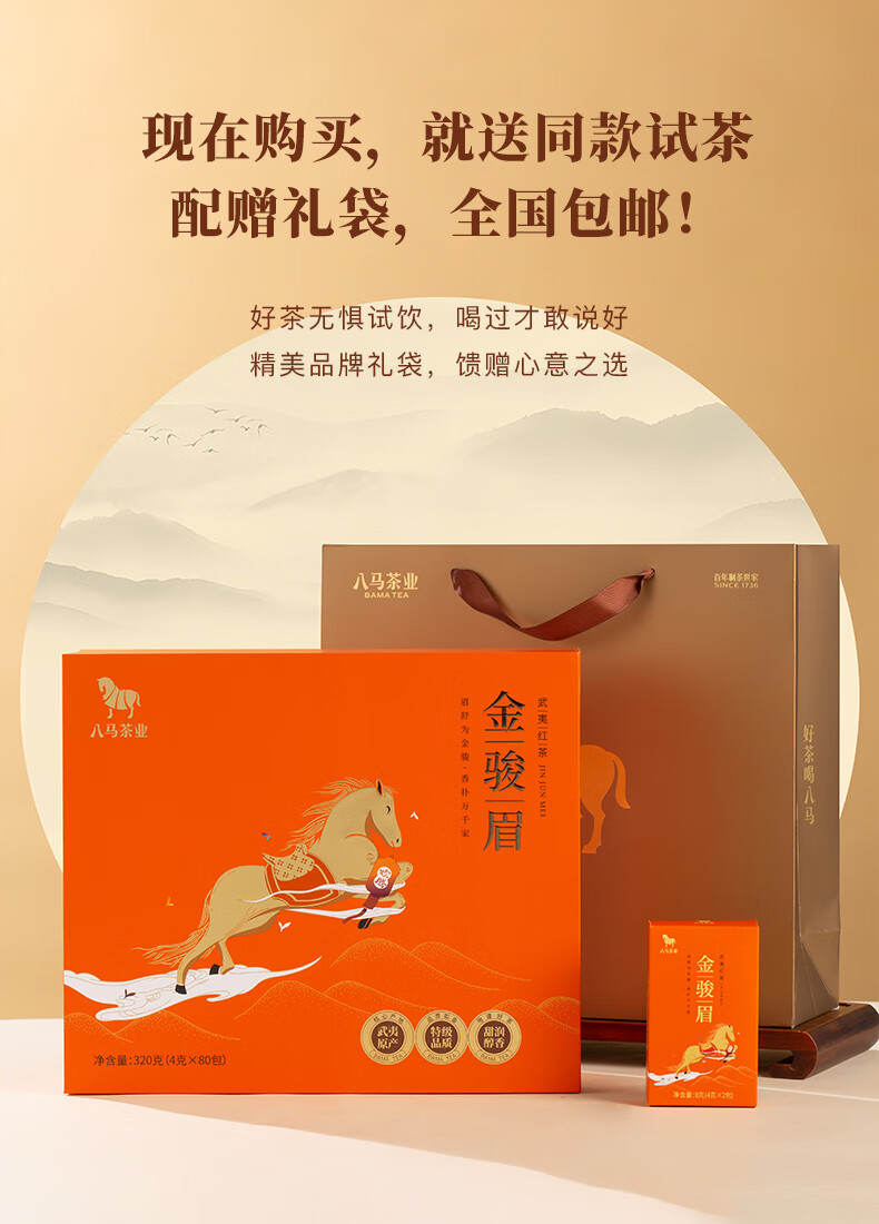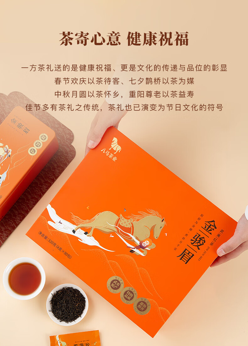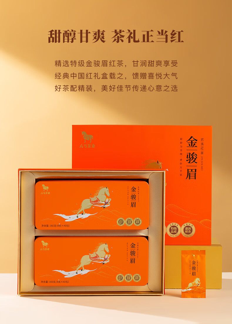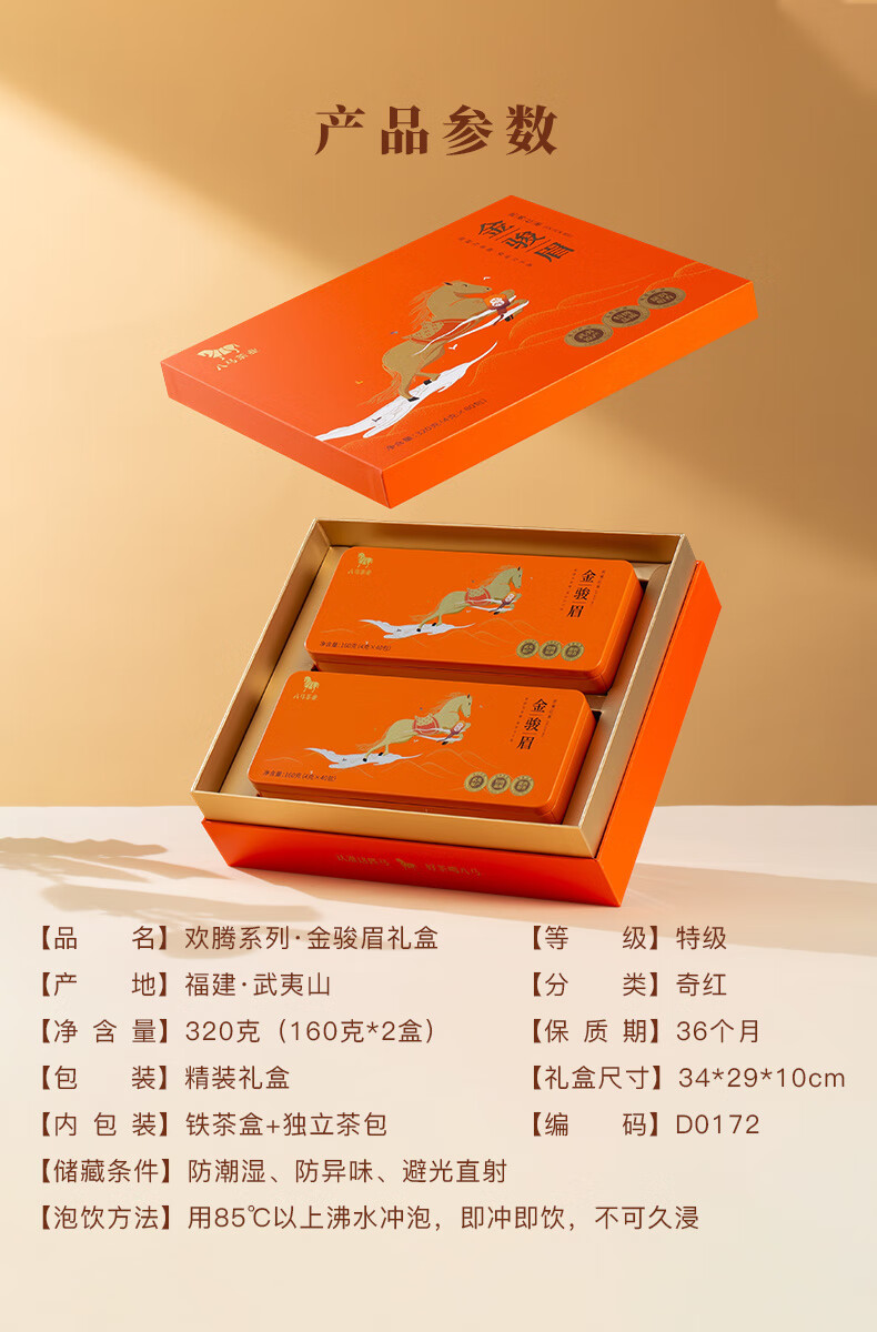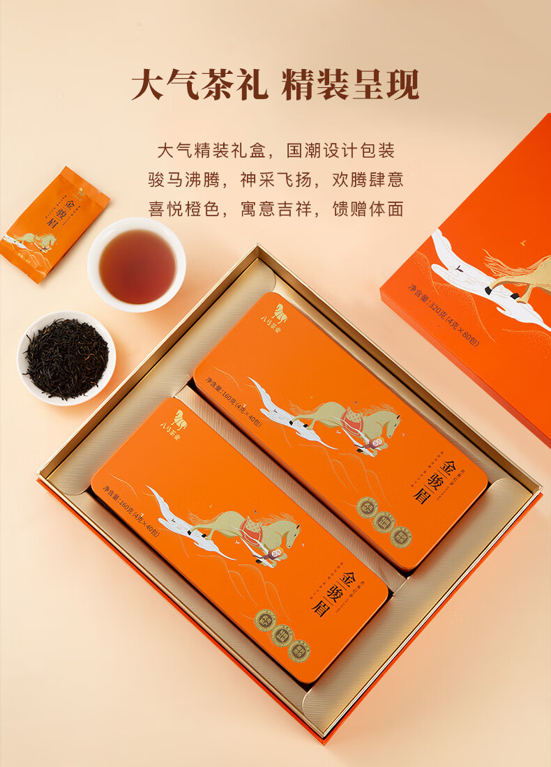 八马茶业 特级 武夷红茶 金骏眉 送礼茶叶 礼盒装 欢腾-320g【赠试茶+礼袋】