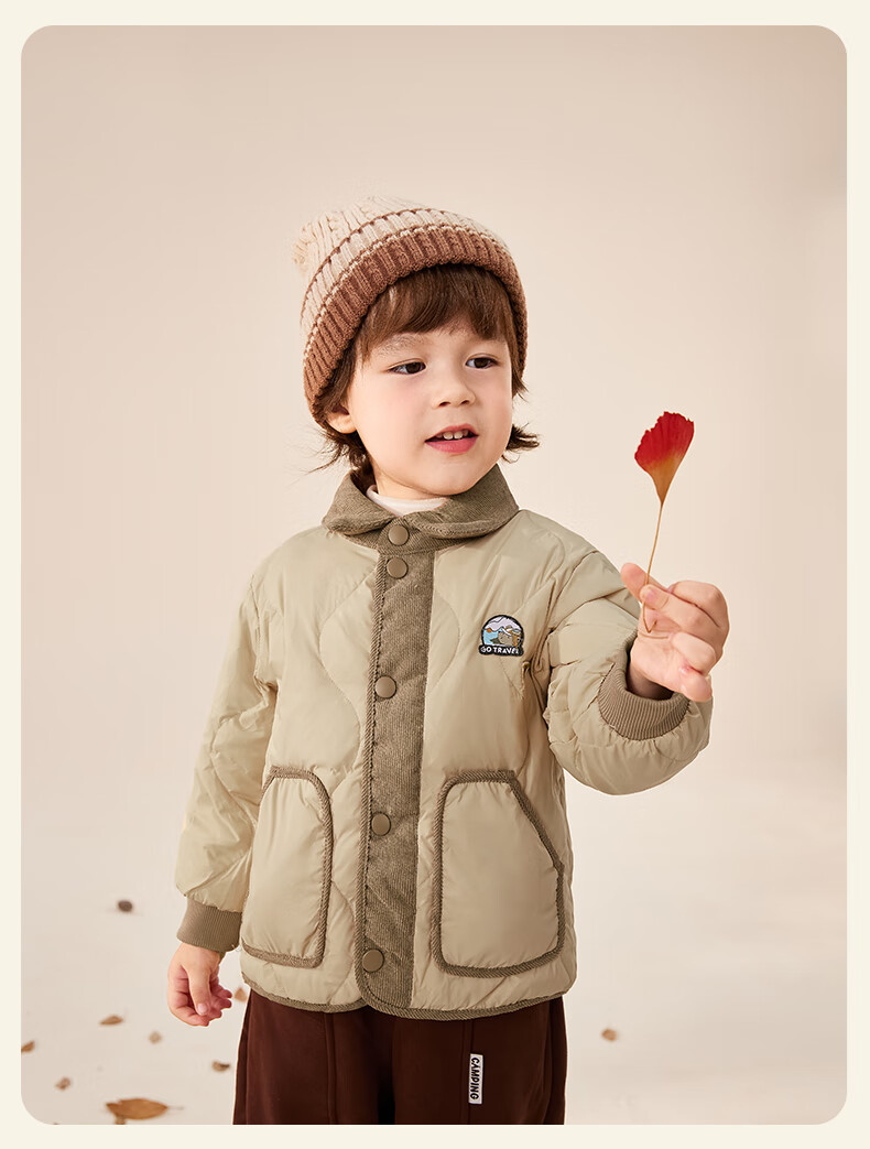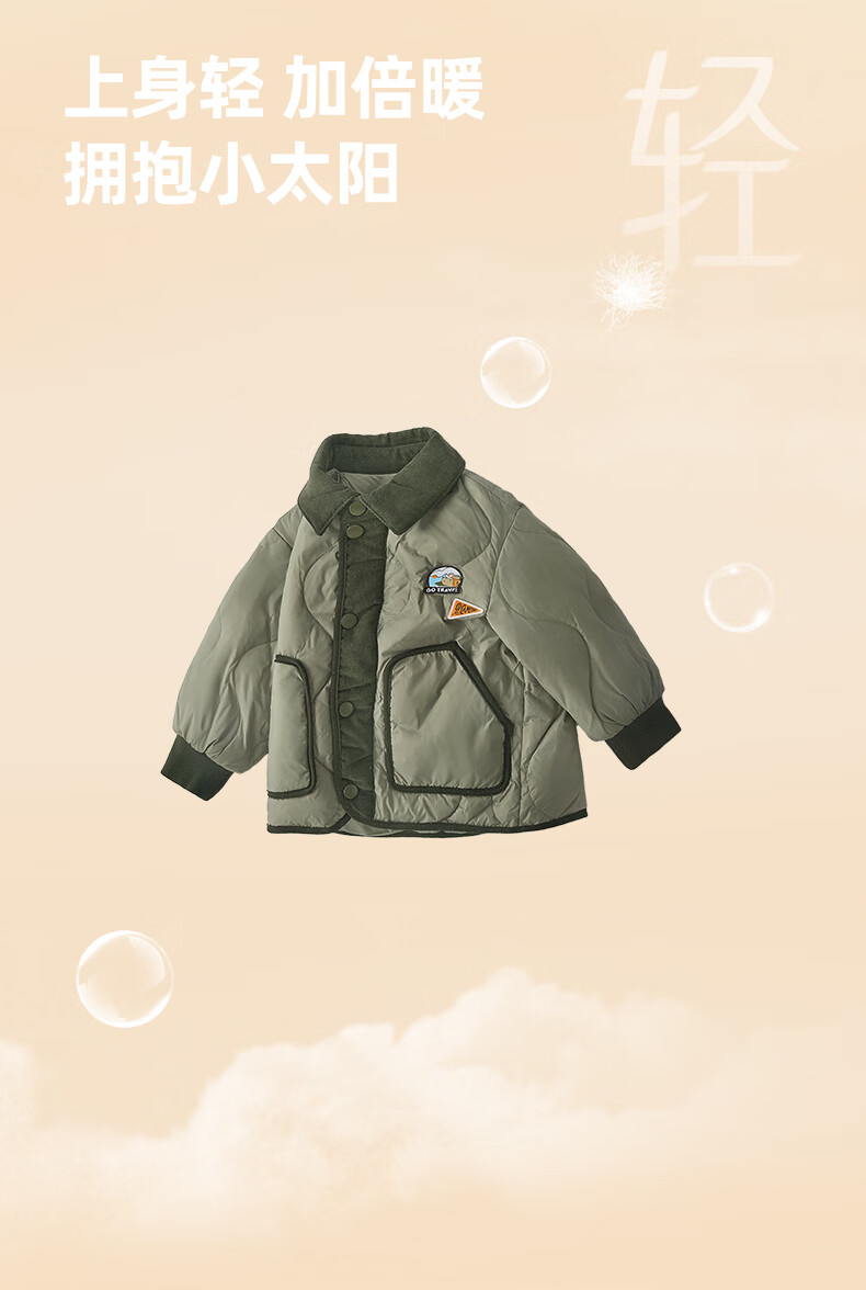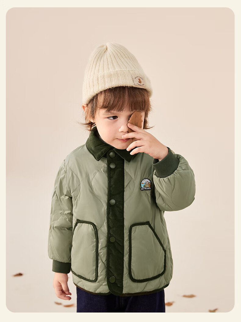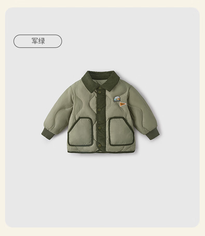 JELLYBABY【2025秋冬新品】儿童羽绒服女童时髦上衣男小童加厚宝宝秋季外套 军绿 110 CM