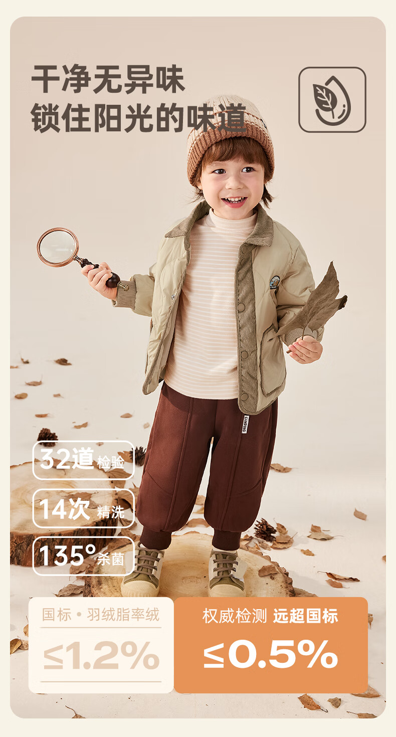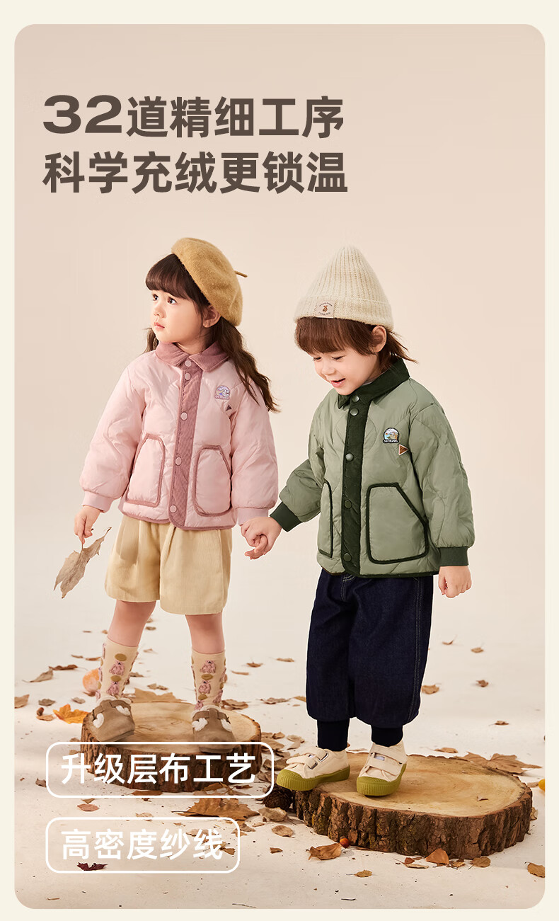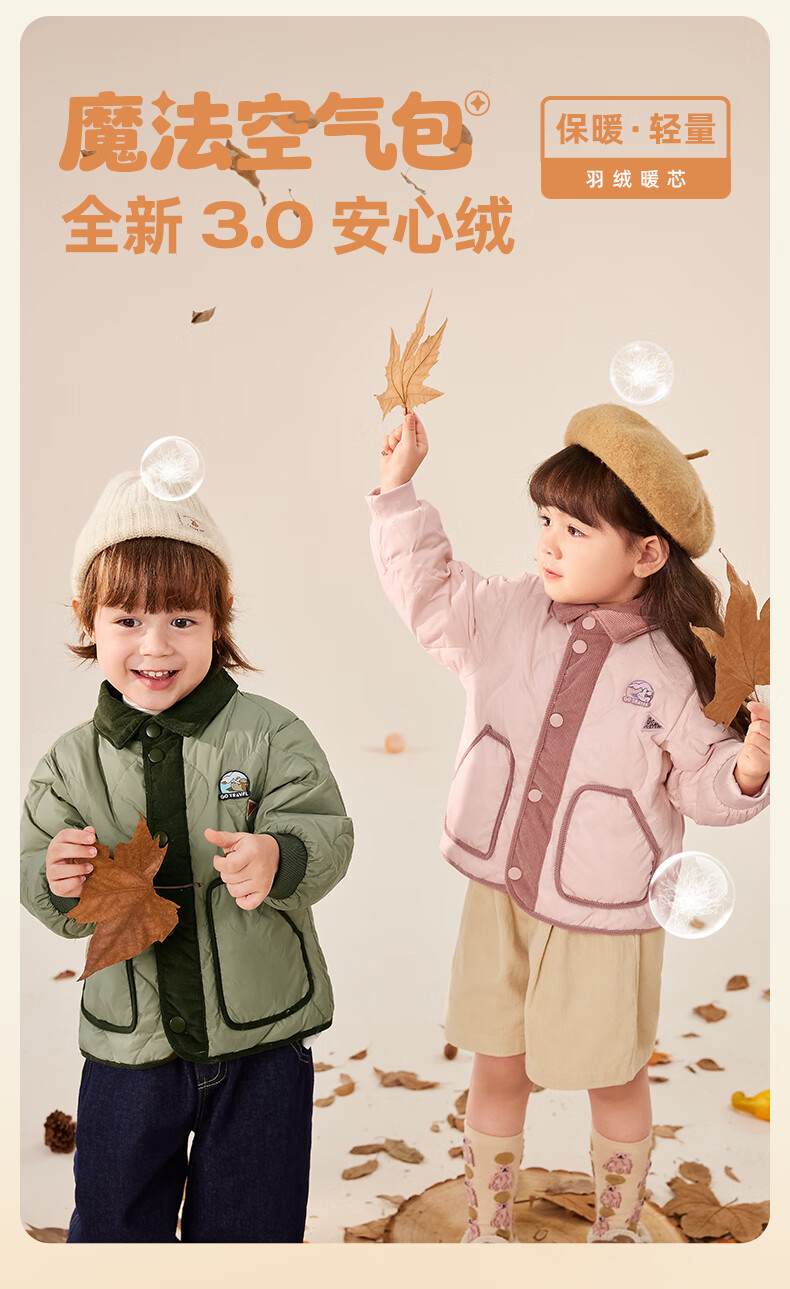 JELLYBABY【2025秋冬新品】儿童羽绒服女童时髦上衣男小童加厚宝宝秋季外套 军绿 110 CM