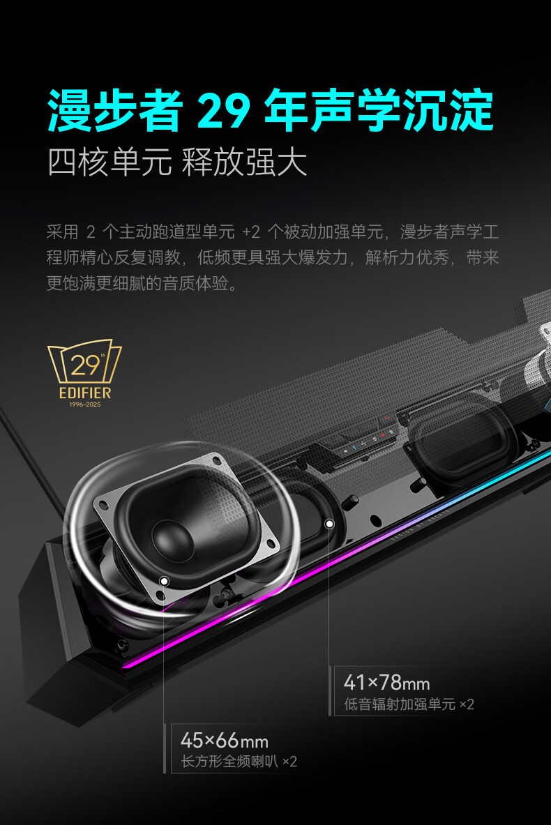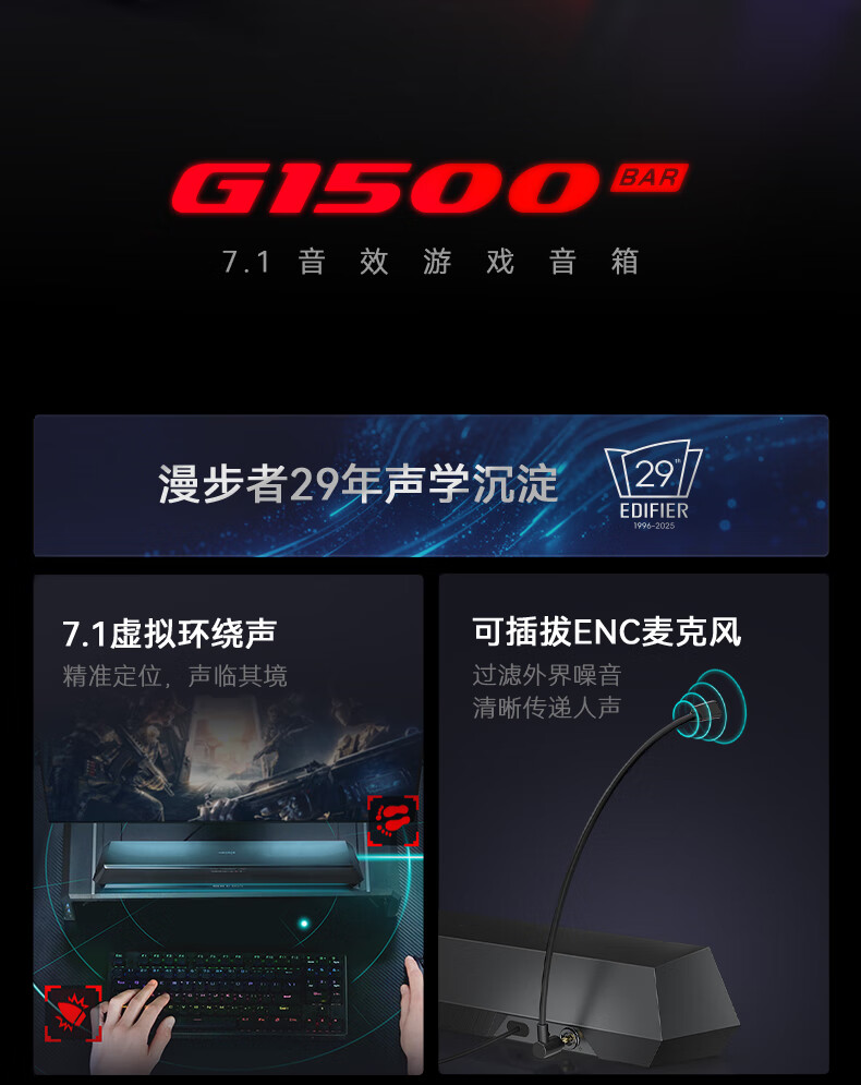 漫步者(EDIFIER)HECATE G1500 Bar 7.1音效电竞桌面长条形游戏音箱防啸叫蓝牙5.4家用台式电脑笔记本音响 黑色
