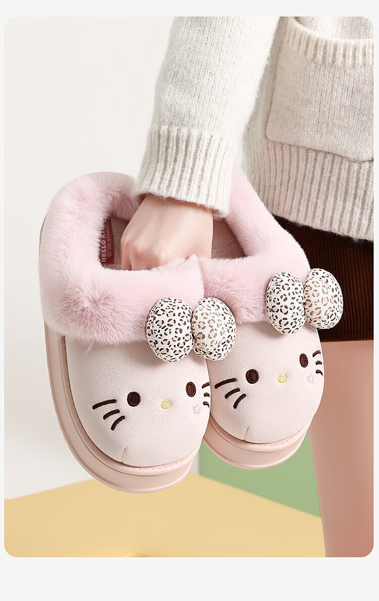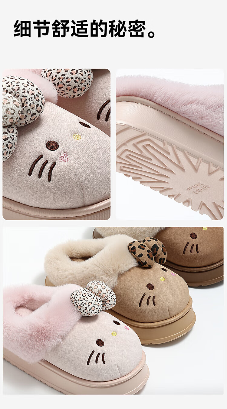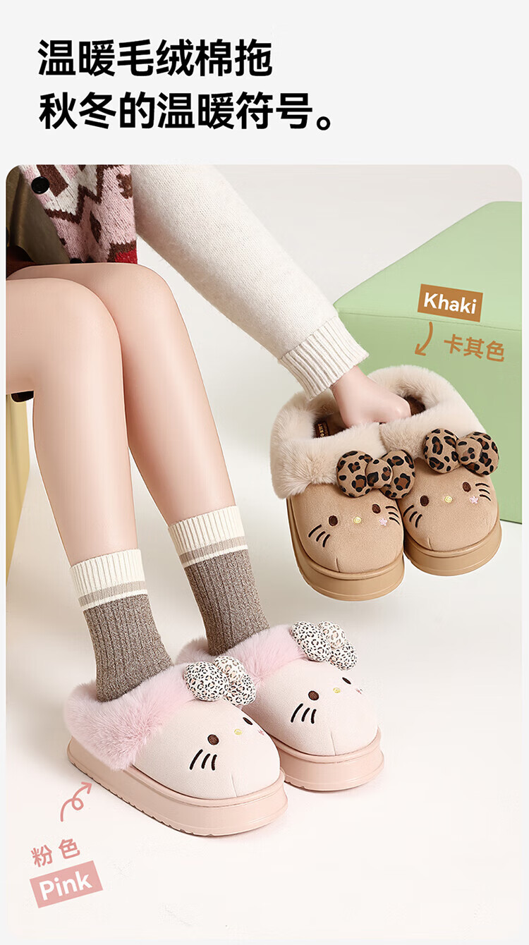 FZT厚底勃肯鞋女秋季2025新款外穿防滑一脚蹬HelloKitty猫棉拖鞋女款 深咖 36-37 标准码【内长225mm】