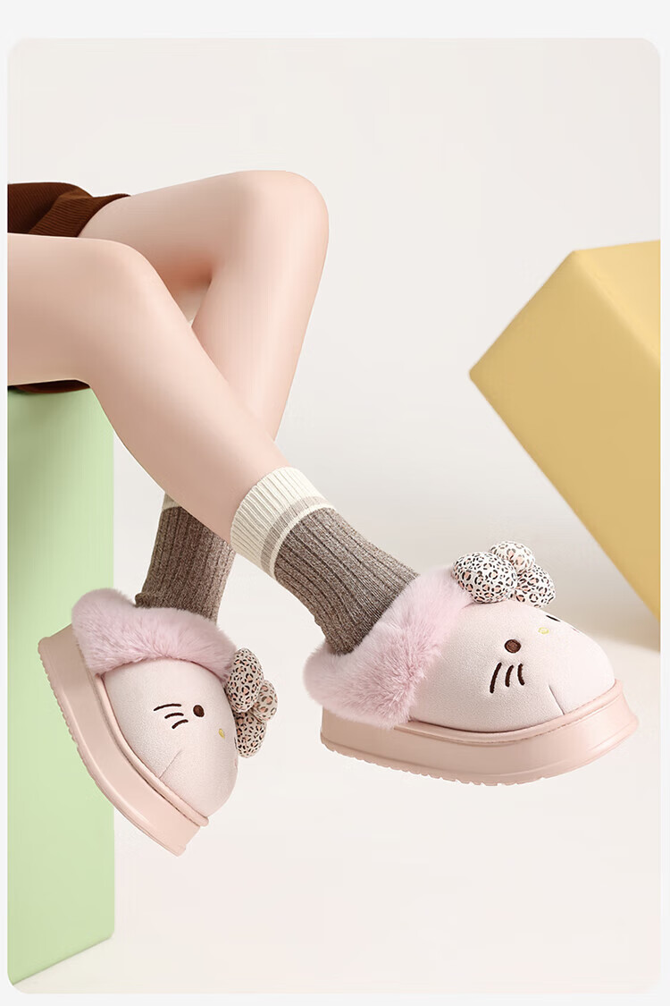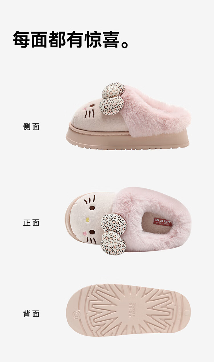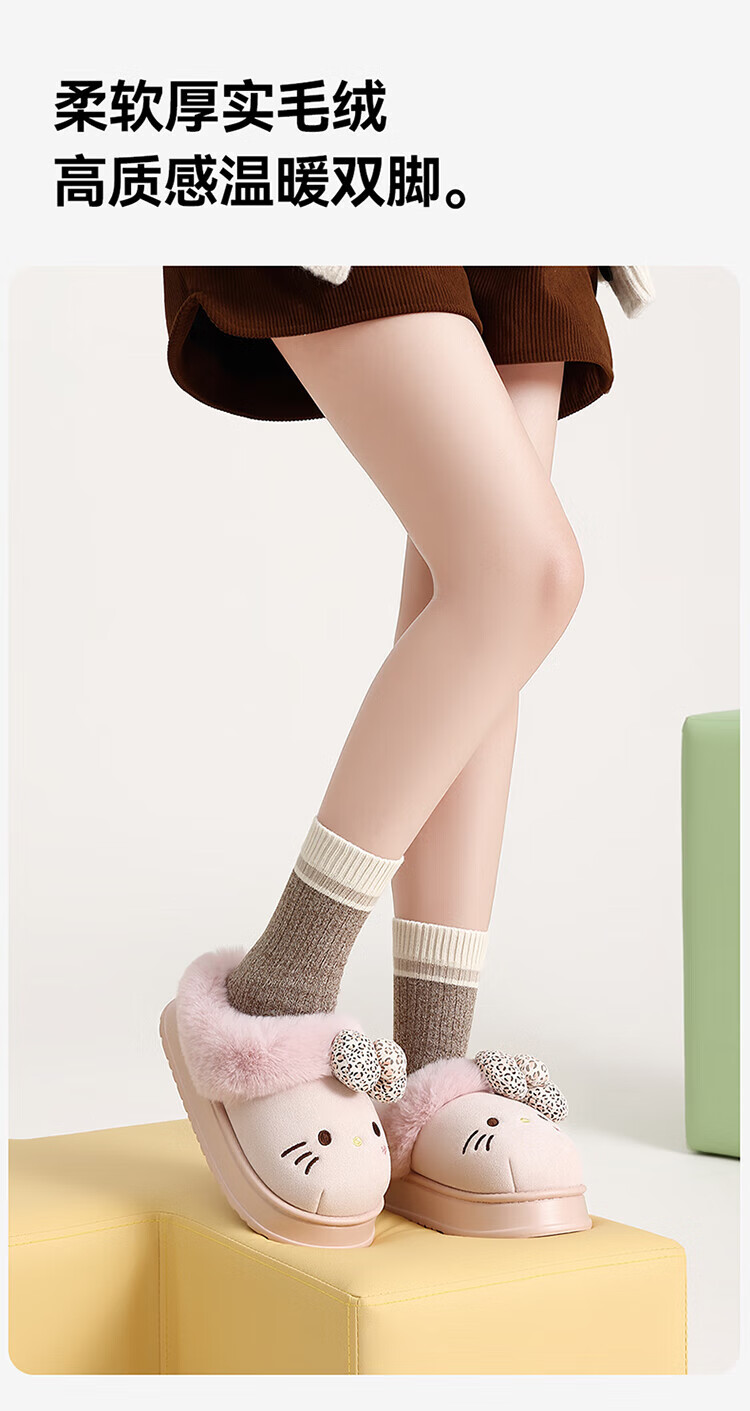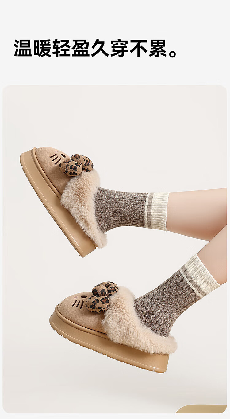 FZT厚底勃肯鞋女秋季2025新款外穿防滑一脚蹬HelloKitty猫棉拖鞋女款 深咖 36-37 标准码【内长225mm】