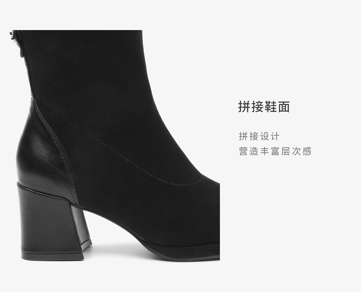 星期六(St&Sat)时尚过膝长筒靴女靴时尚百搭增高松糕底气质显高显瘦瘦靴子 黑色 35