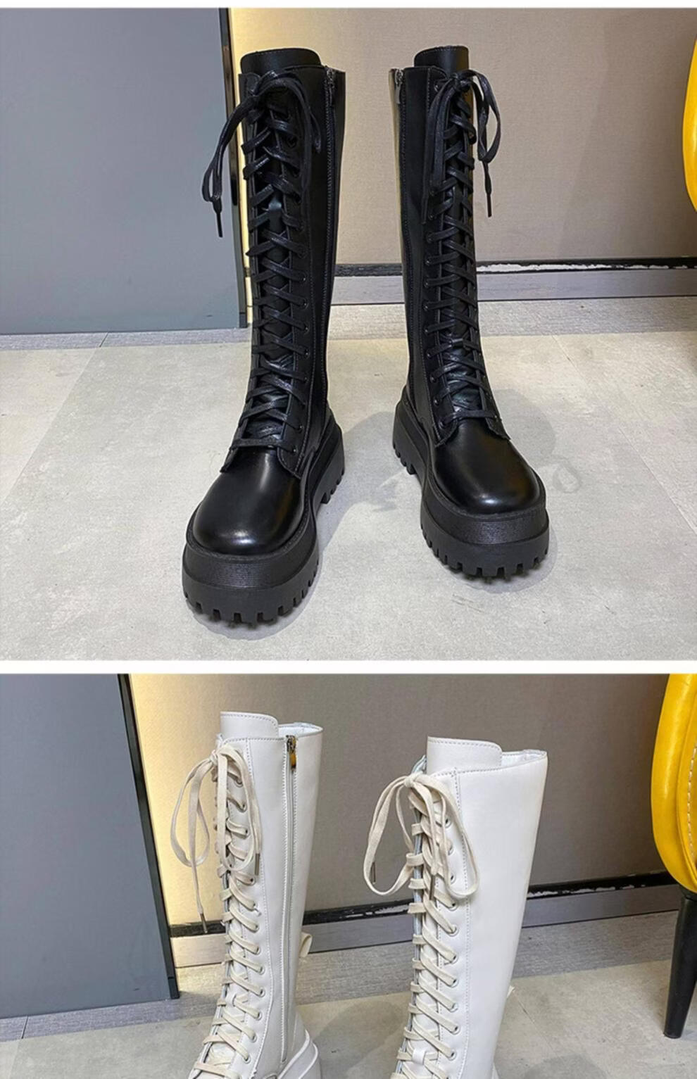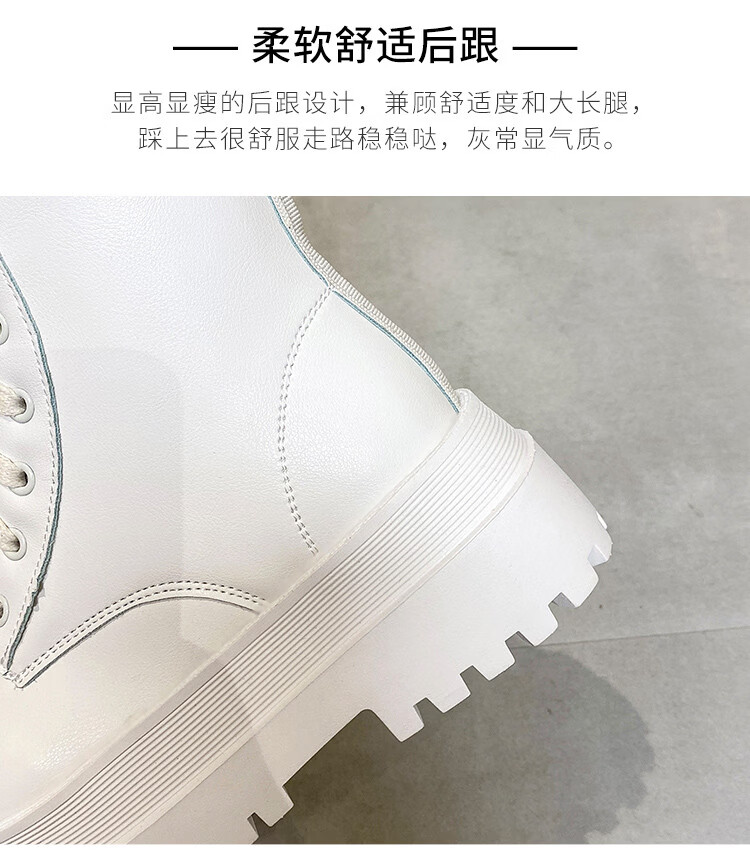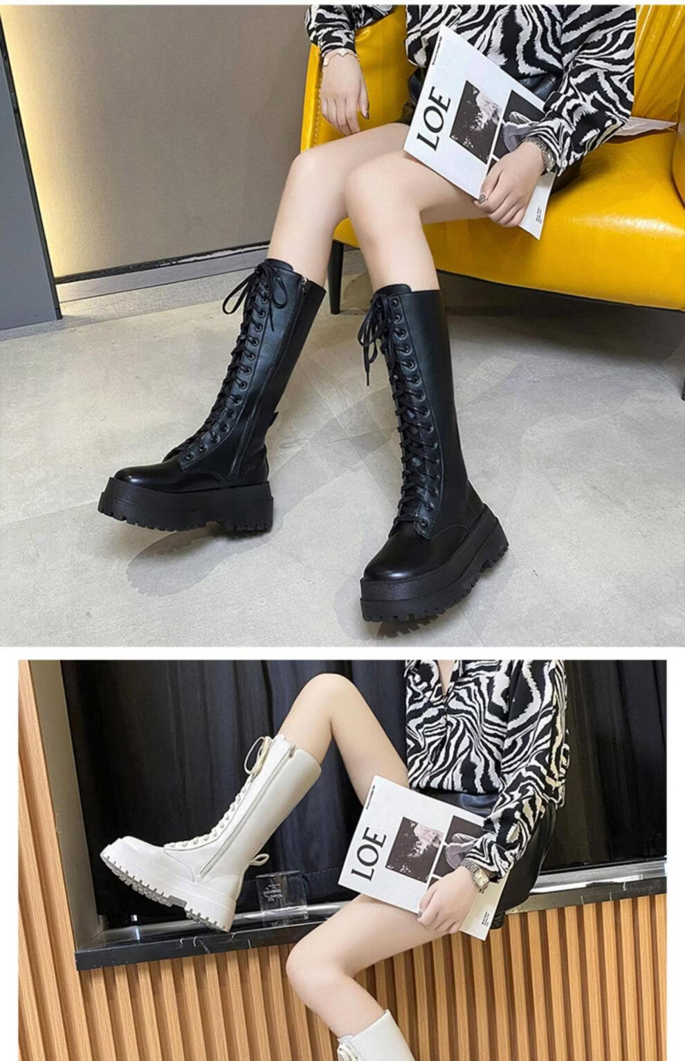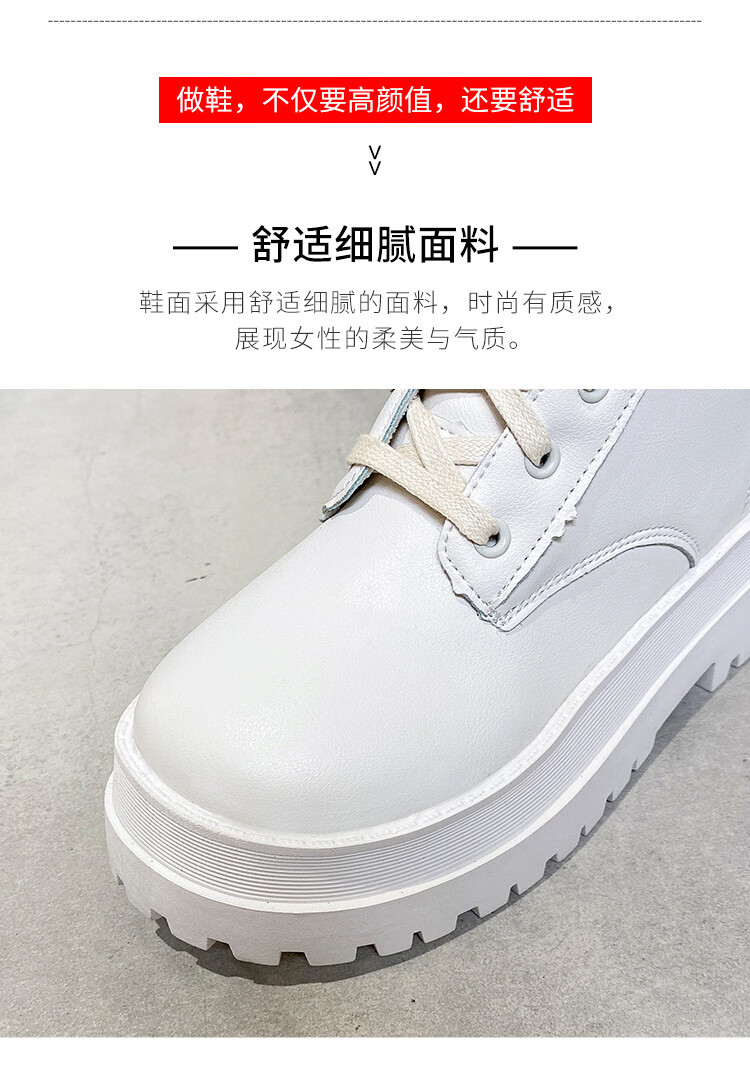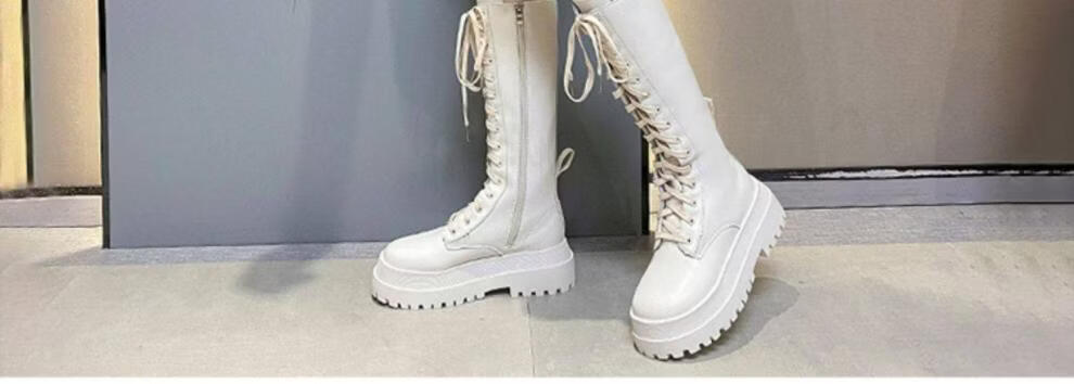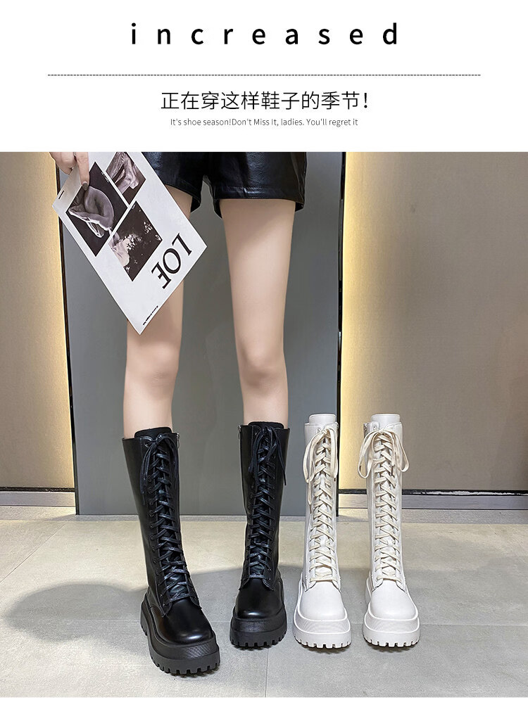稻草人(MEXICAN)骑士靴女2026新款秋冬厚底小个子中长筒加绒马丁靴高筒白色机车靴 米白色 35