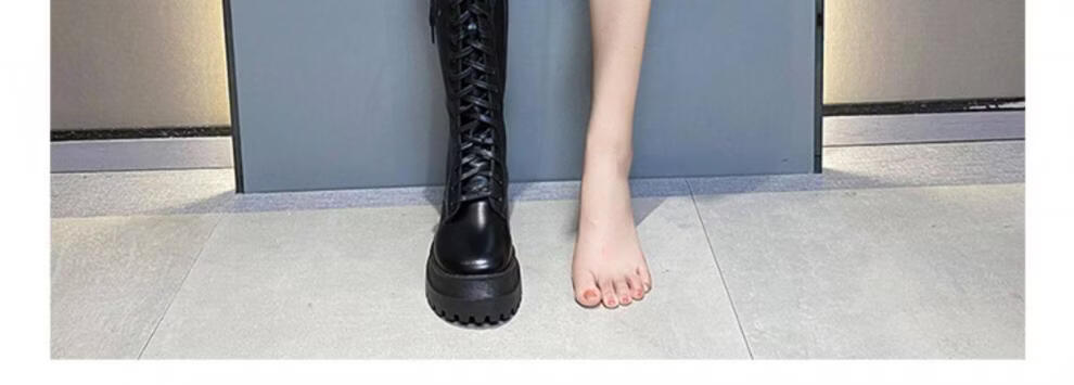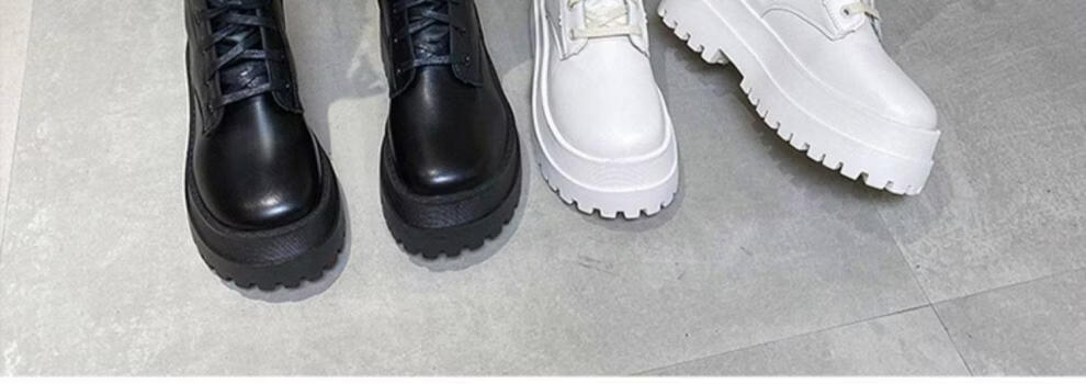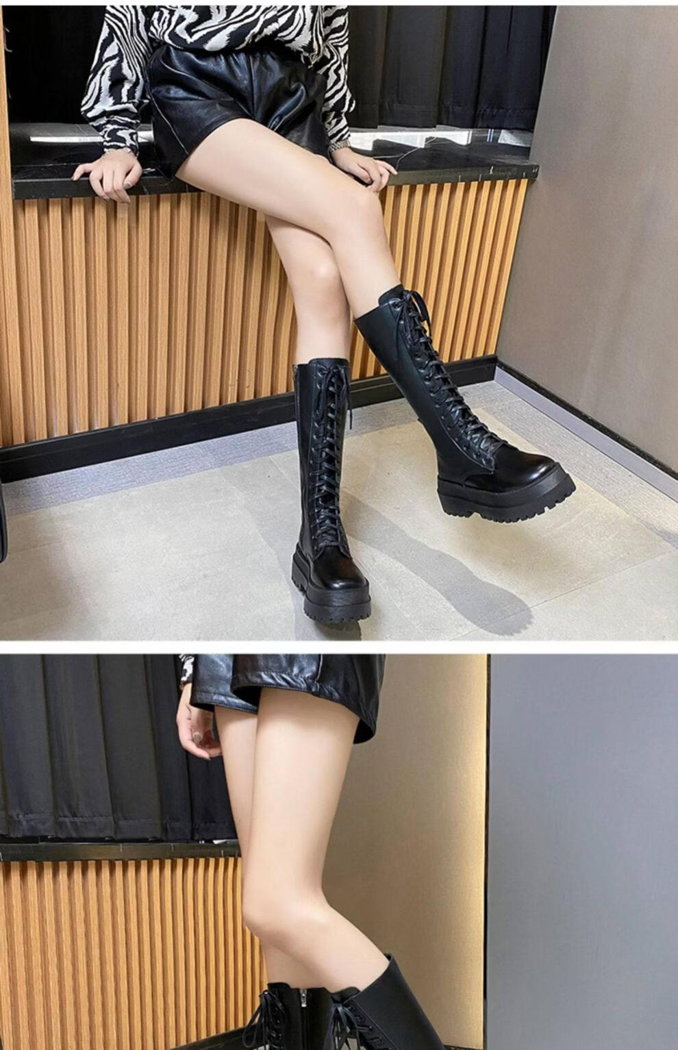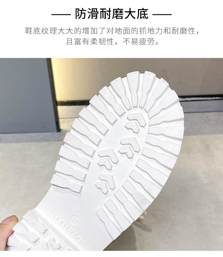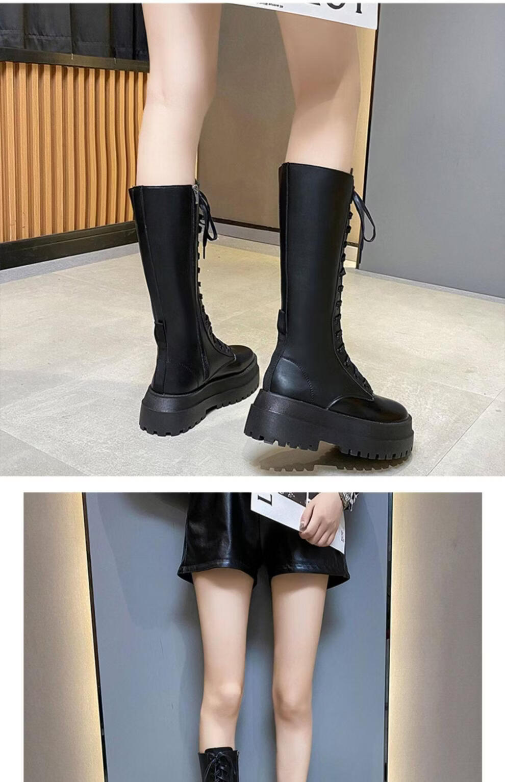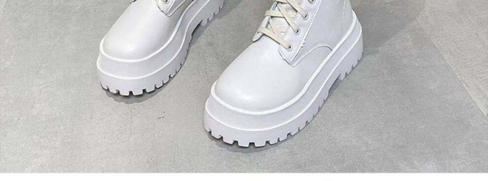 稻草人(MEXICAN)骑士靴女2026新款秋冬厚底小个子中长筒加绒马丁靴高筒白色机车靴 米白色 35