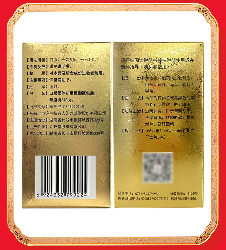 九芝堂六味地黄丸(浓缩丸) 618丸*2瓶/盒*2盒补肾京东自营六味地黄丸OTC补肾阳痿早泄壮阳药头晕耳鸣潮热盗汗