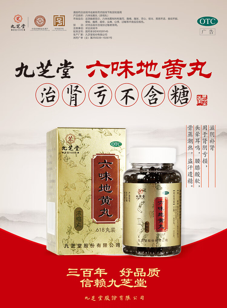 九芝堂六味地黄丸浓缩丸618丸*3盒补肾京东自营六味地黄丸OTC补肾强身阳痿早泄壮阳药 头晕耳鸣潮热盗汗
