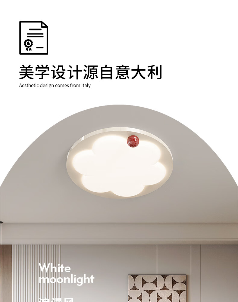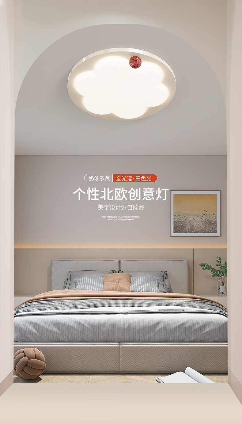 卡伯森主卧室吸顶灯设计师款创意男孩女孩儿童房间灯全光谱护眼书房灯 奶白色-直径40cm【三色变光】