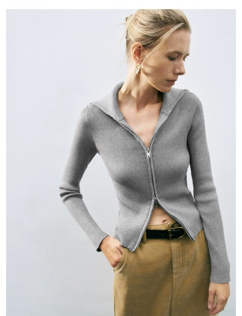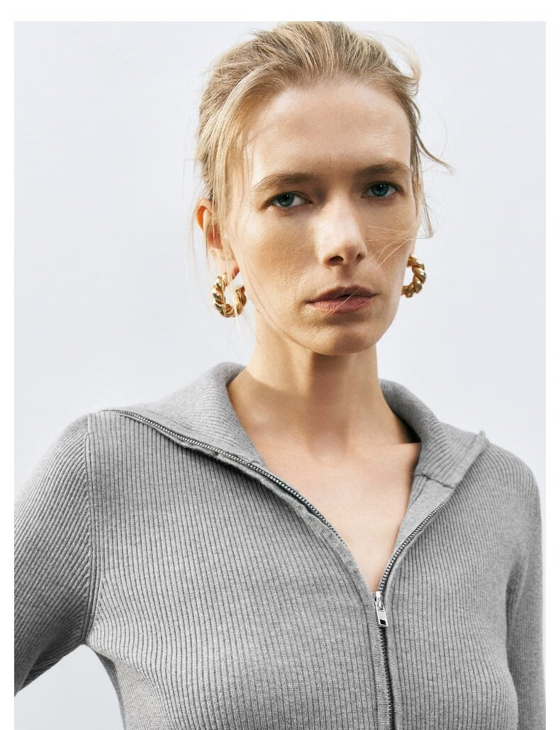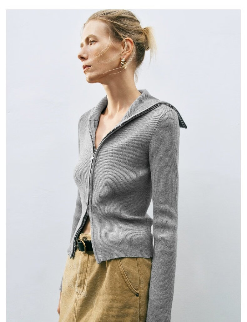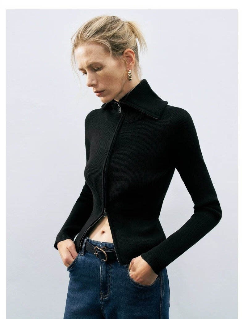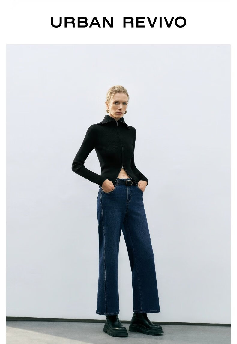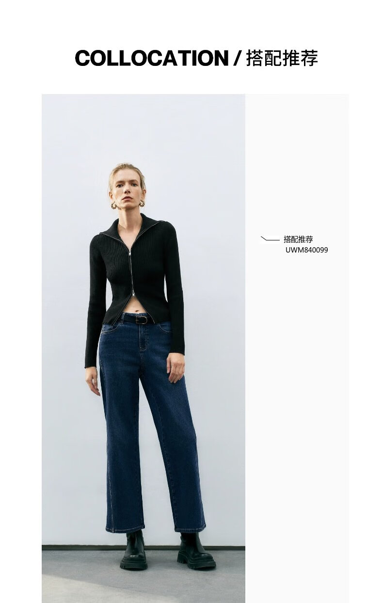 UR2025春季新款女装时尚复古设计感修身立领针织衫UWM950022