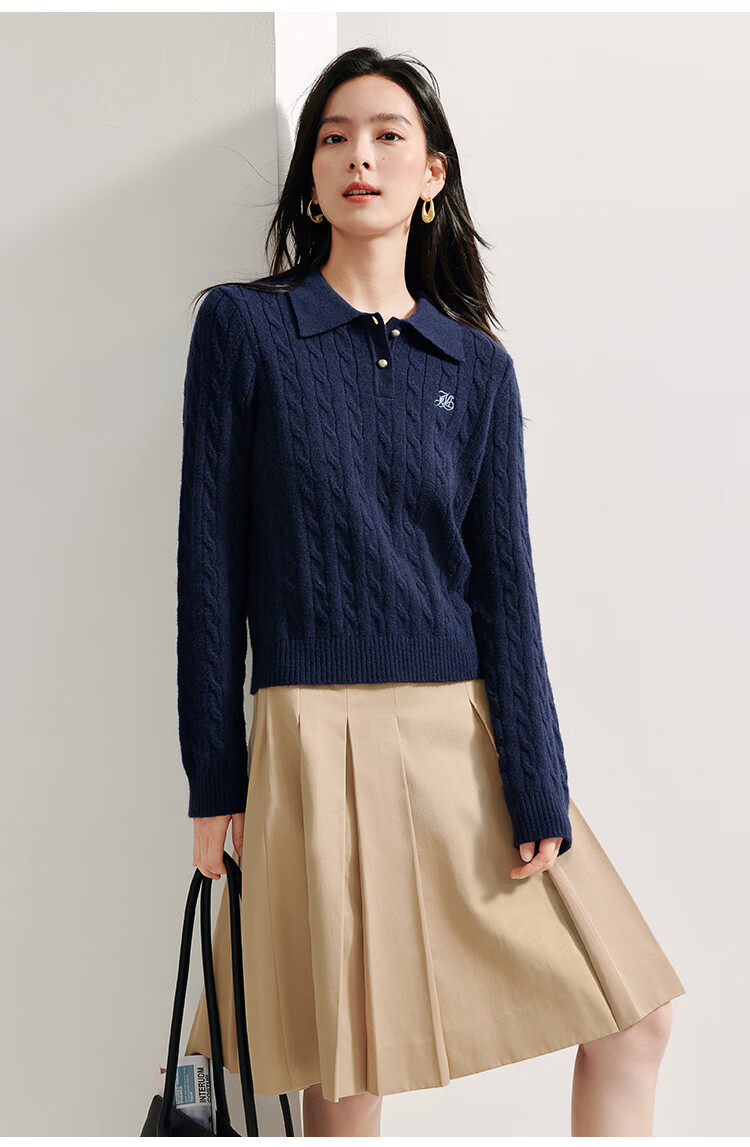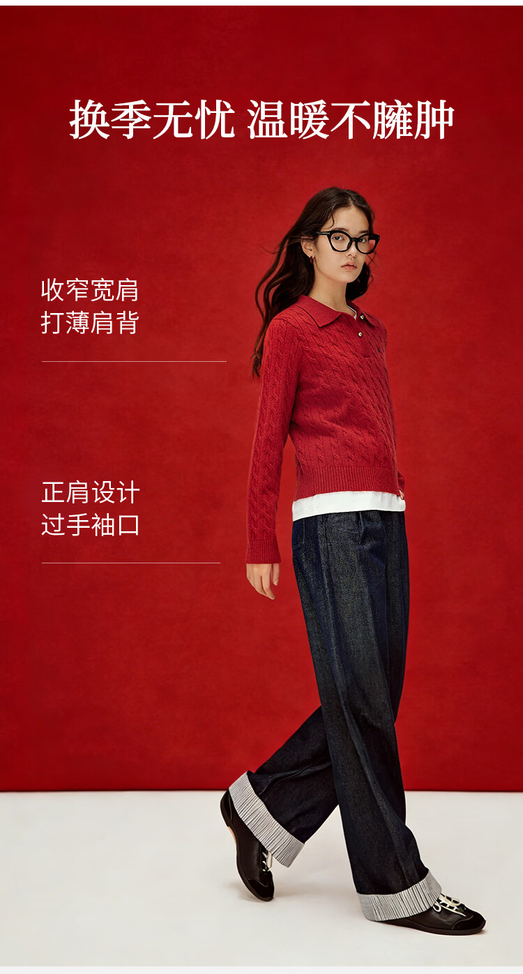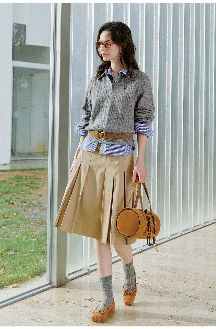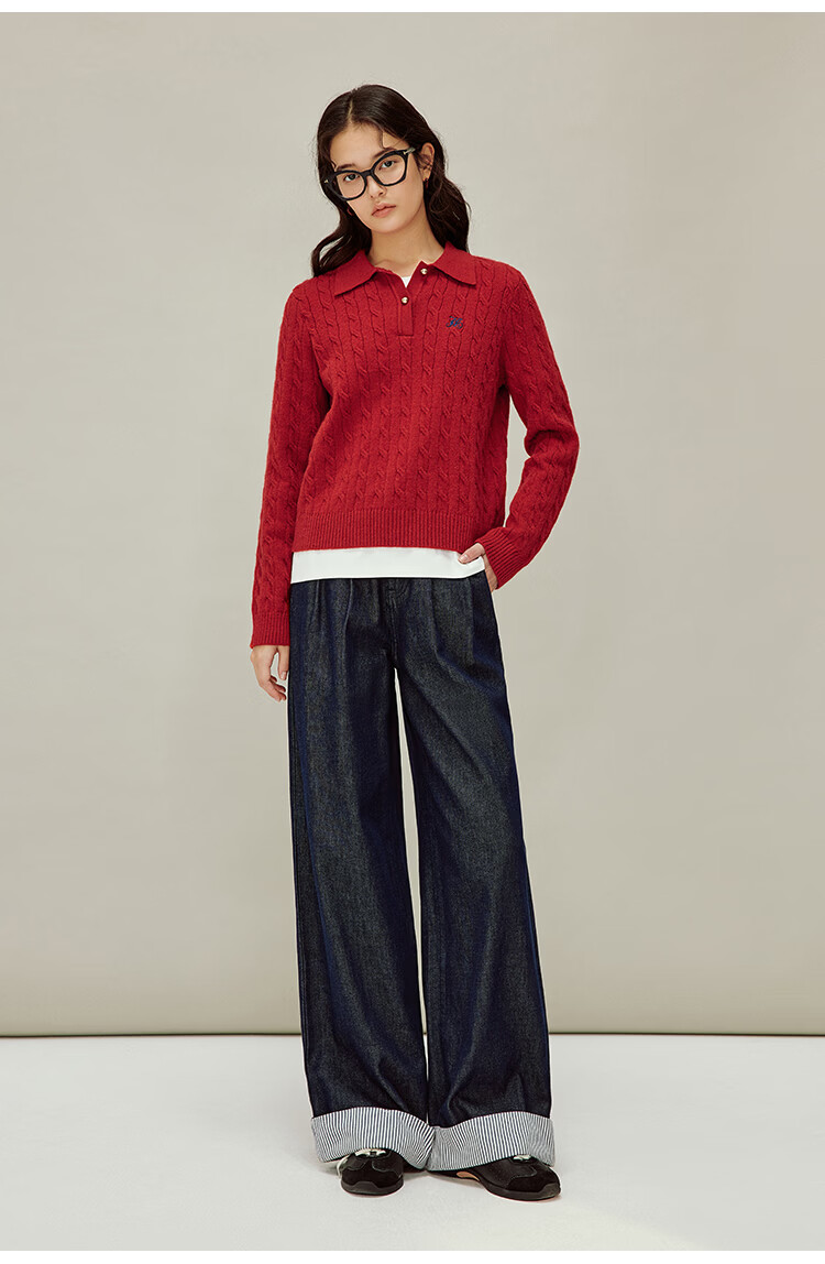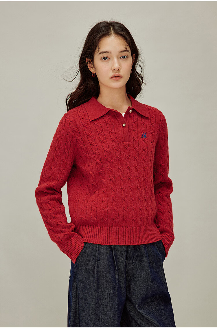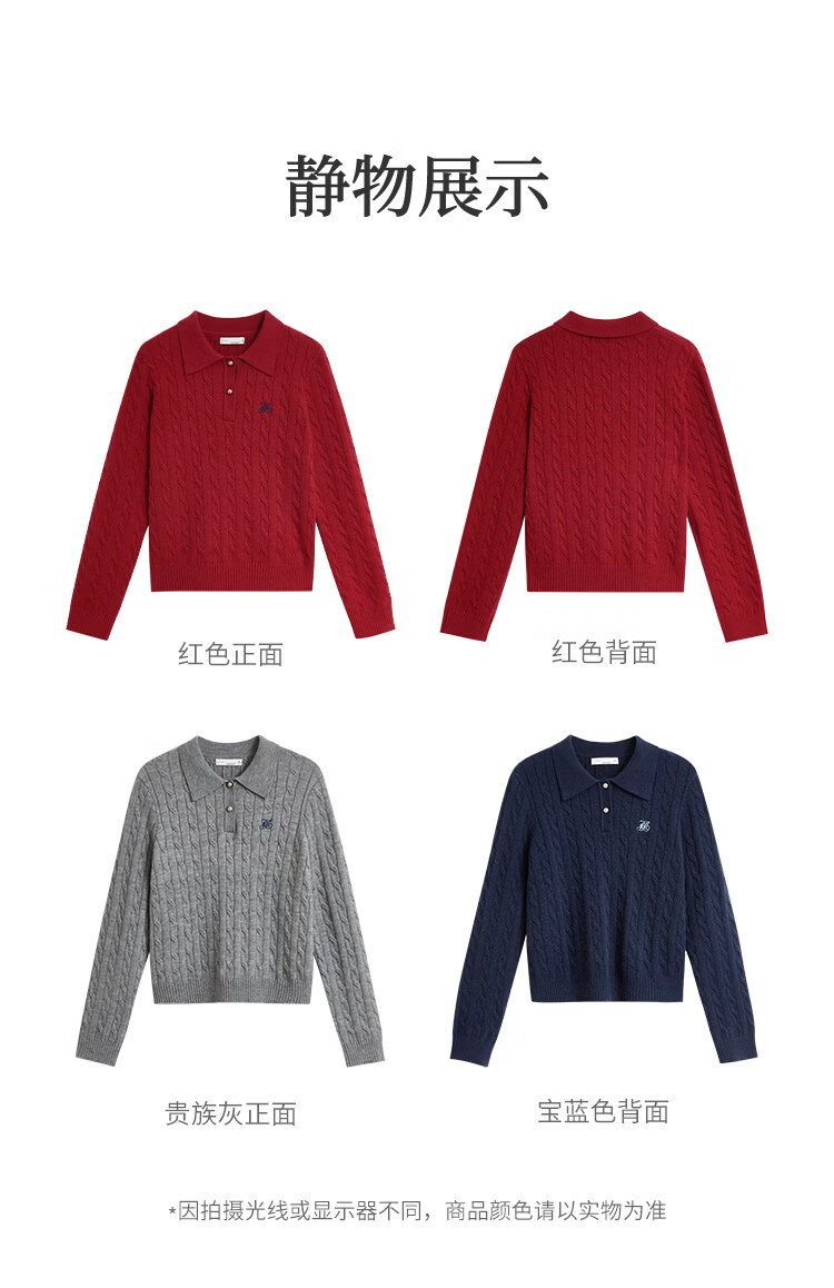 茵曼老钱风POLO领洋气针织衫秋冬女装打底长袖毛衣上衣 格调灰 M