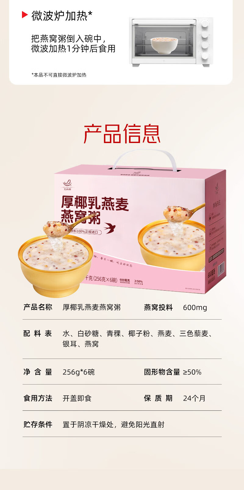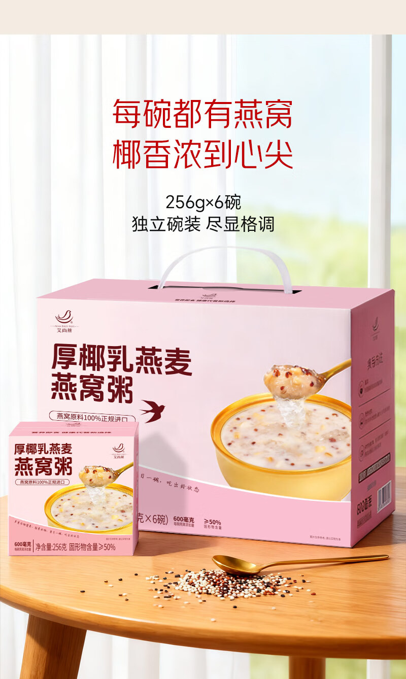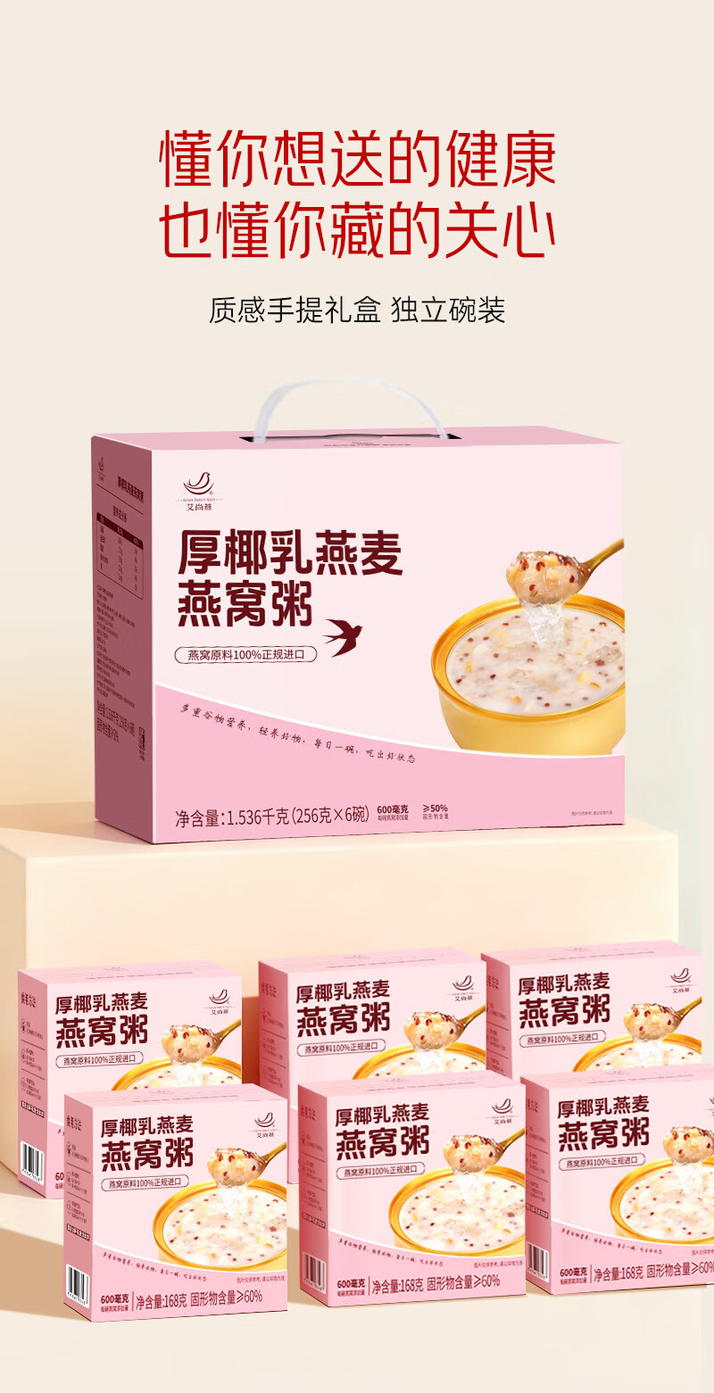 艾尚燕即食燕窝粥256g*6碗年货礼盒 礼品送礼父母长辈 老人补品营养品