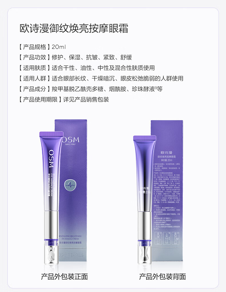 欧诗漫(OSM)珍珠御纹电动按摩眼霜20ml保湿提拉紧致淡化细纹护肤品女新年礼物