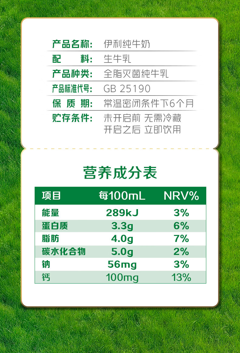 伊利纯牛奶18盒 全脂牛奶 优质乳蛋白 年货礼盒 250ml*18盒/箱