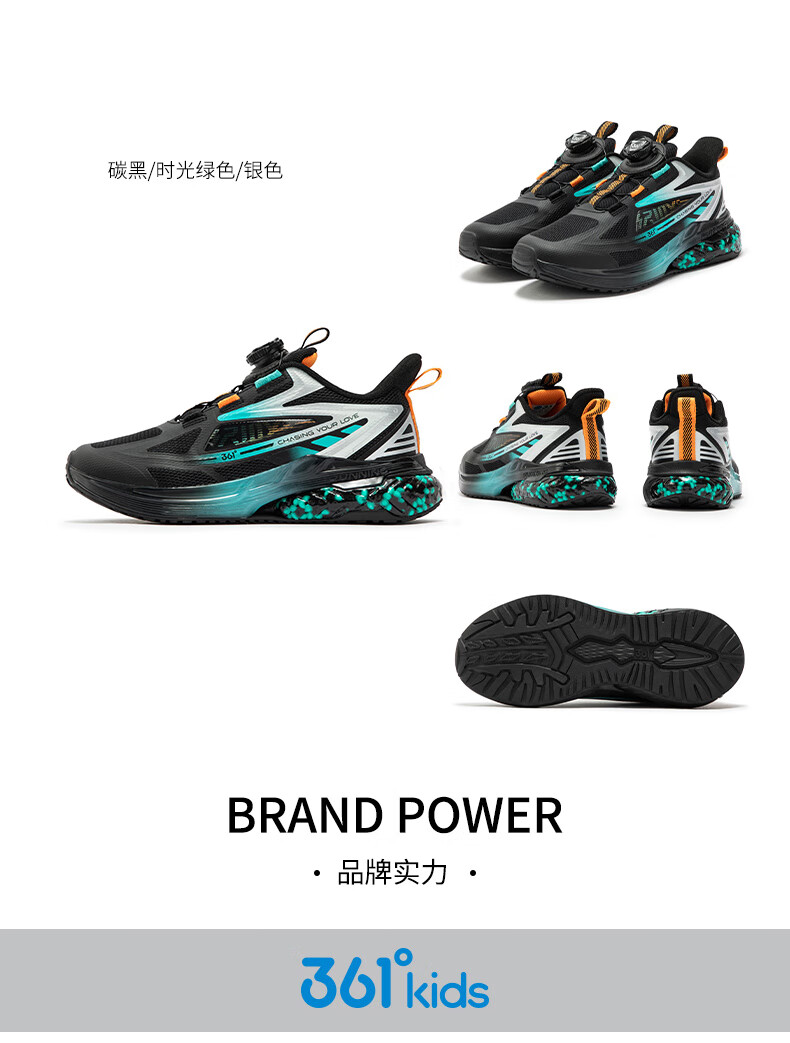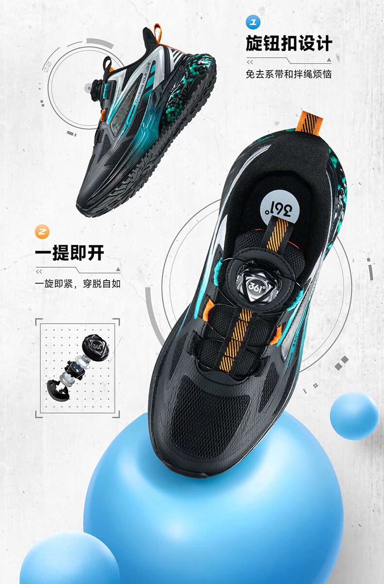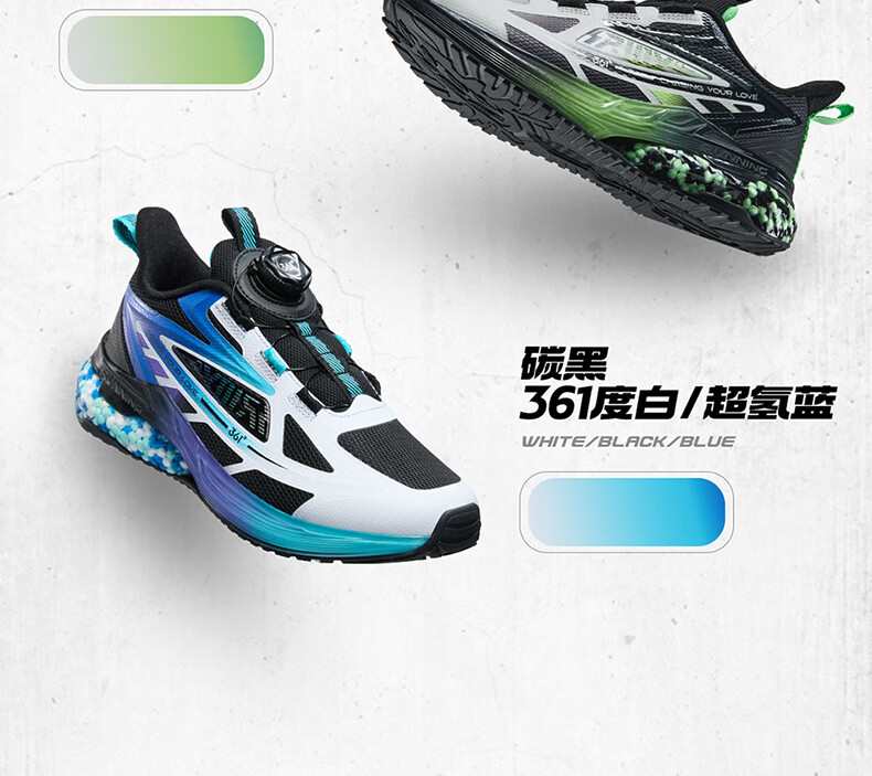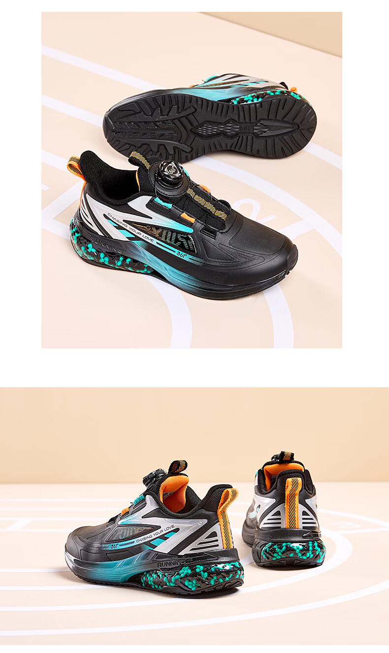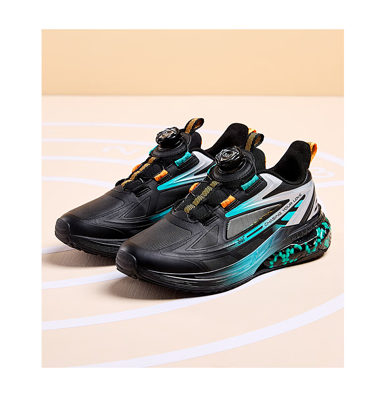 361°【商场同款】童鞋男童运动跑鞋秋冬中大童旋钮扣鞋子缓震高弹 碳黑/361度白/超氢蓝色 37