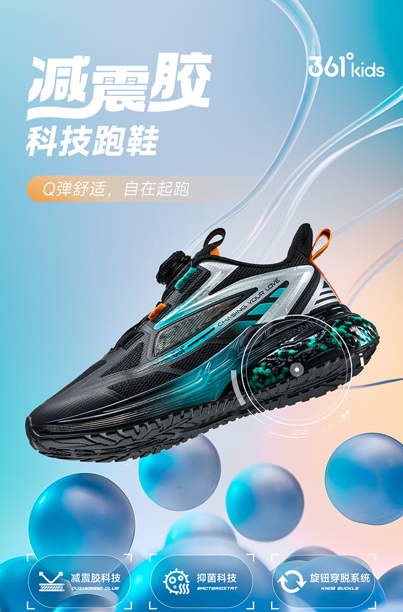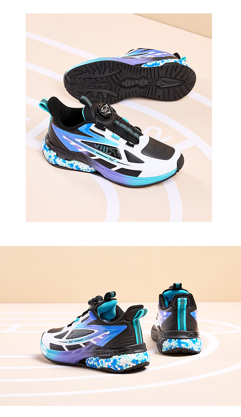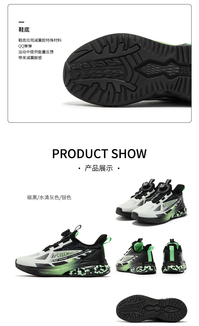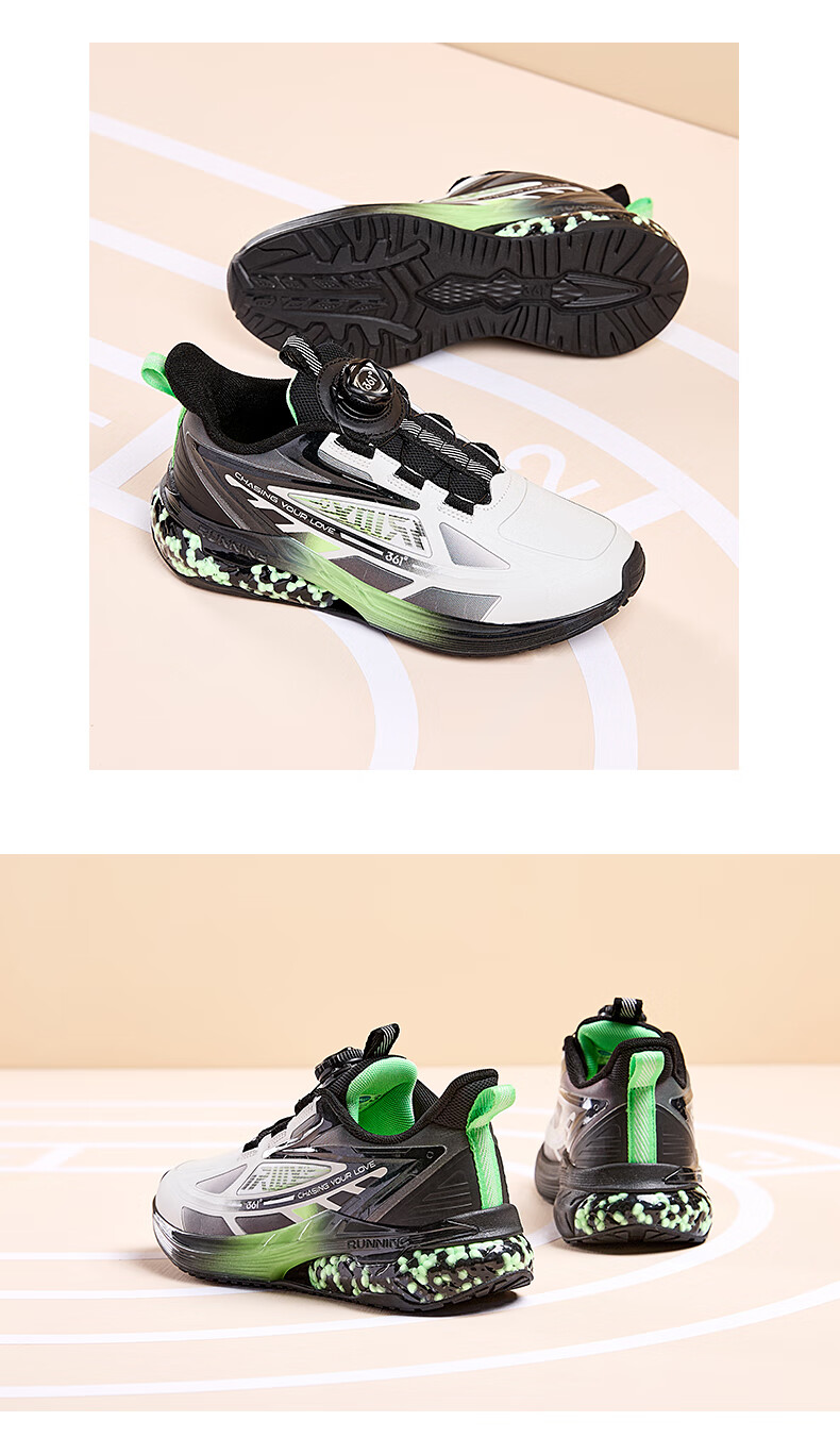 361°【商场同款】童鞋男童运动跑鞋秋冬中大童旋钮扣鞋子缓震高弹 碳黑/361度白/超氢蓝色 37