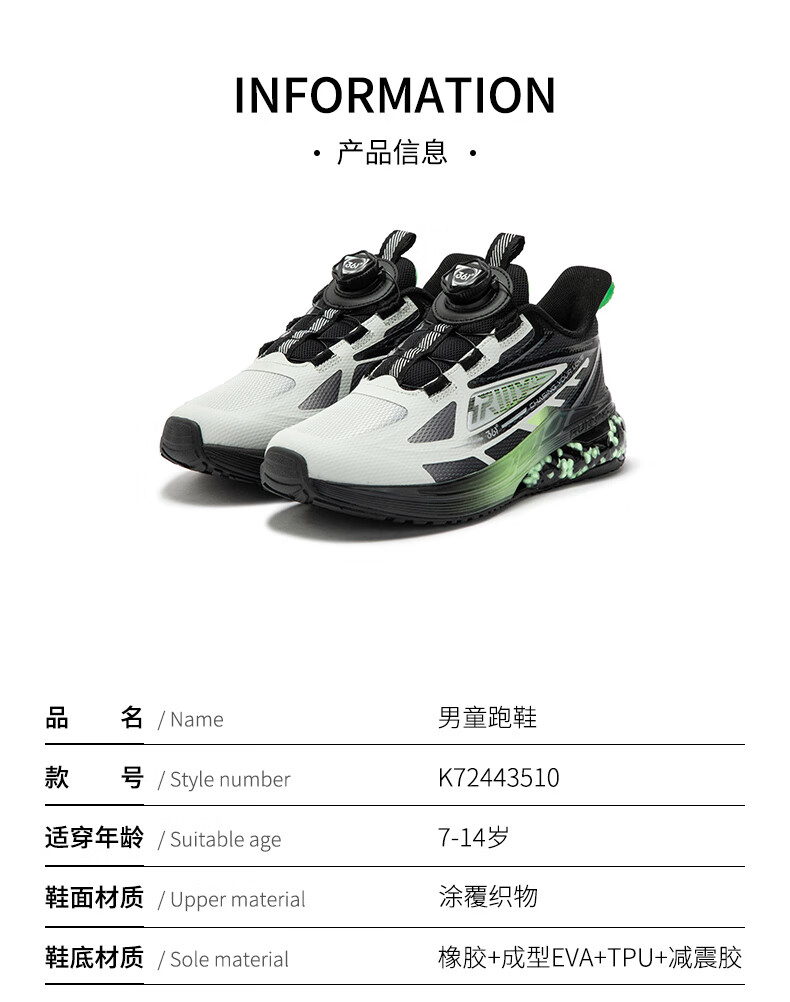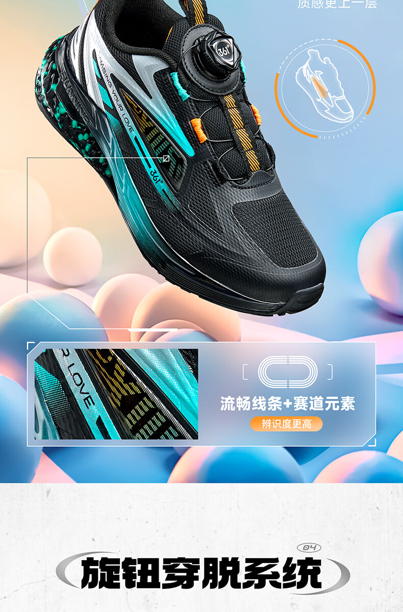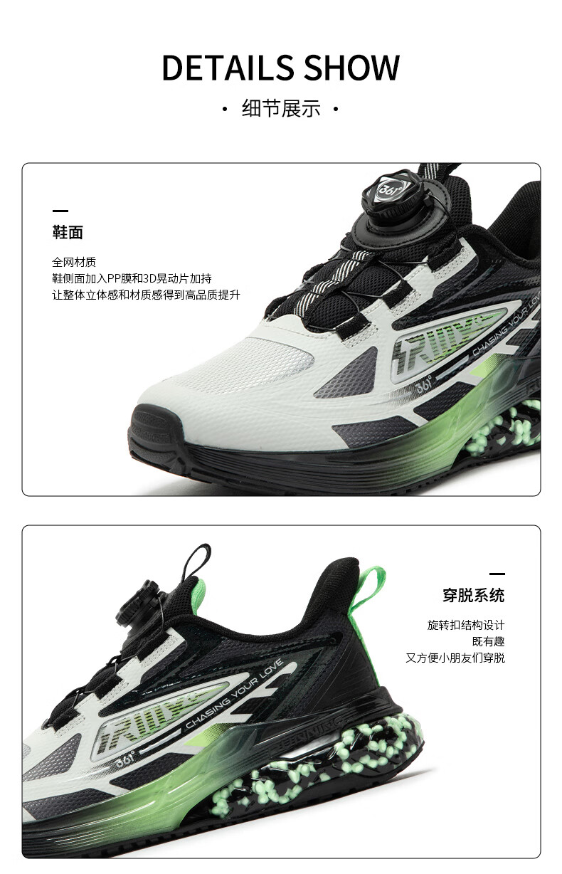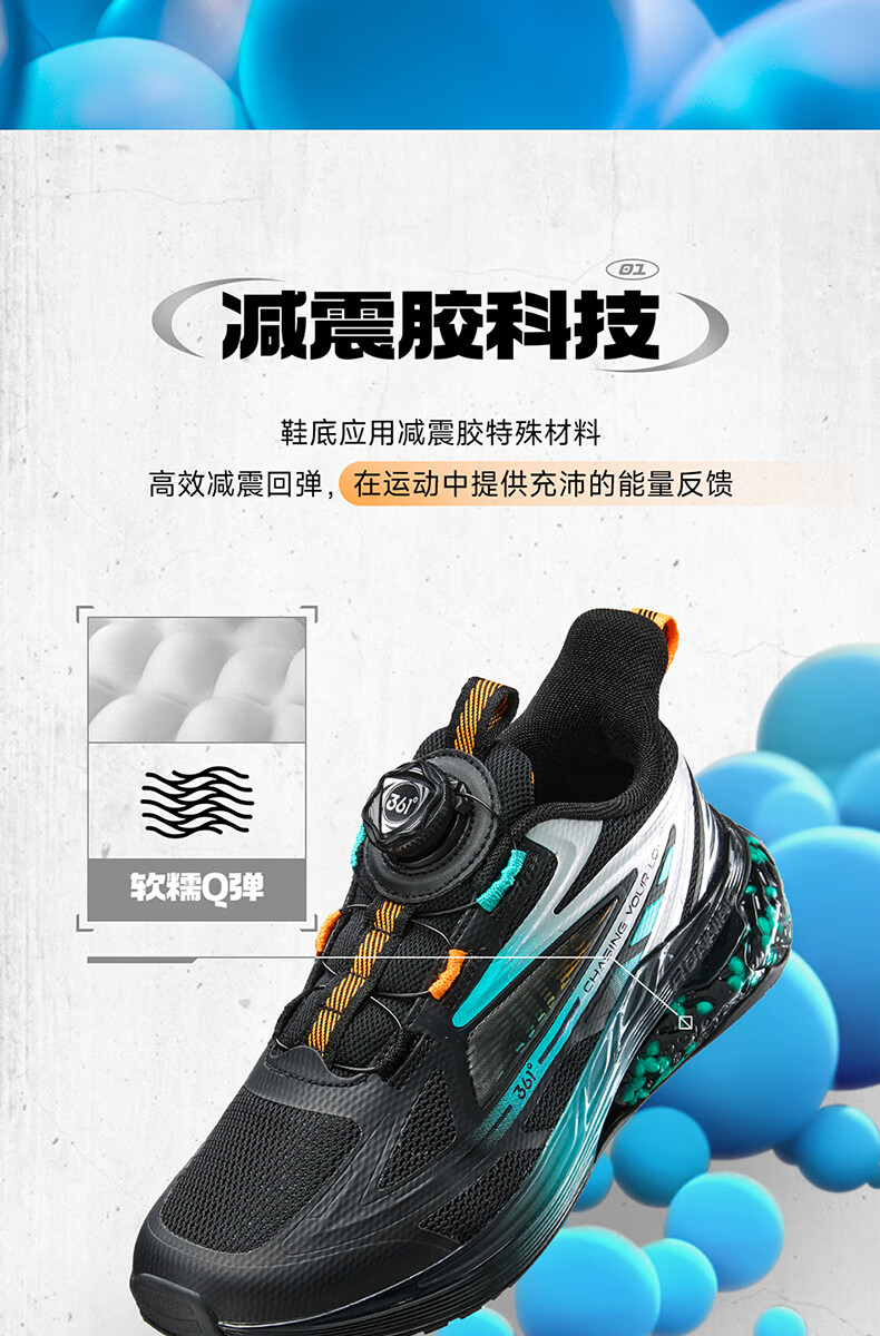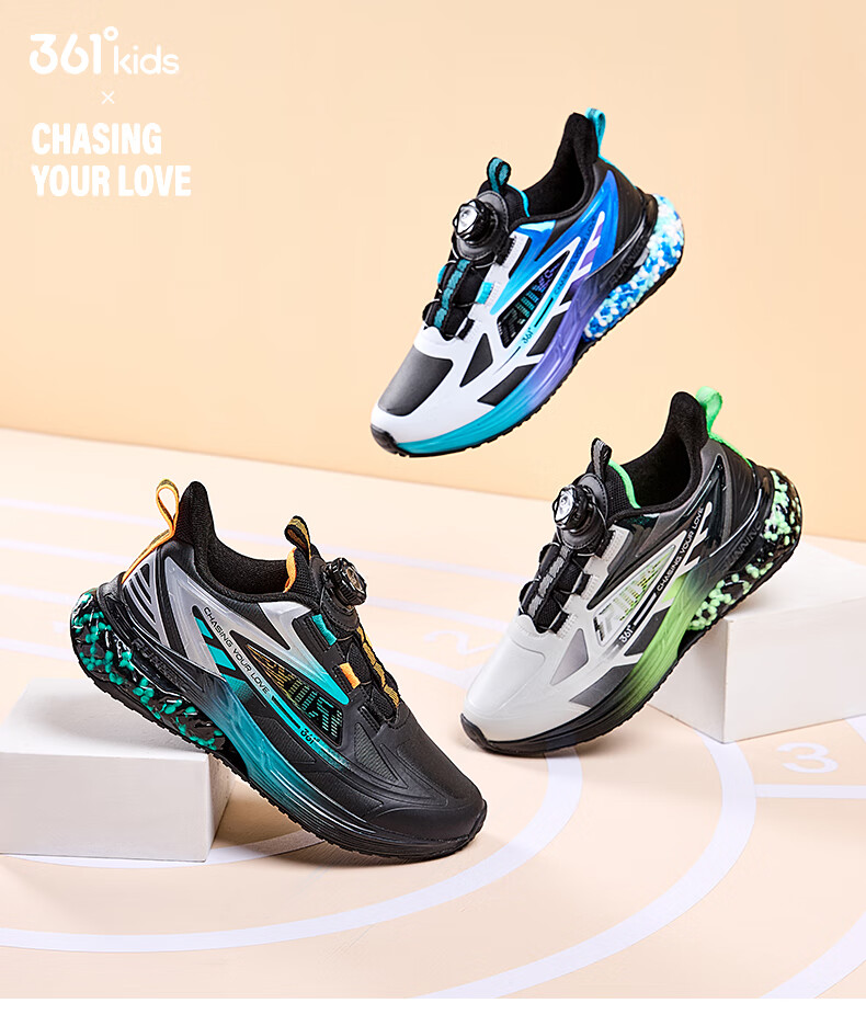 361°【商场同款】童鞋男童运动跑鞋秋冬中大童旋钮扣鞋子缓震高弹 碳黑/361度白/超氢蓝色 37