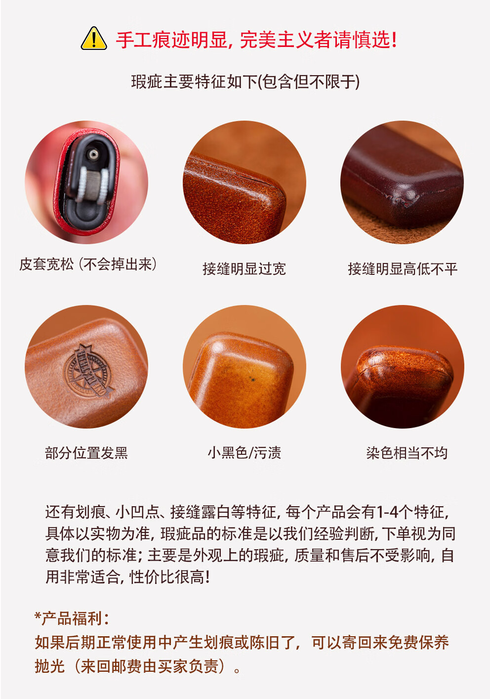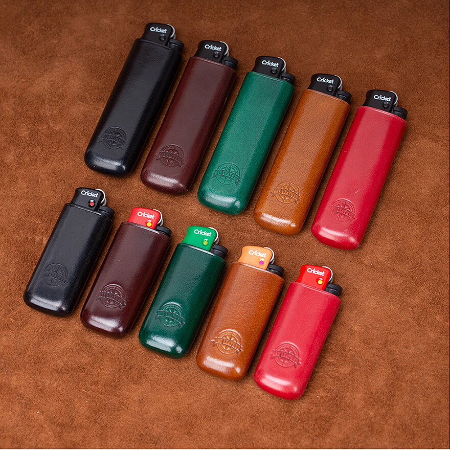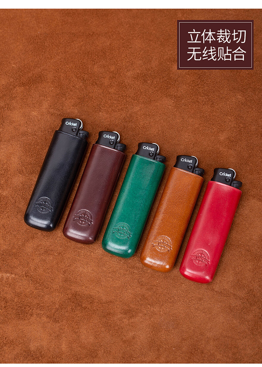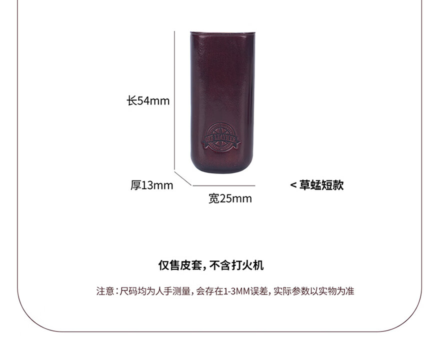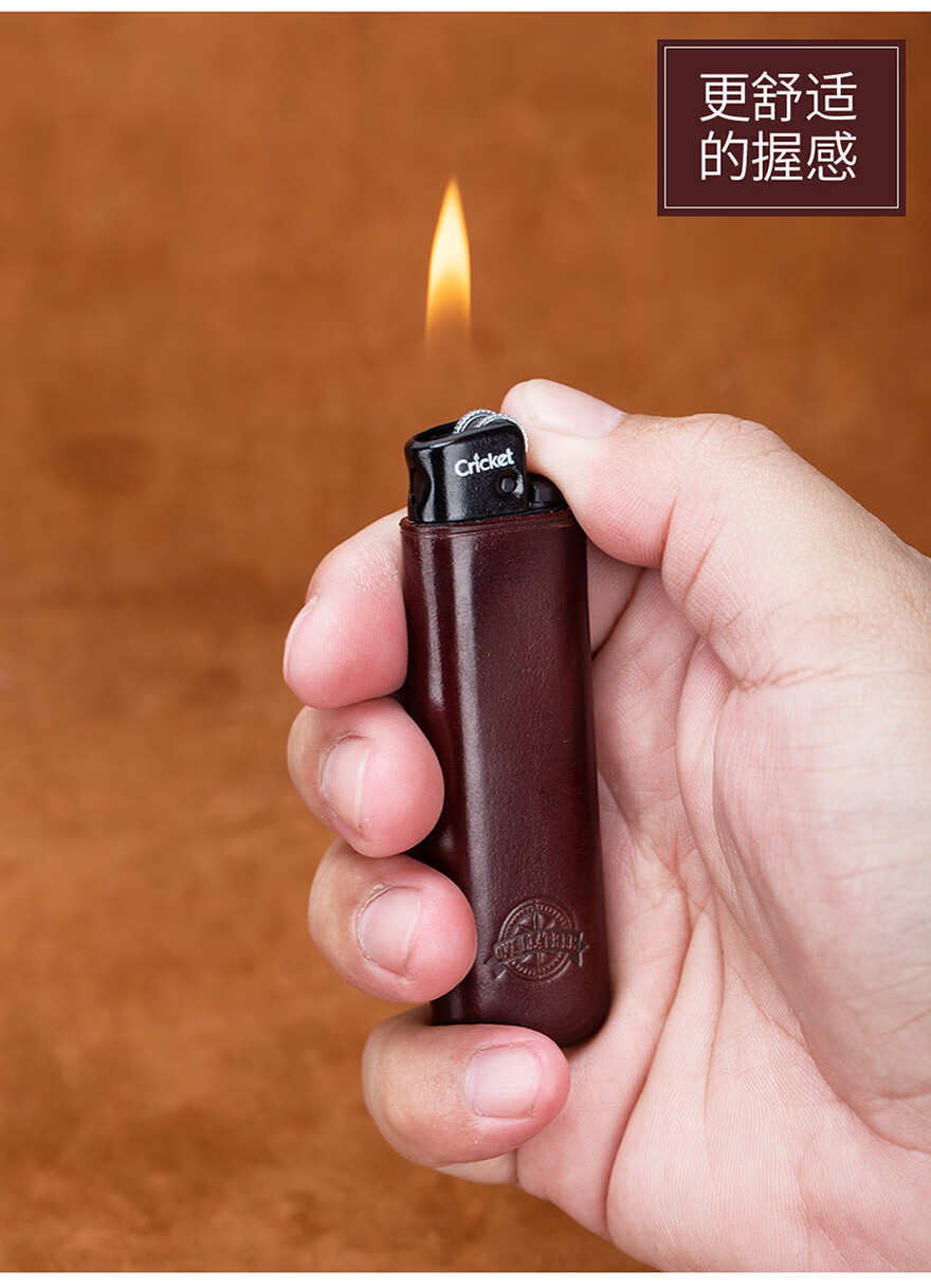 一皮(ONE LEATHER)草蜢cricket打火机皮套无边距手工真皮个性创意复古 【微瑕疵品】 长款-酒红色(不含打火机)