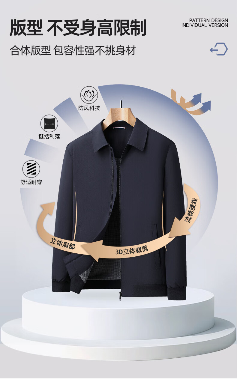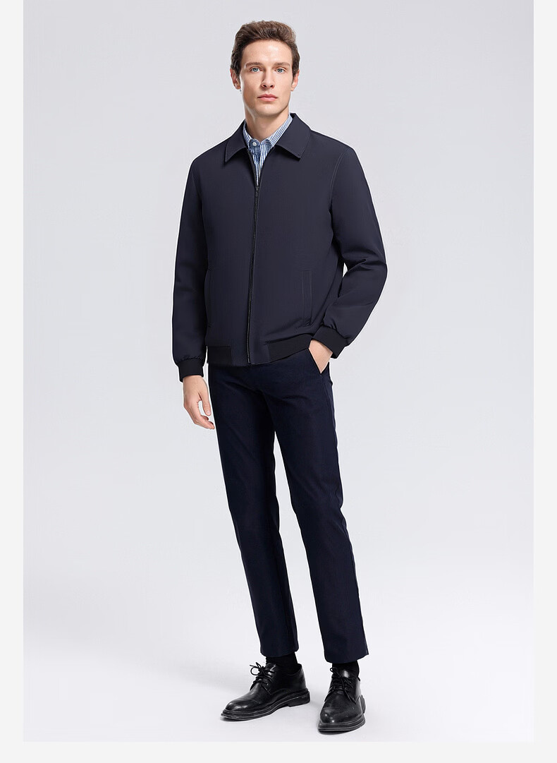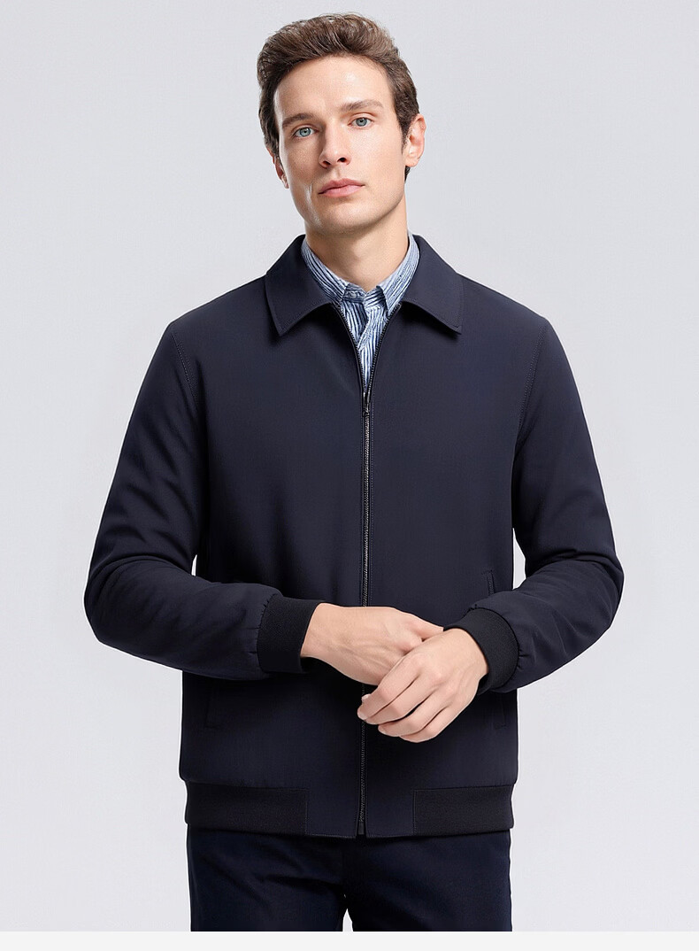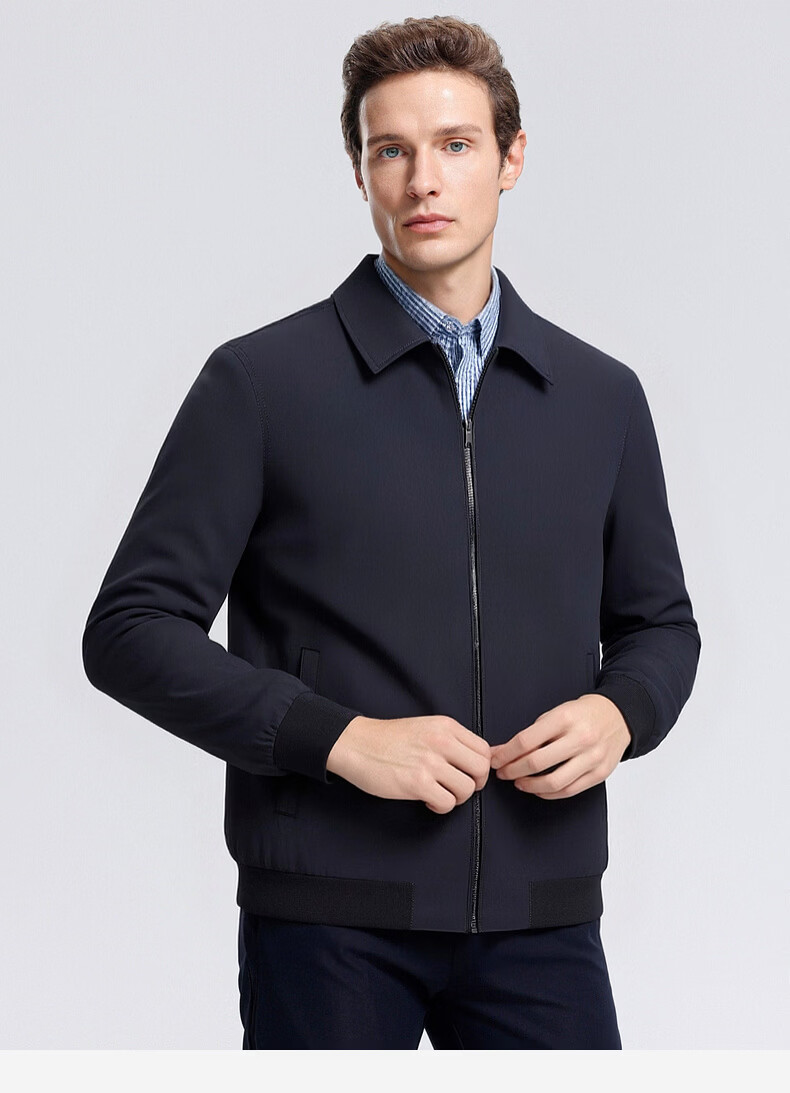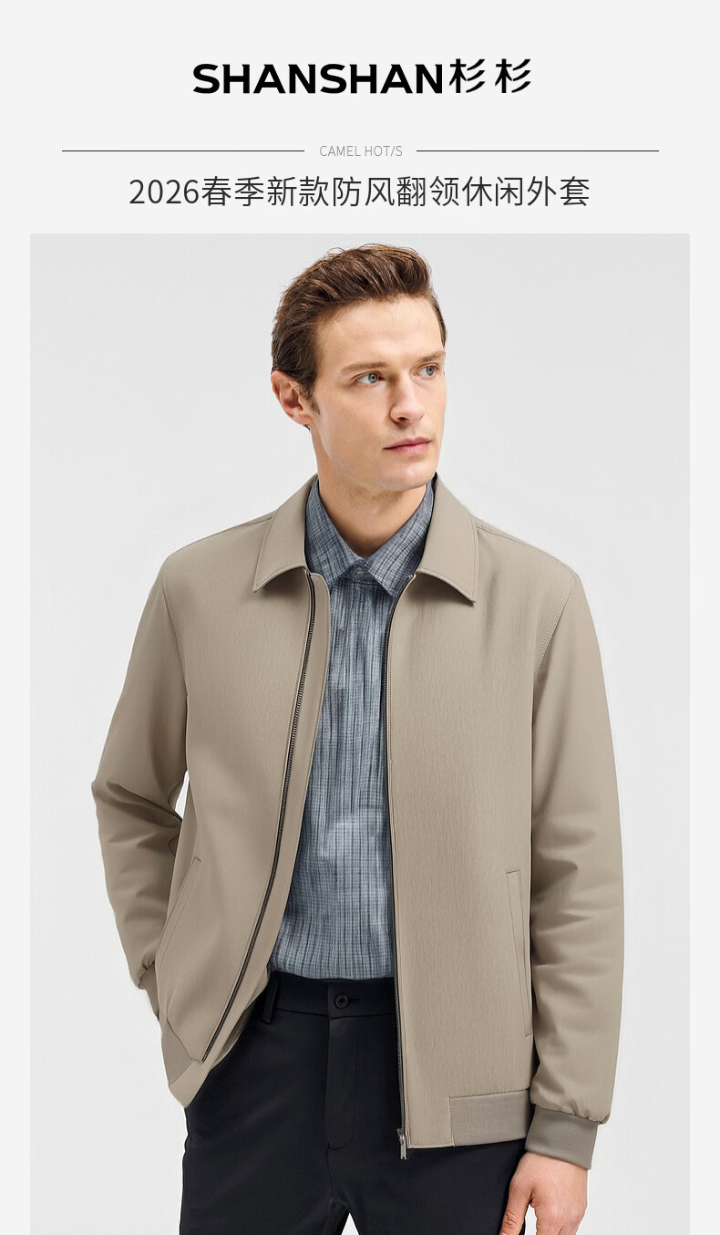 SHANSHAN杉杉男士夹克2026春季新款长袖防风上衣翻领休闲百搭中青年外套 藏青色 2XL /185
