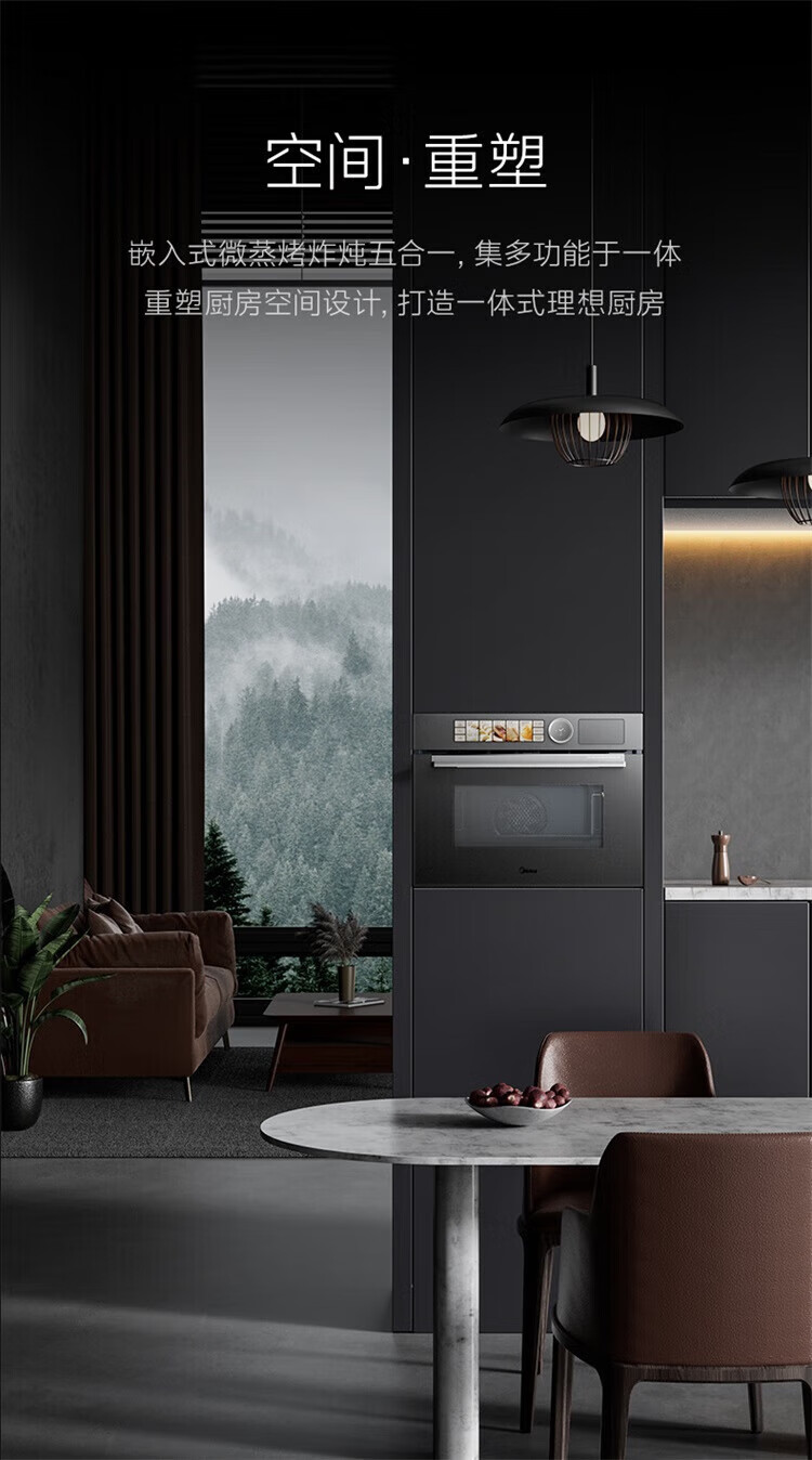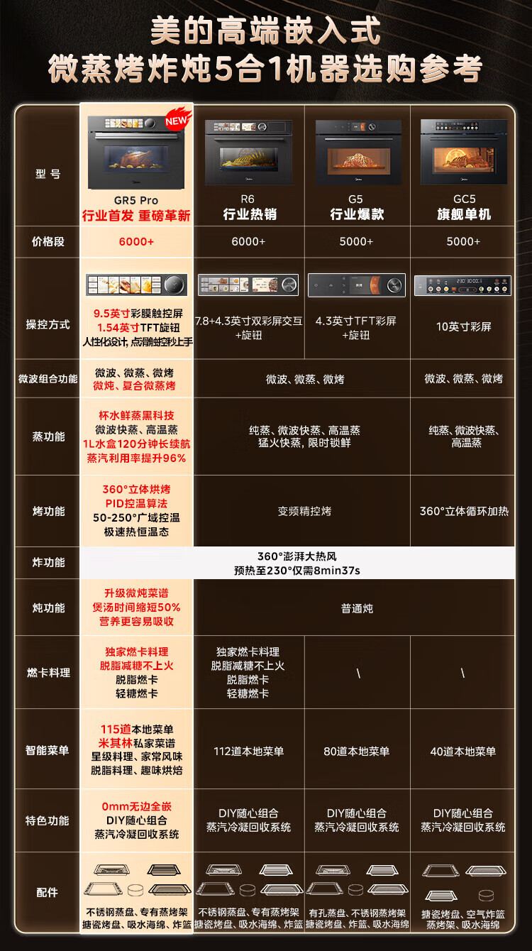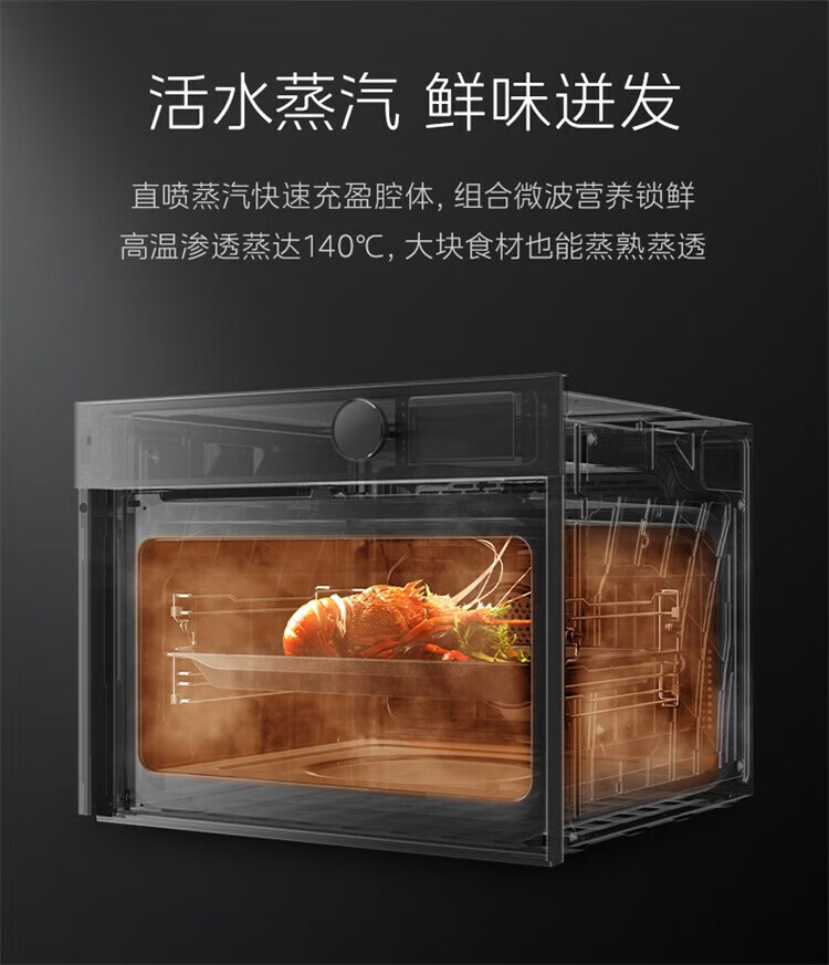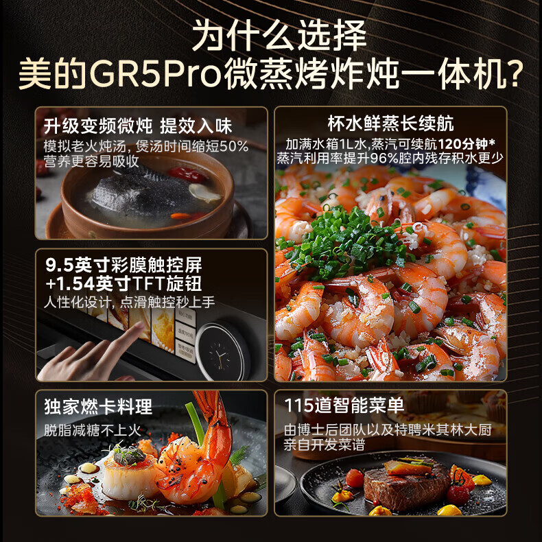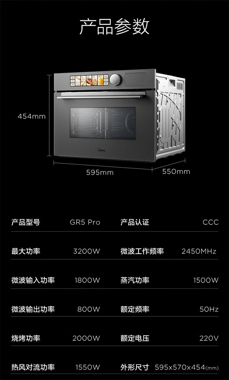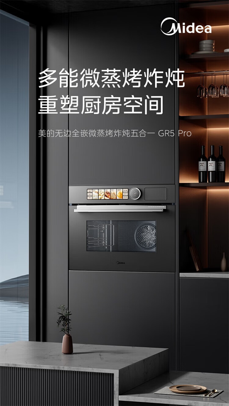 美的知味GR5pro无边全嵌微蒸烤炸炖5合1 嵌入式微蒸烤箱一体机杯水鲜蒸 旋转屏触控彩屏55L 嵌入式微蒸烤炸炖5合一体机
