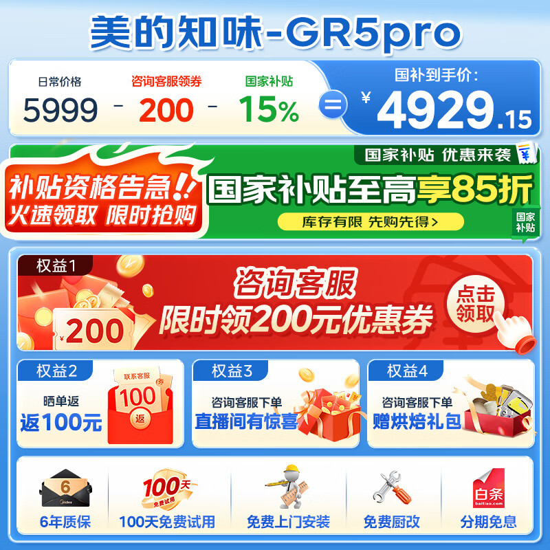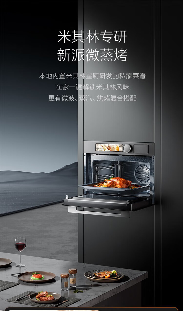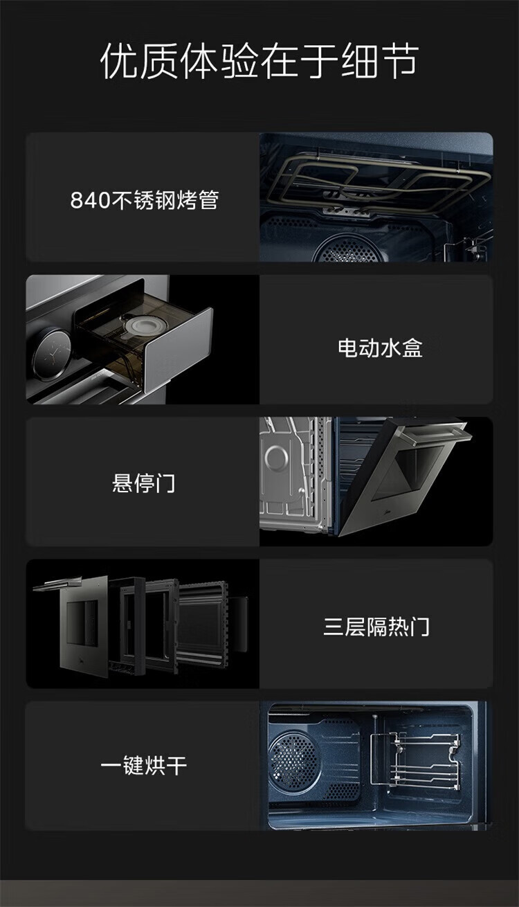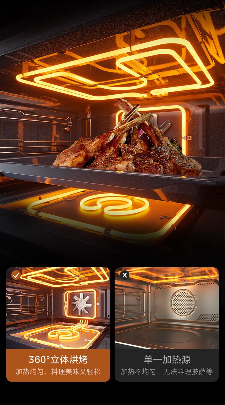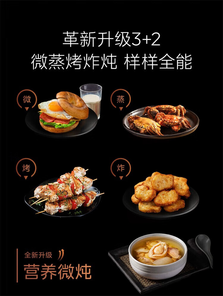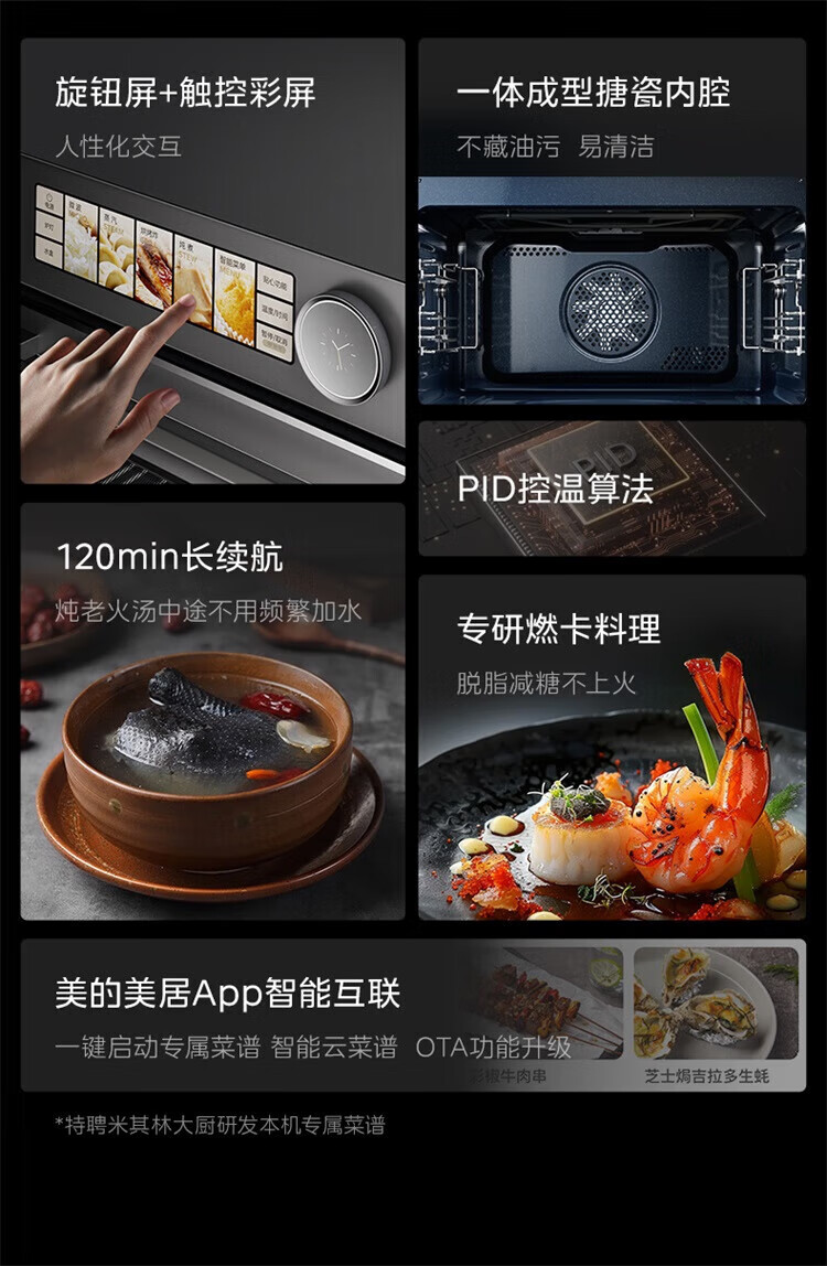 美的知味GR5pro无边全嵌微蒸烤炸炖5合1 嵌入式微蒸烤箱一体机杯水鲜蒸 旋转屏触控彩屏55L 嵌入式微蒸烤炸炖5合一体机