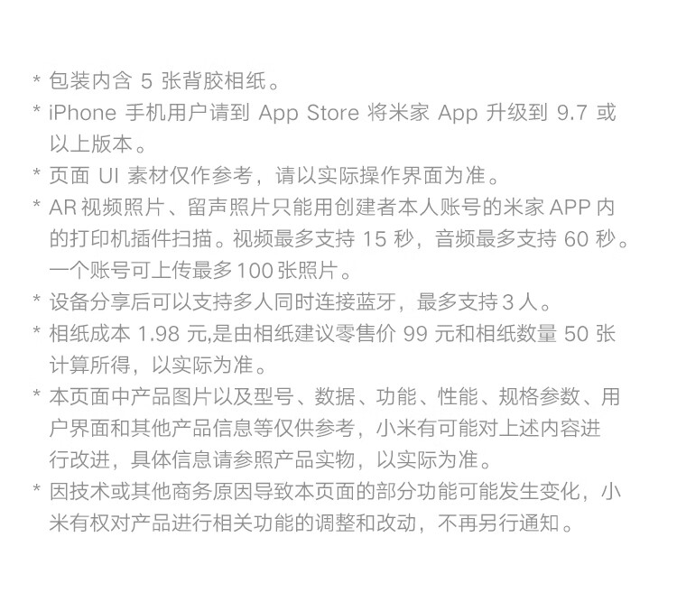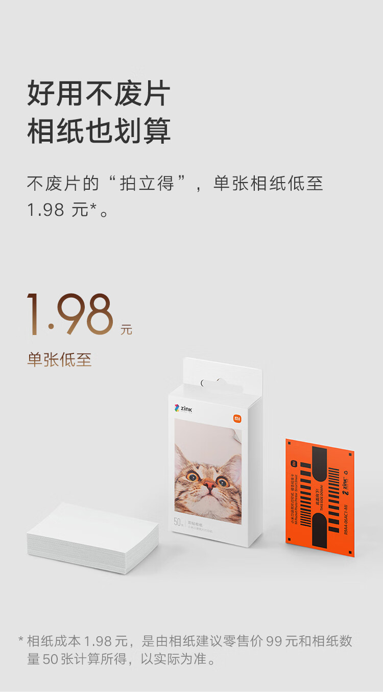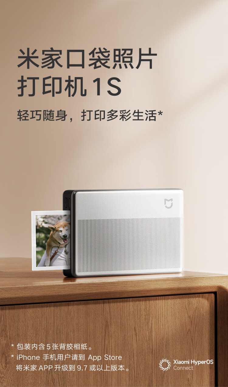 小米 米家口袋照片打印机1S AR视频照片 趣玩打印 拍立得 随身拍