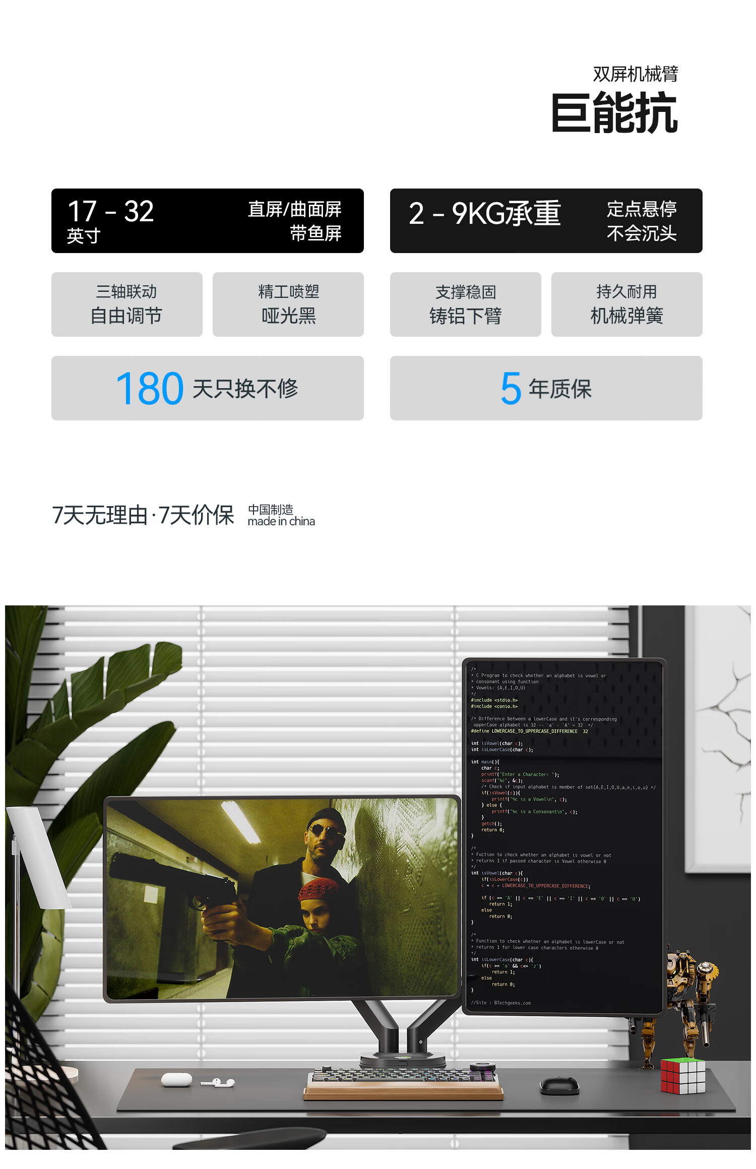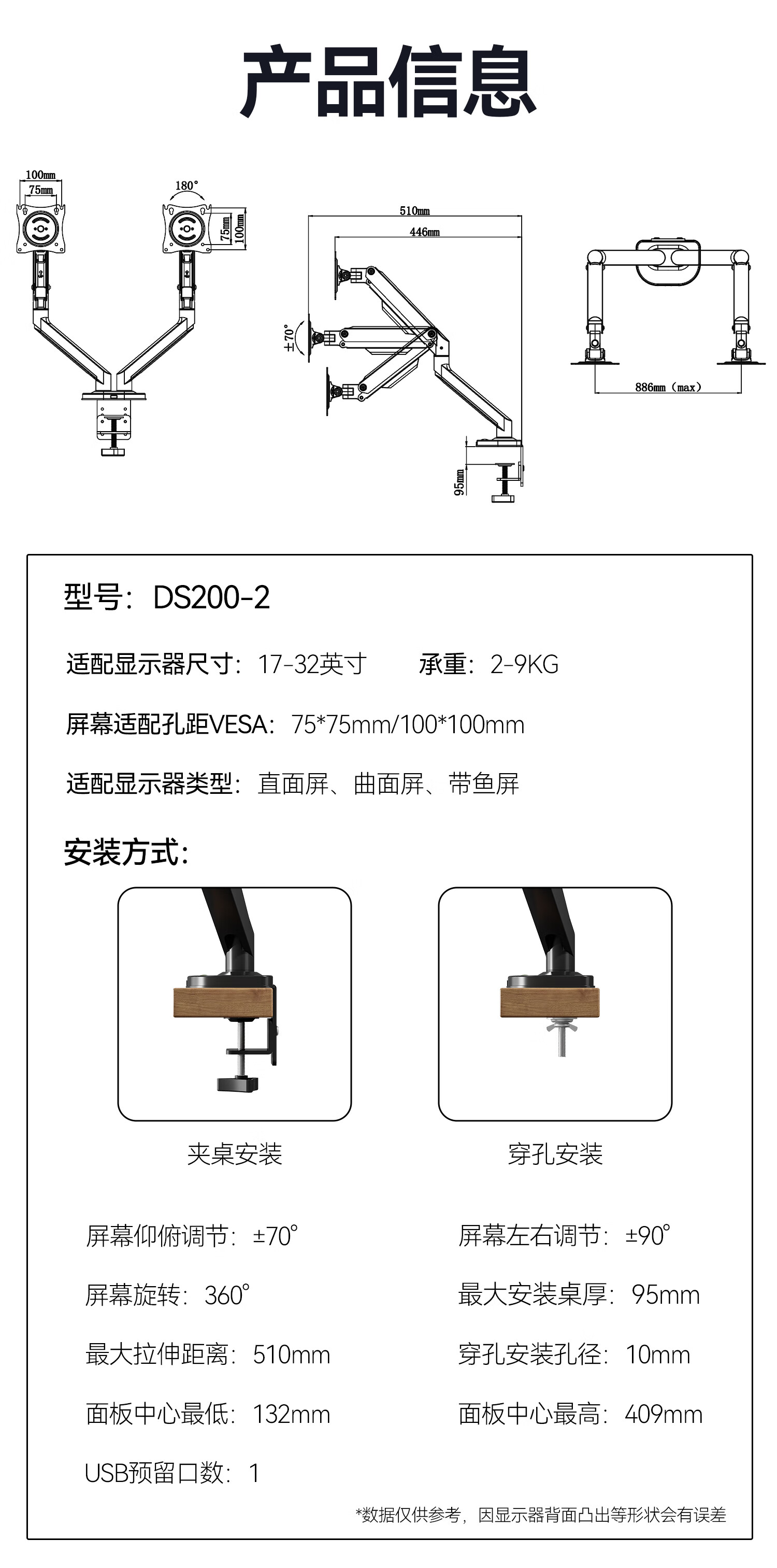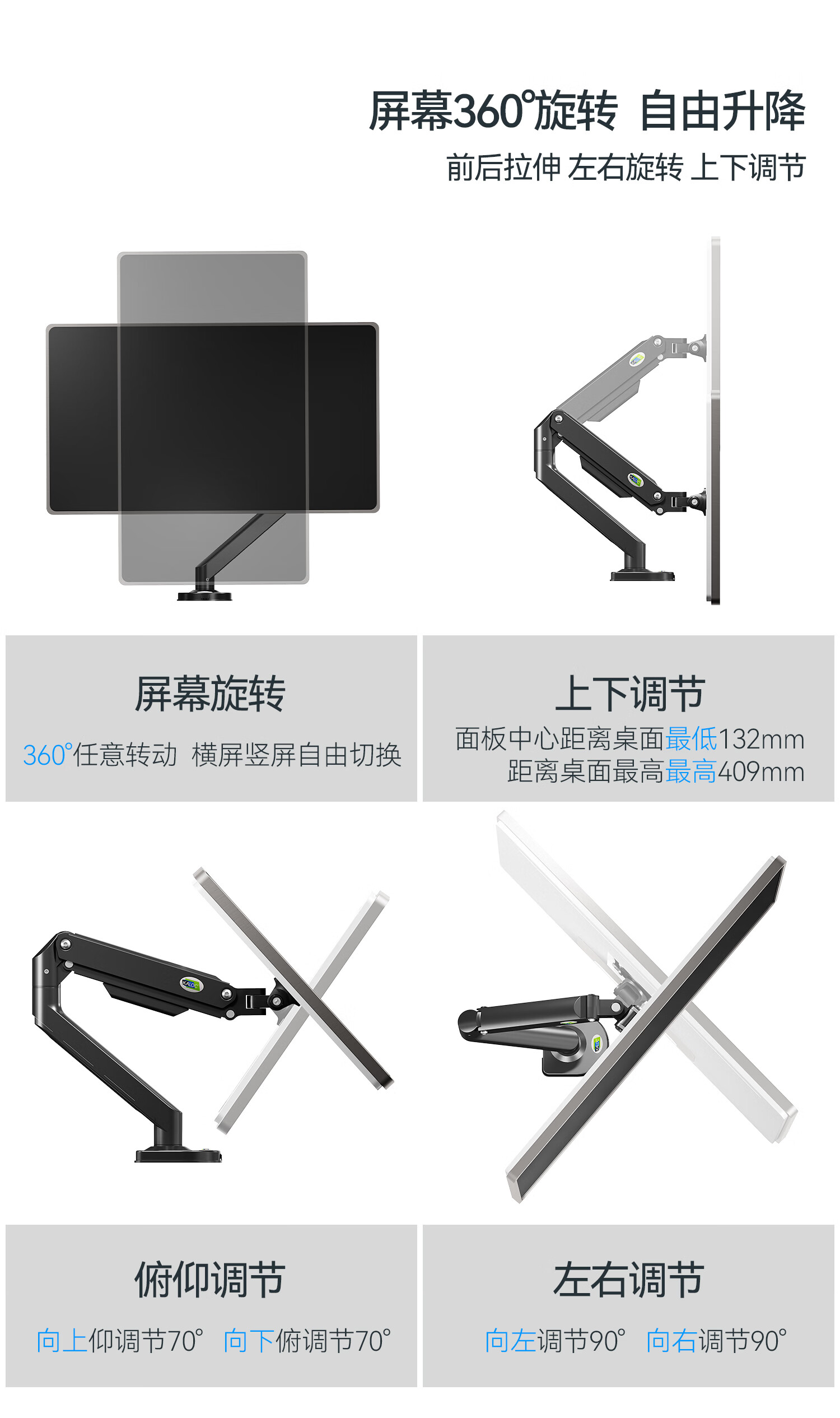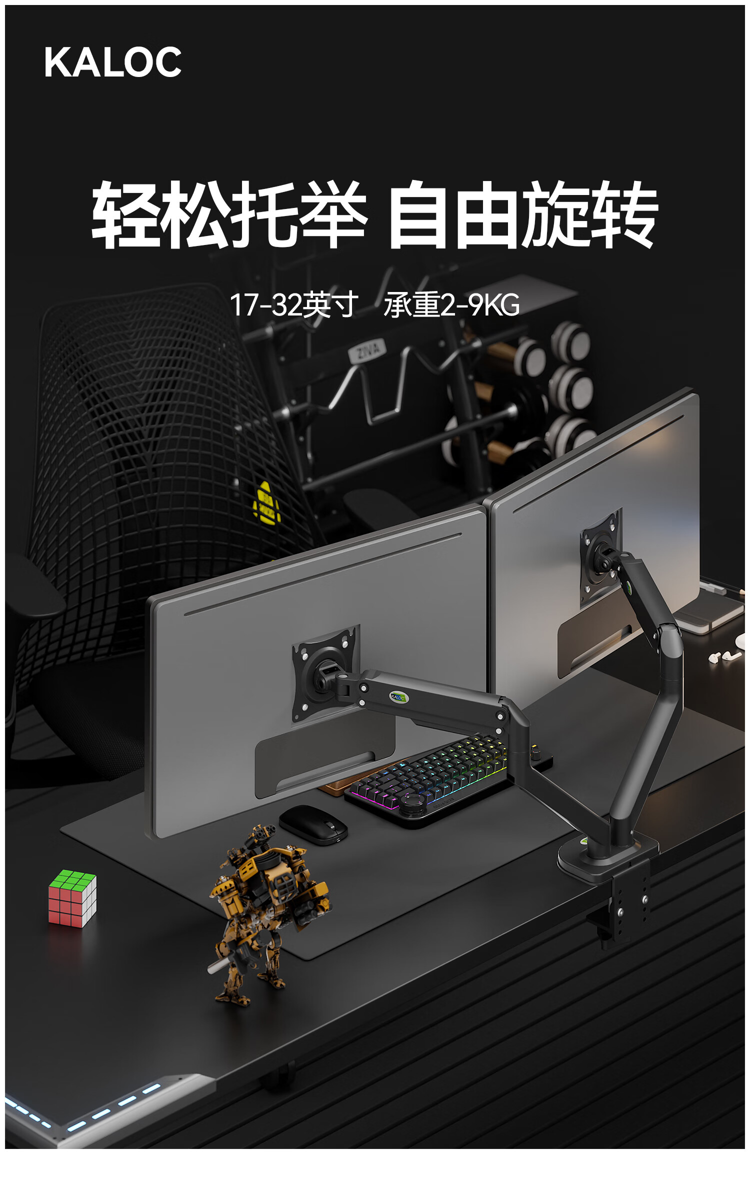 卡洛奇(kaloc)显示器支架双屏显示器支架臂机械臂显示屏支架电脑支架显示器悬臂支架屏幕支架DS200-2