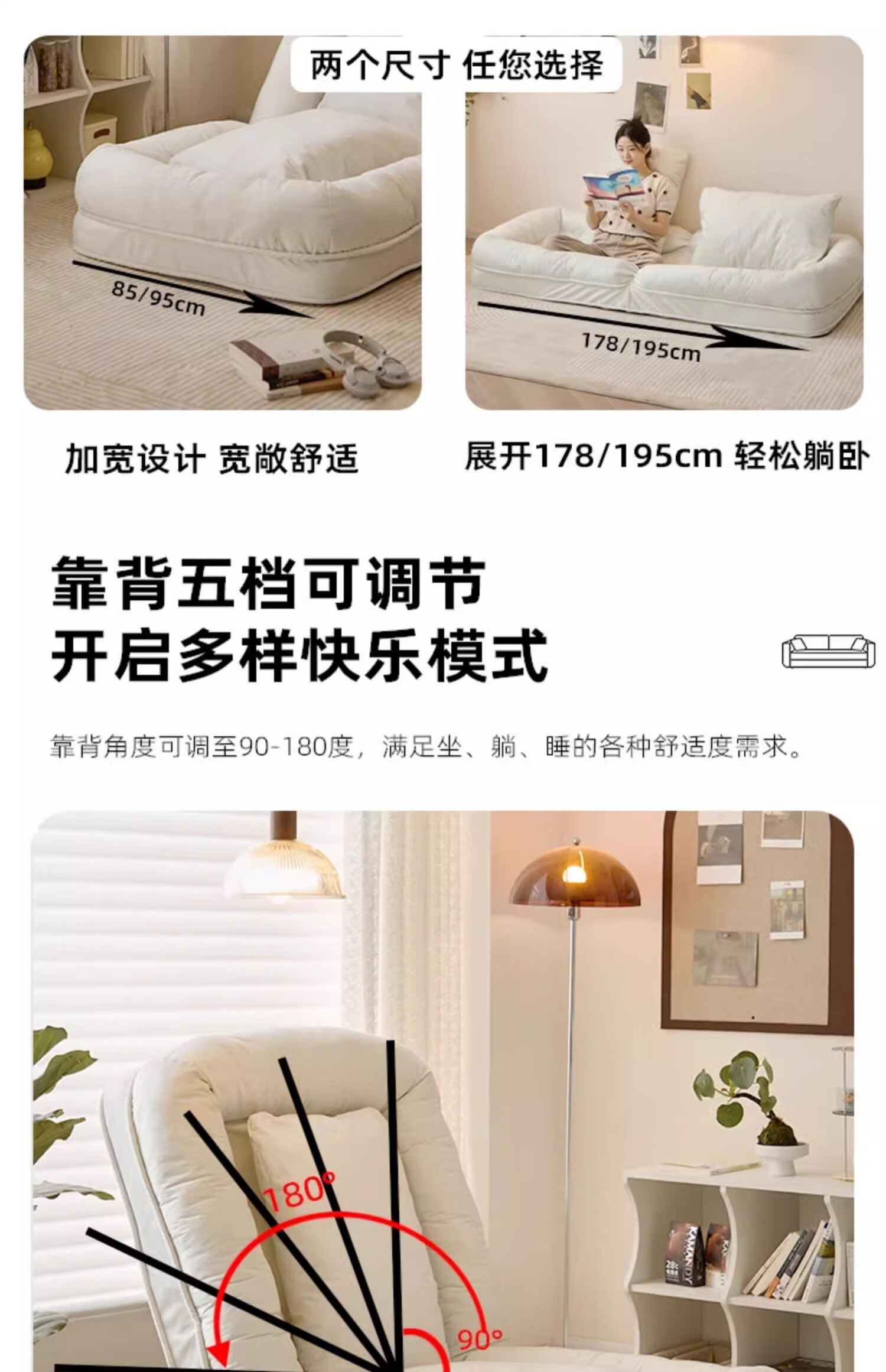 狄佑折叠沙发床单双人一体两用2025新款客厅泡芙懒人多功能坐卧伸缩床 多色可选咨询客服 1.9米可移动靠背沙发床